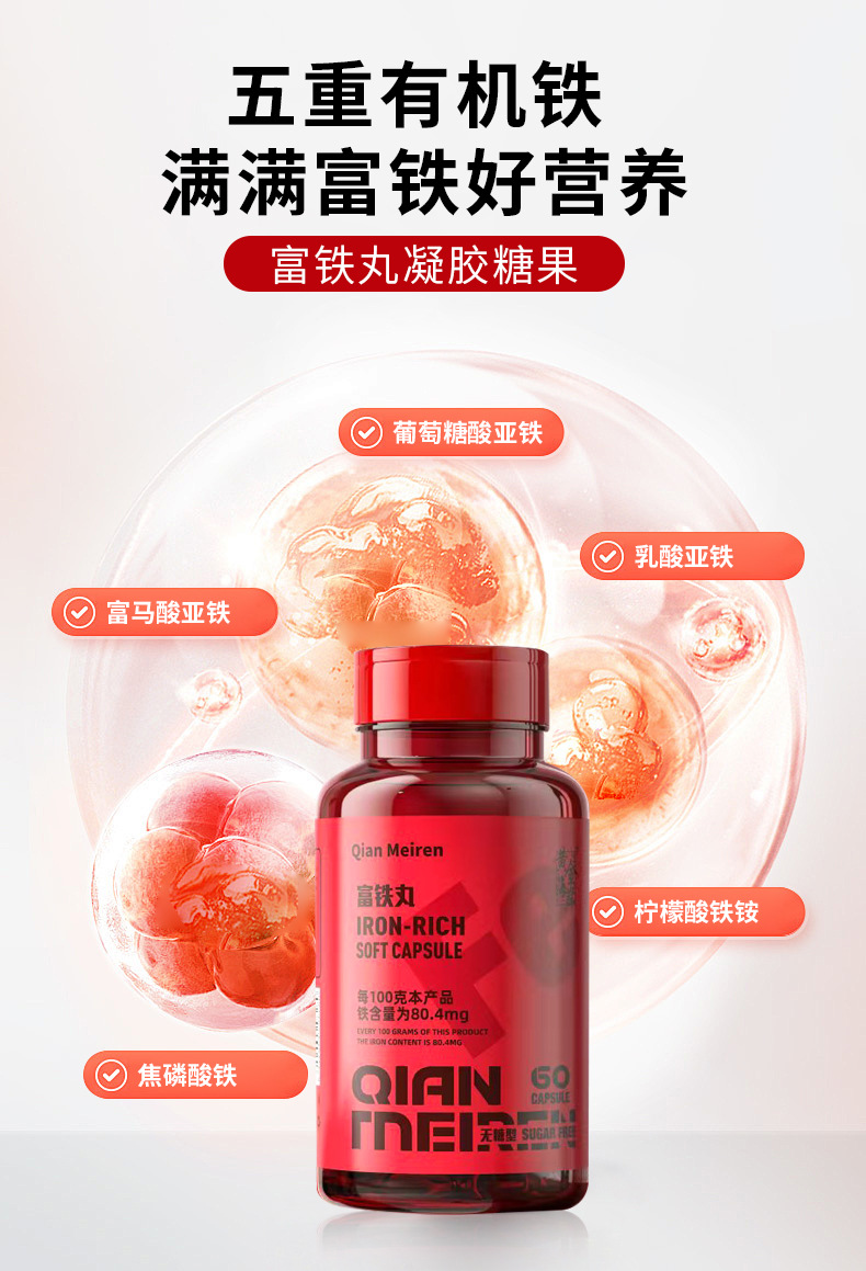 Астаксантин, богатый железом гель помадка oem изготовленный на заказ OEM-глюкарат железа тоник железа закуски мягкие капсулы