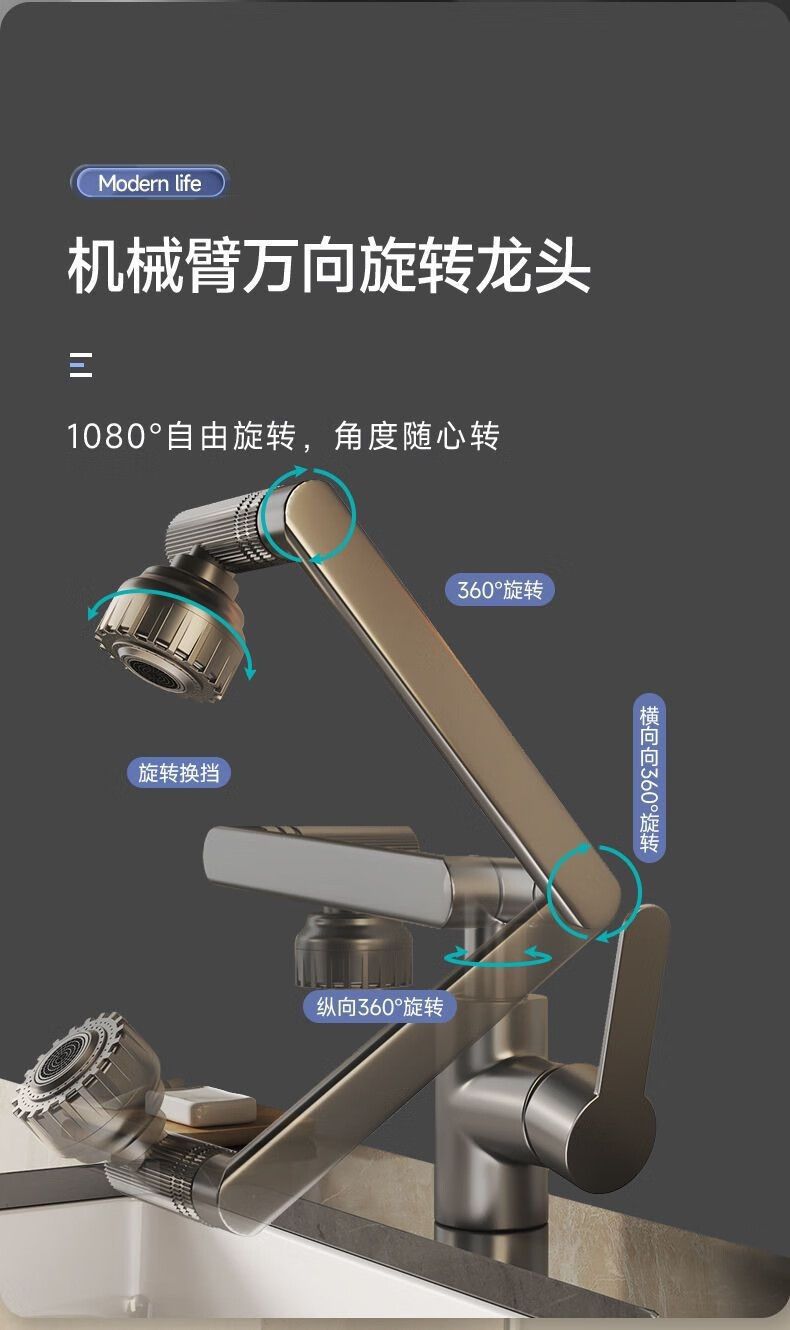 Смеситель Lucky Cat для домашней раковины в ванной комнате, универсальный 1080. ° Вращающийся многофункциональный смеситель для умывальника