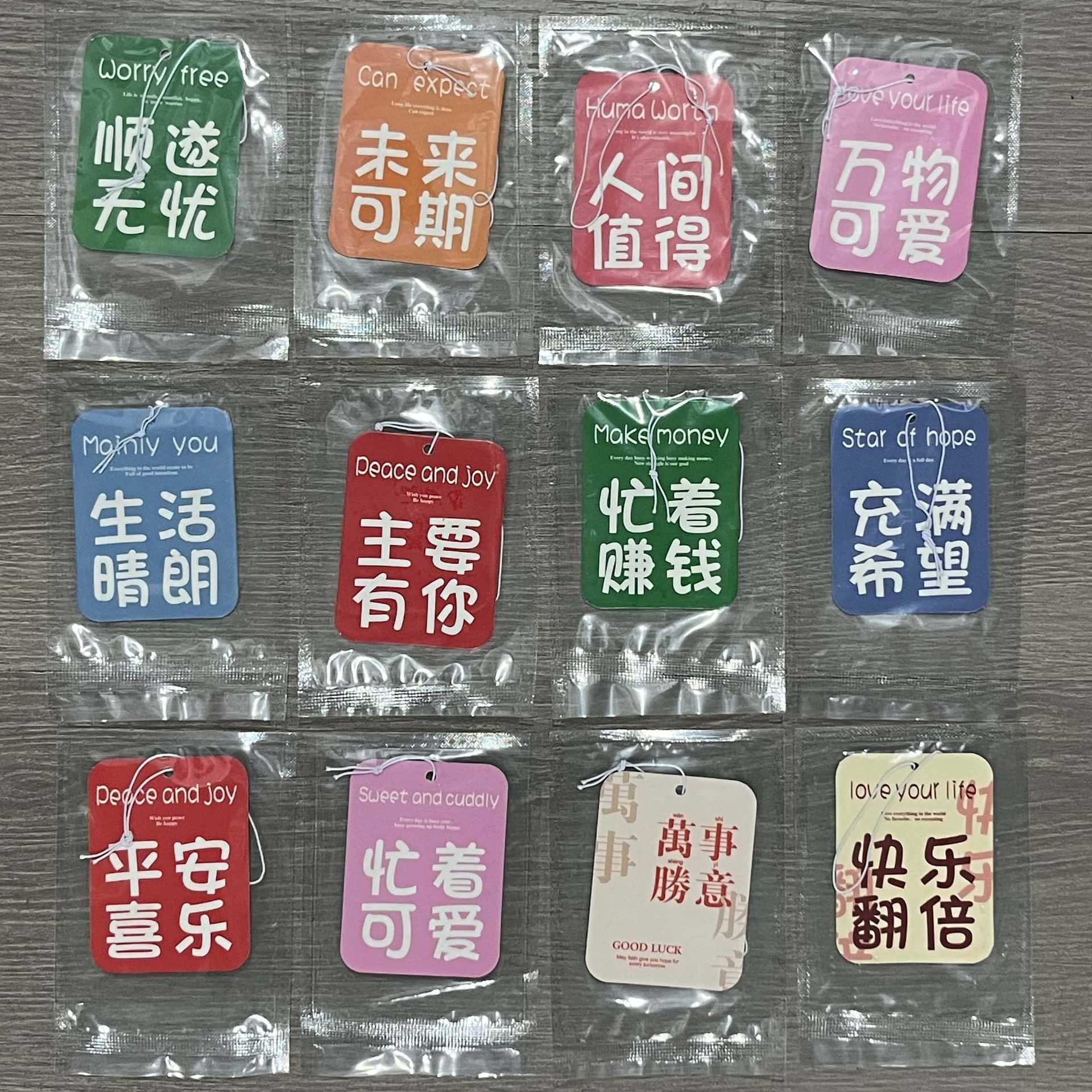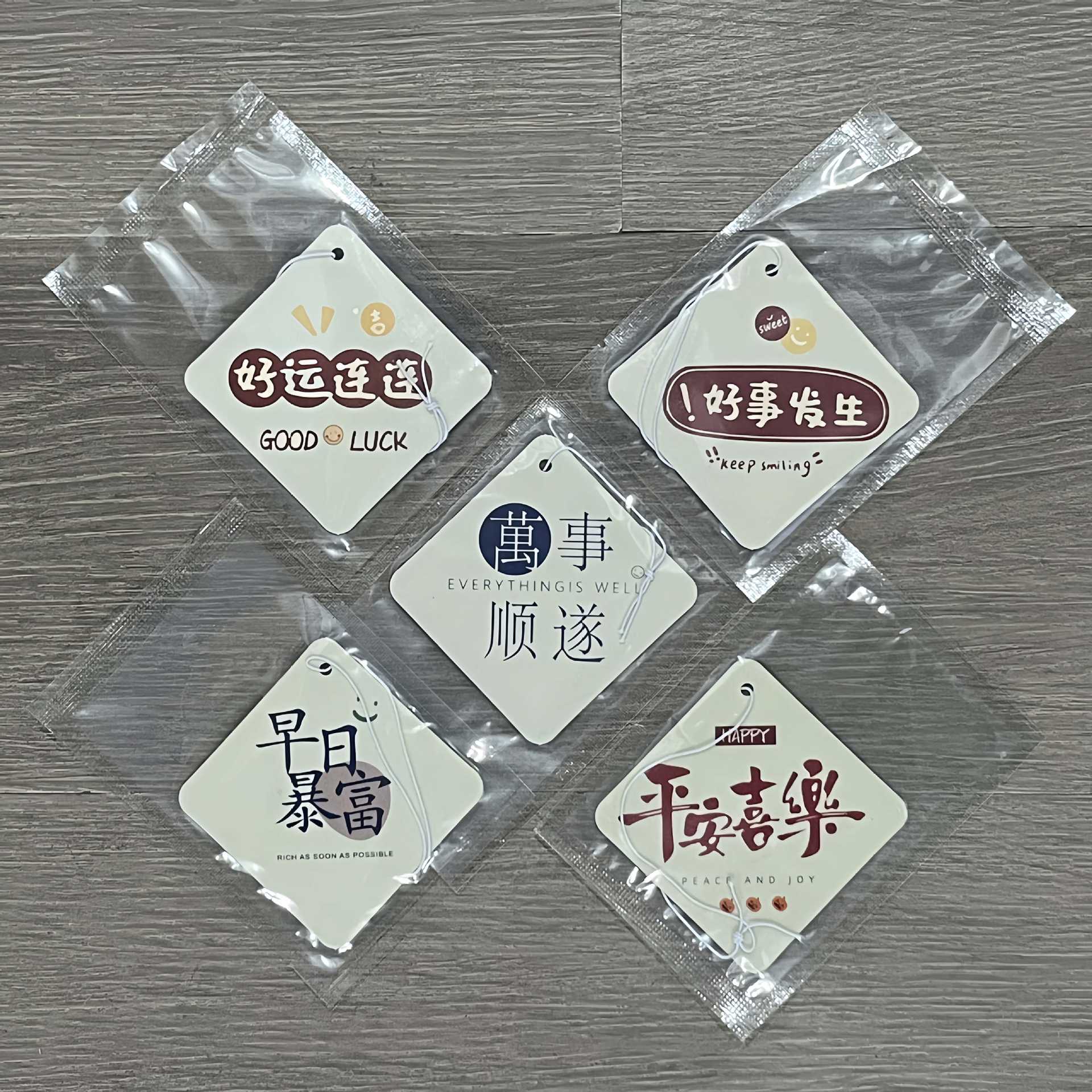 Совершенно благоприятные слова, хорошие вещи случаются COCO; Приятных слов, удачи, Гу Лонг.; Совершенно благоприятные слова, мир и радость, океан; Благоприятные слова, чтобы скоро стать богатым Burberry; Благоприятные слова, все идет хорошо, знак любовного коня; Благоприятные слова, случайные стили, специально снятые в вакуумных пакетах.; R Star в случайном стиле, специально снятый в вакуумном пакете; Китайский красный стиль, случайно сфотографированный в вакуумных пакетах.; Благословения, случайные стили, специально снятые в вакуумных пакетах.