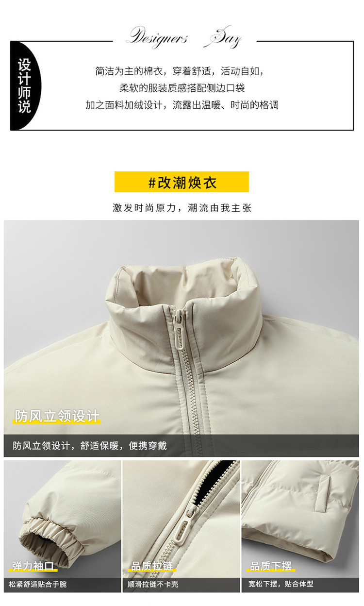 Зимняя молодежная хлопчатобумажная хлебопекарная одежда мужская осенняя и зимняя мужская куртка сплошной цвет стоячий воротник утолщение теплая свободная хлопковая куртка