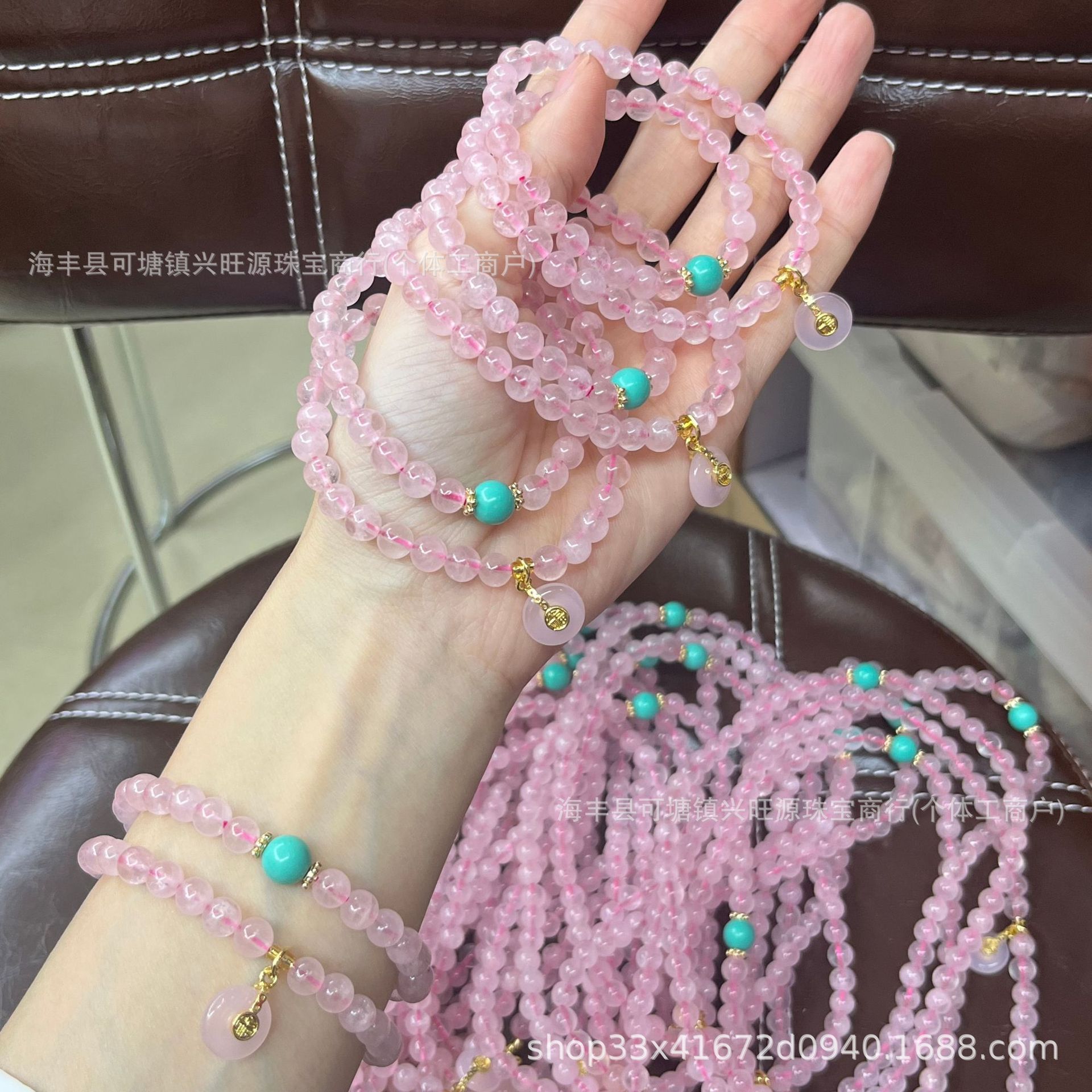 天然粉晶手链芙蓉石手串搭配绿松两圈招桃花粉水晶女饰品爆款批发 批发量越大价格越低,可供直播间长期合作,欢迎来电私聊