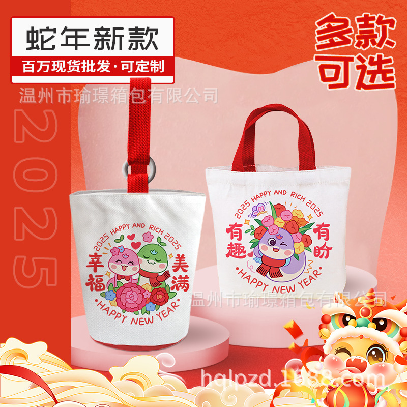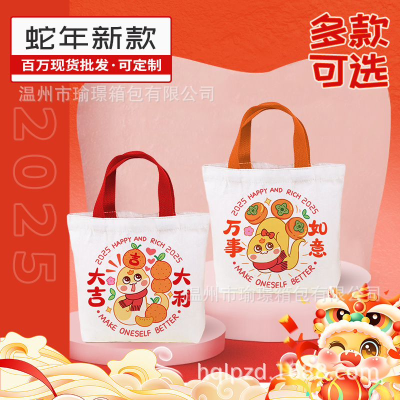 Новогодняя подарочная сумка «Год Змеи», маленькая холщовая сумка, подарочная сумка на заказ, сумка для детских закусок, подарочная сумка на день рождения