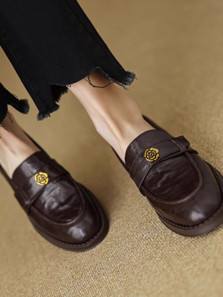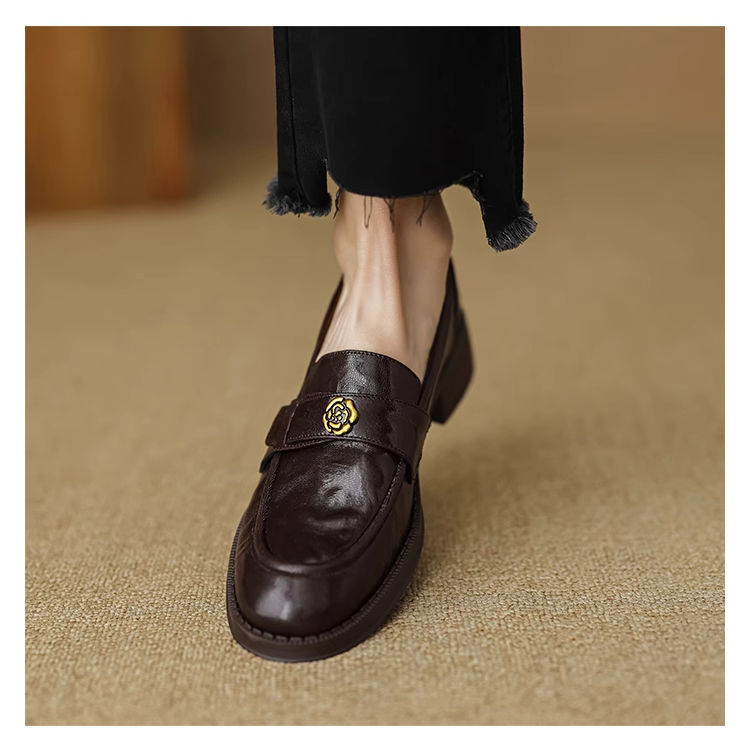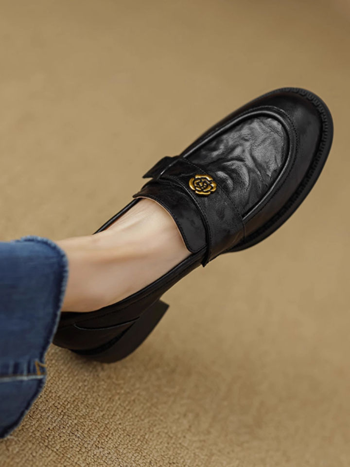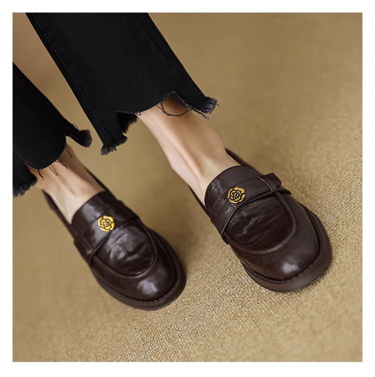 Супермягкие черные лоферы с камелией, осень 2021, новая мода, ниша, без шнуровки в британском стиле на толстой подошве для женщин