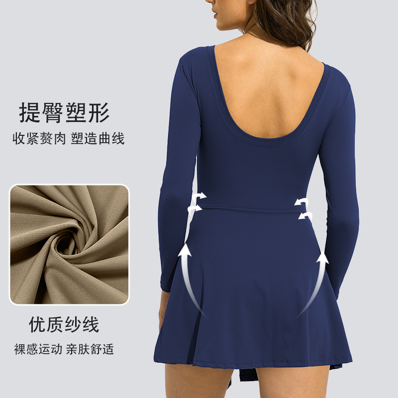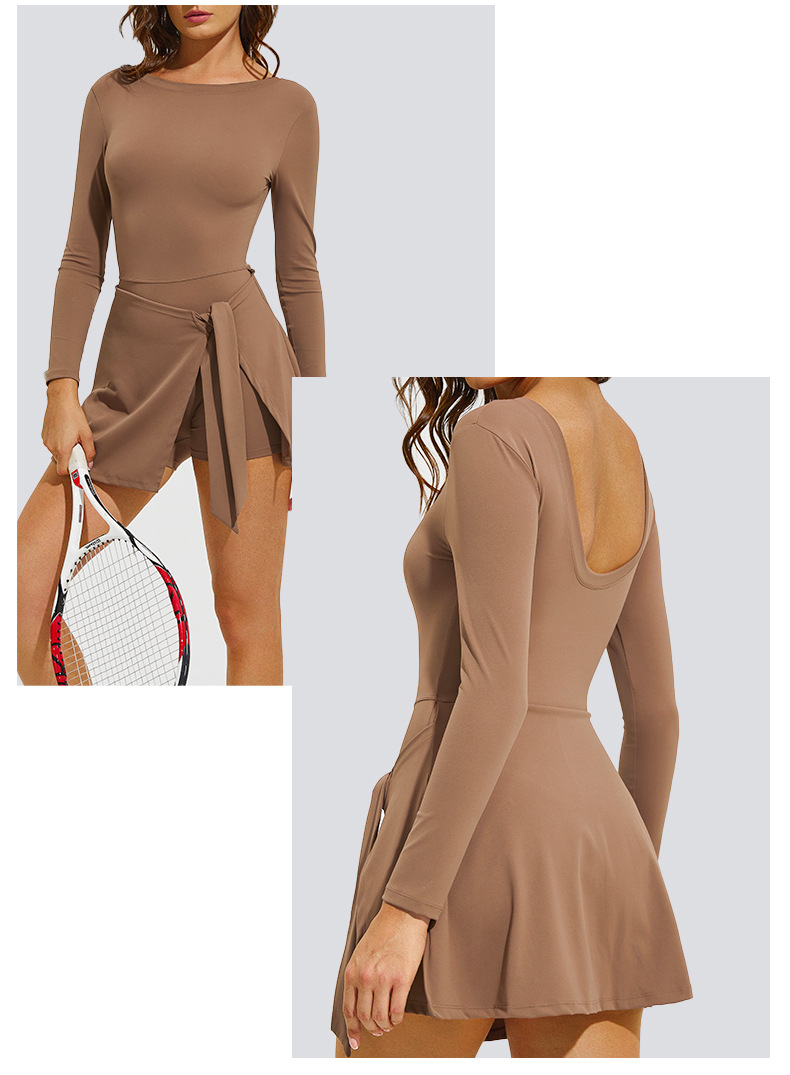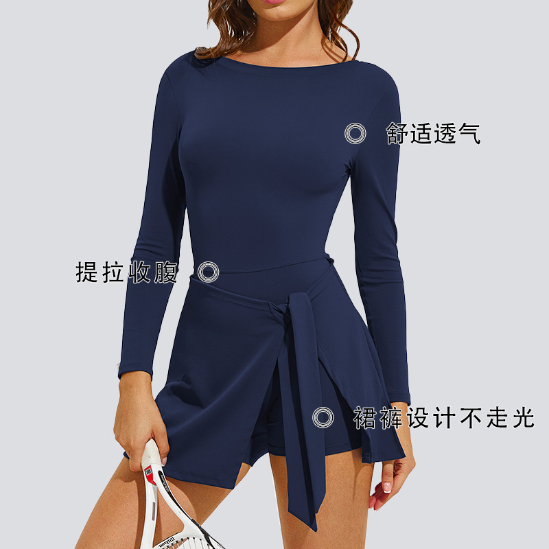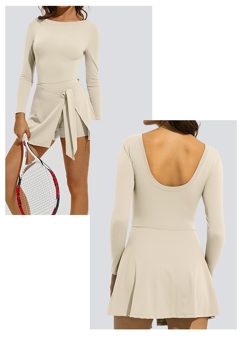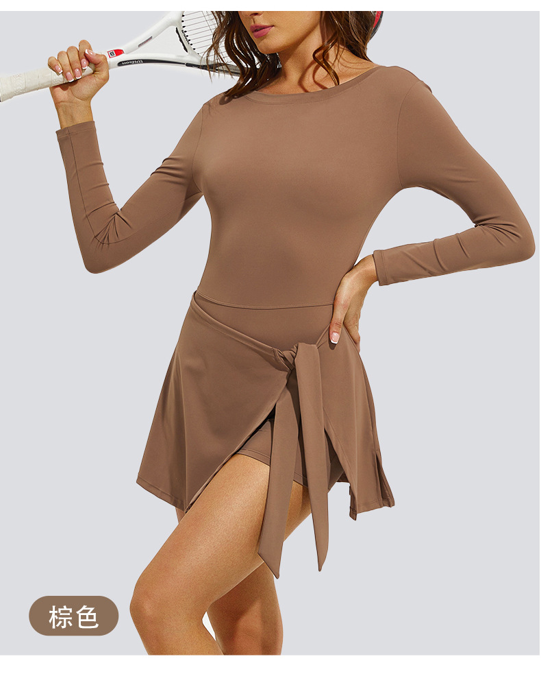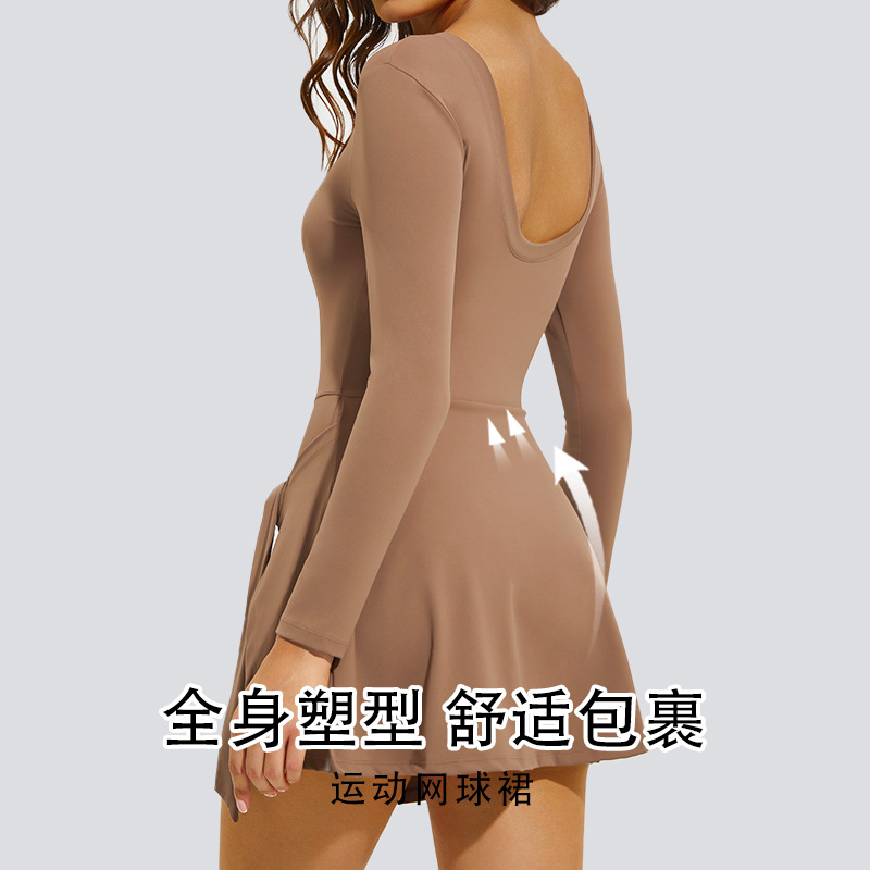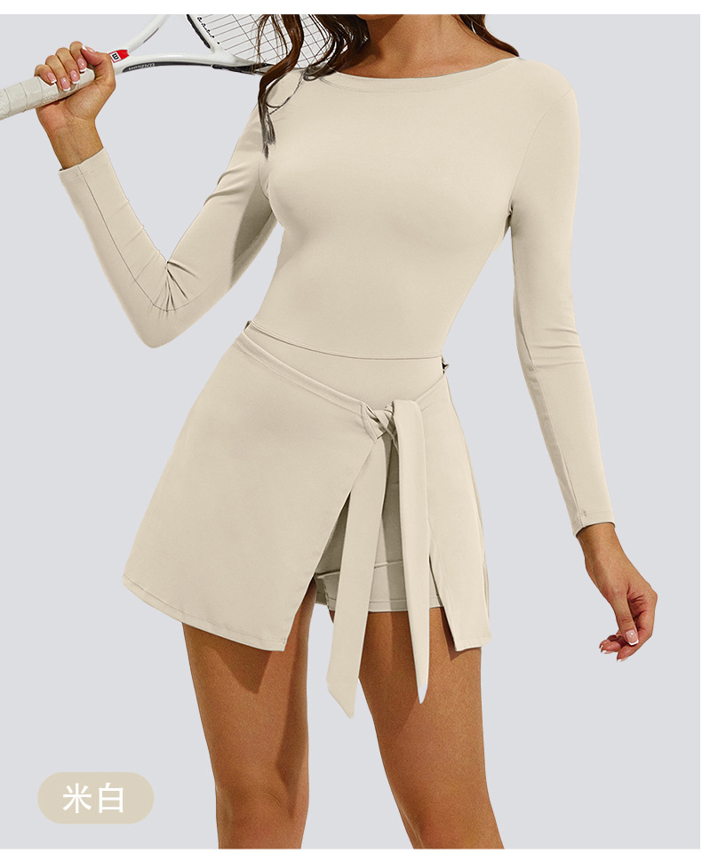 Цельная теннисная юбка с длинными рукавами, телесного цвета, дышащая, защищающая от воздействия, повседневная юбка для гольфа, спортивная юбка для йоги и фитнеса