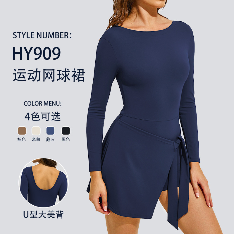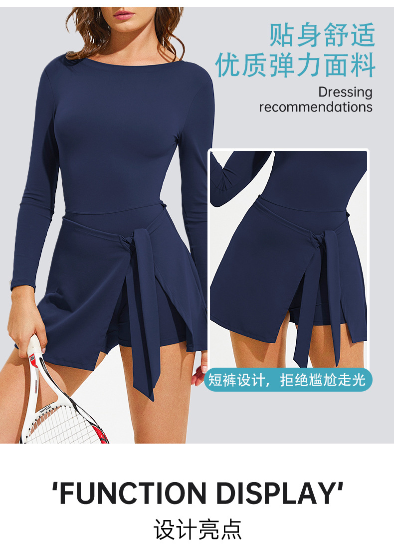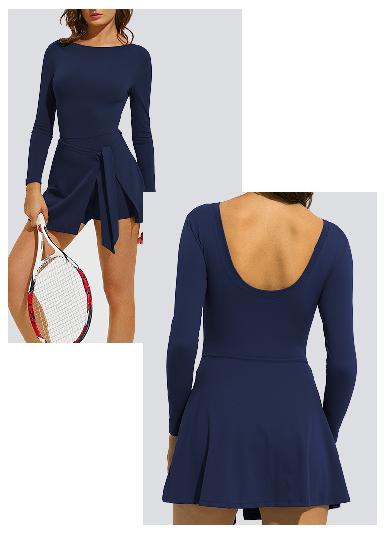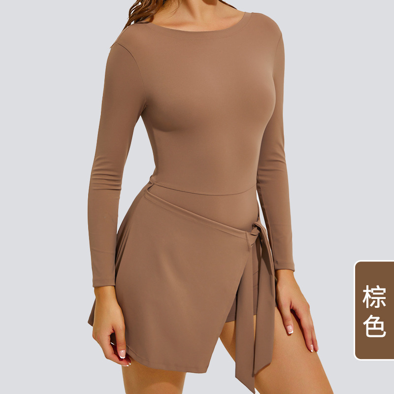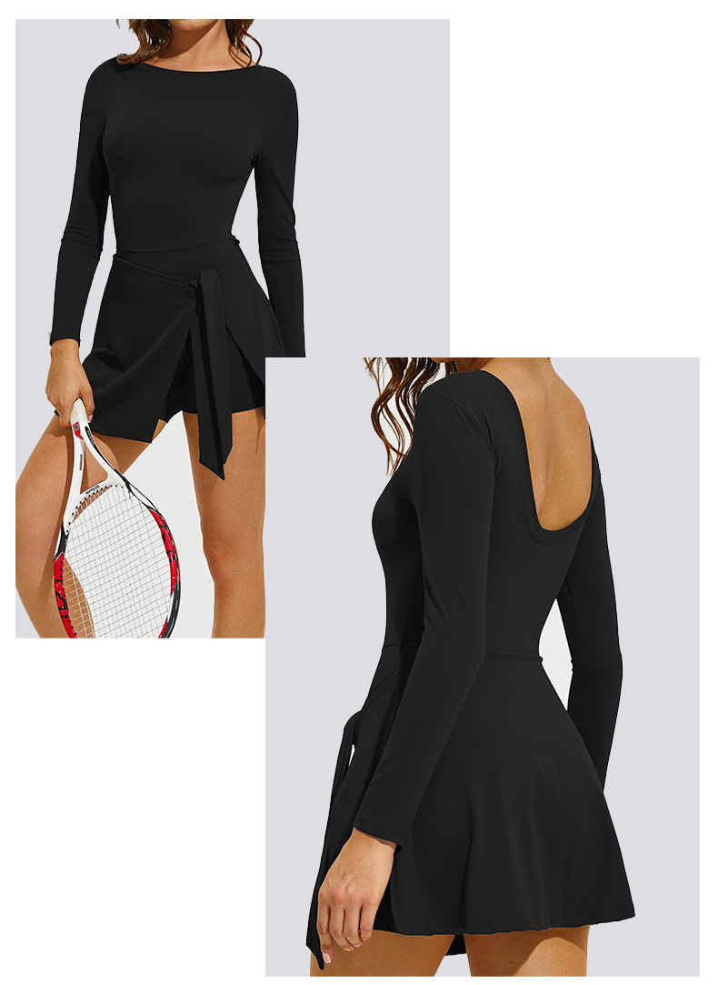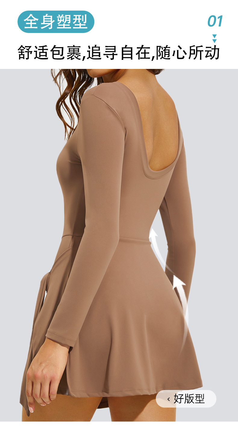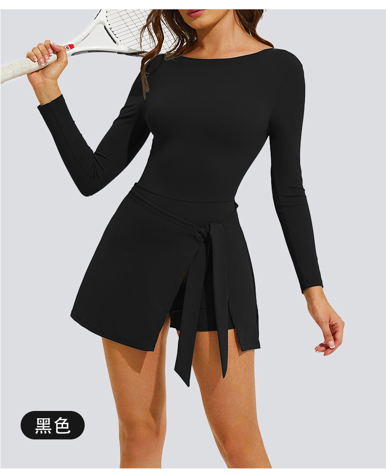 Цельная теннисная юбка с длинными рукавами, телесного цвета, дышащая, защищающая от воздействия, повседневная юбка для гольфа, спортивная юбка для йоги и фитнеса