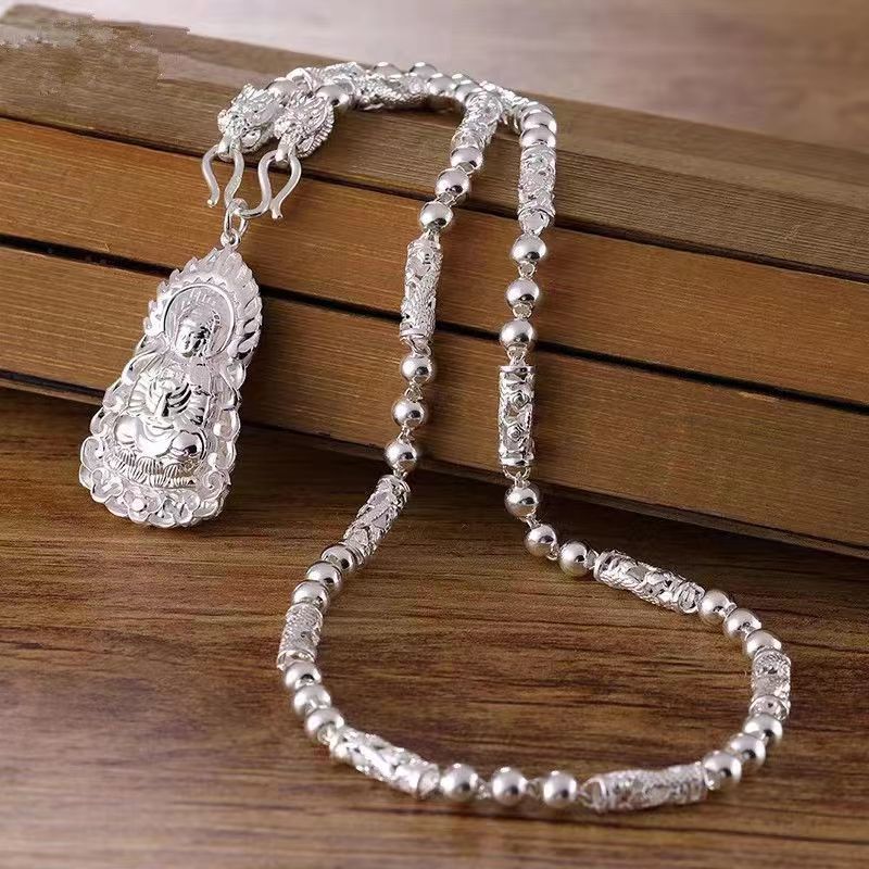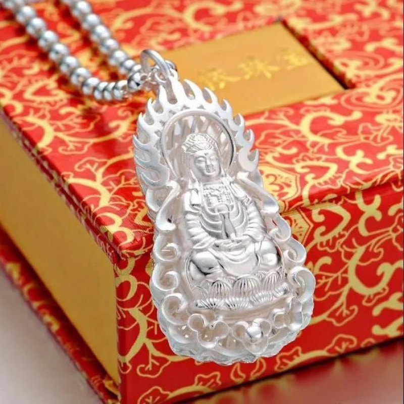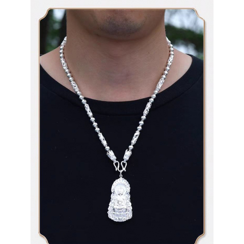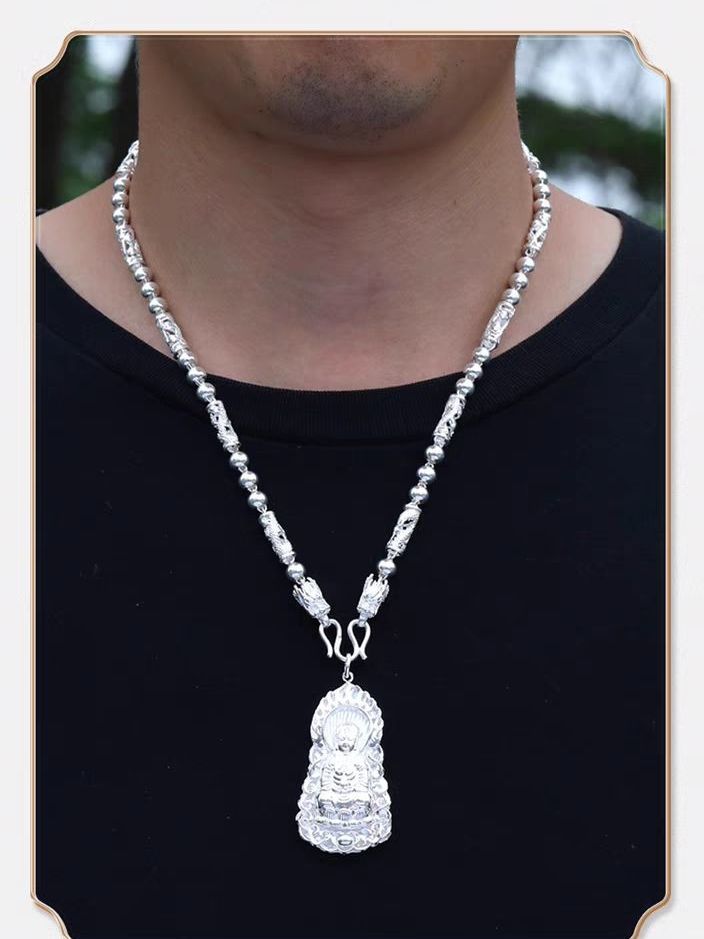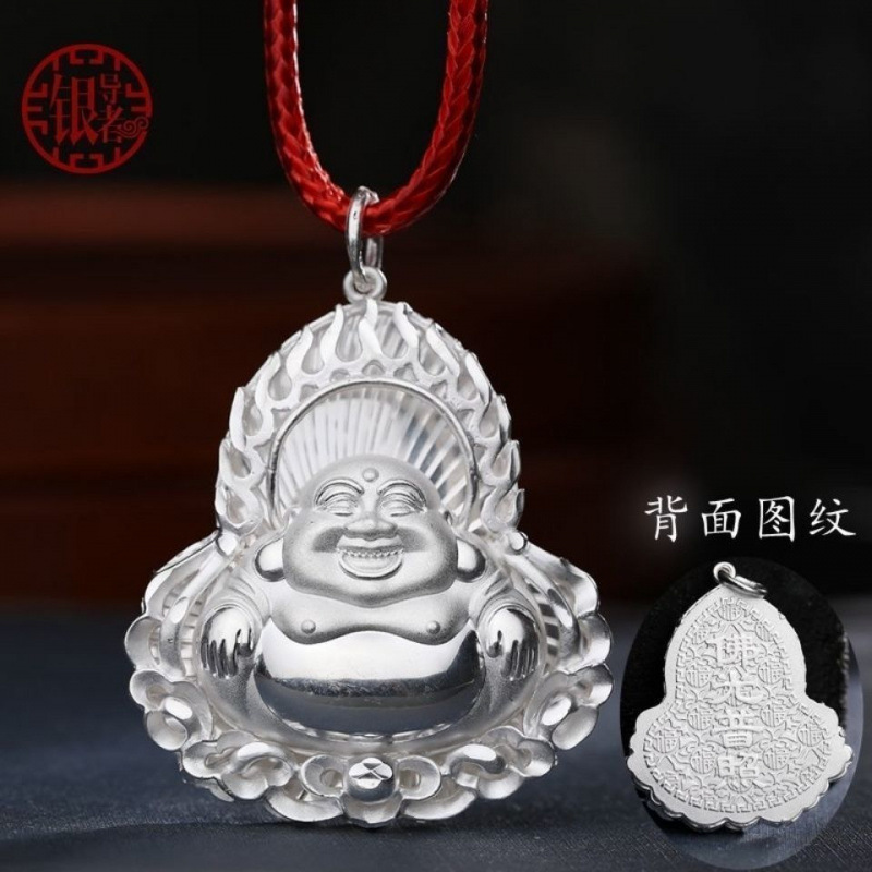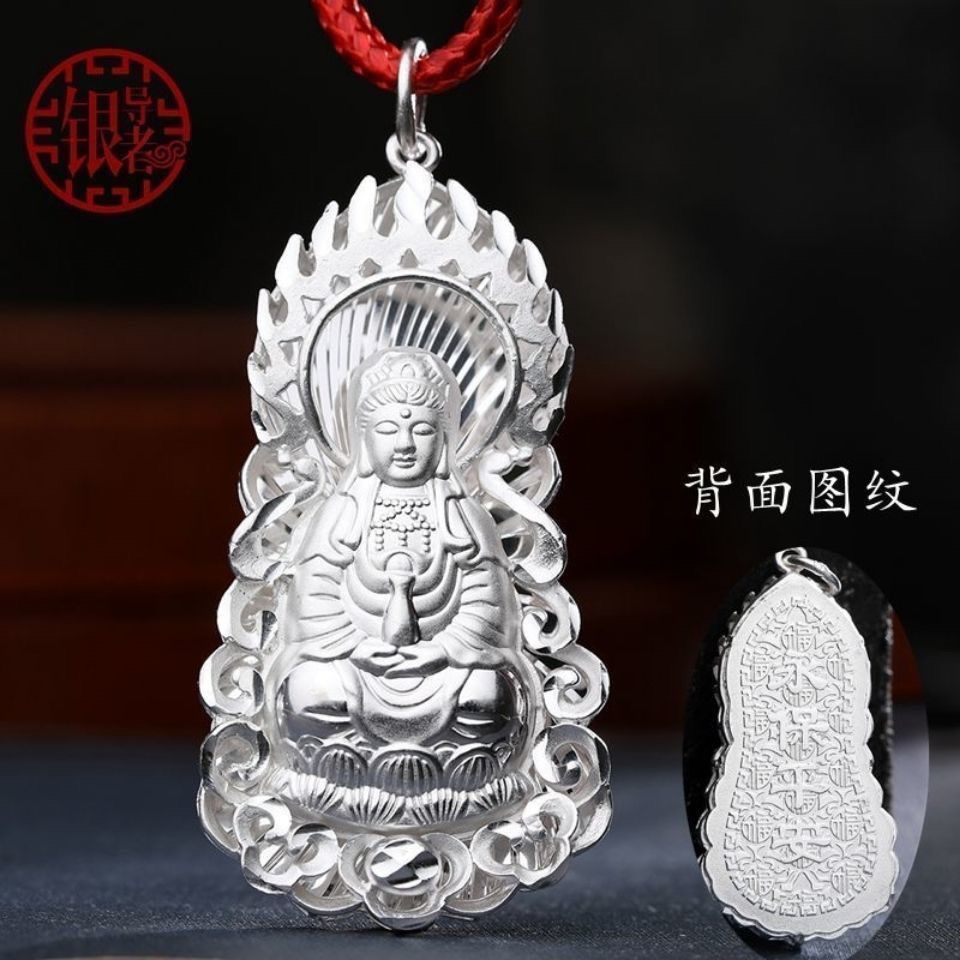 Аутентичный подлинный 999 стерлингового серебра ожерелье Гуаньинь подвеска серебряная нога мужская красивая серебряная подвеска Майтрейя двойная голова дракона