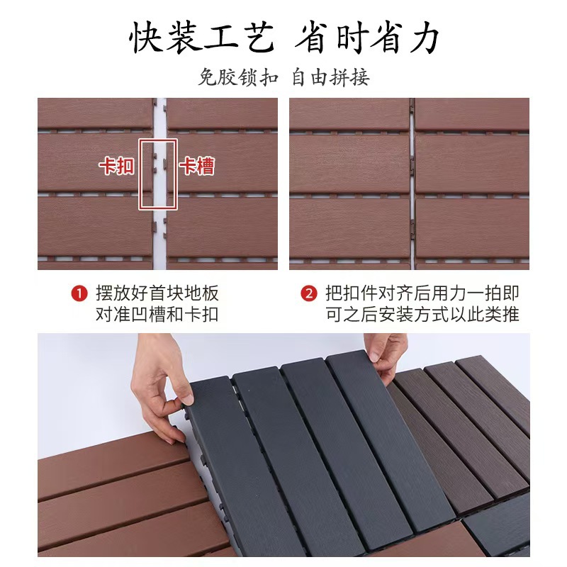 Напольное покрытие для улицы, балкона, двора, пластиковые модульные плитки, экологичные, имитация дерева, из полипропилена, с замковым соединением.