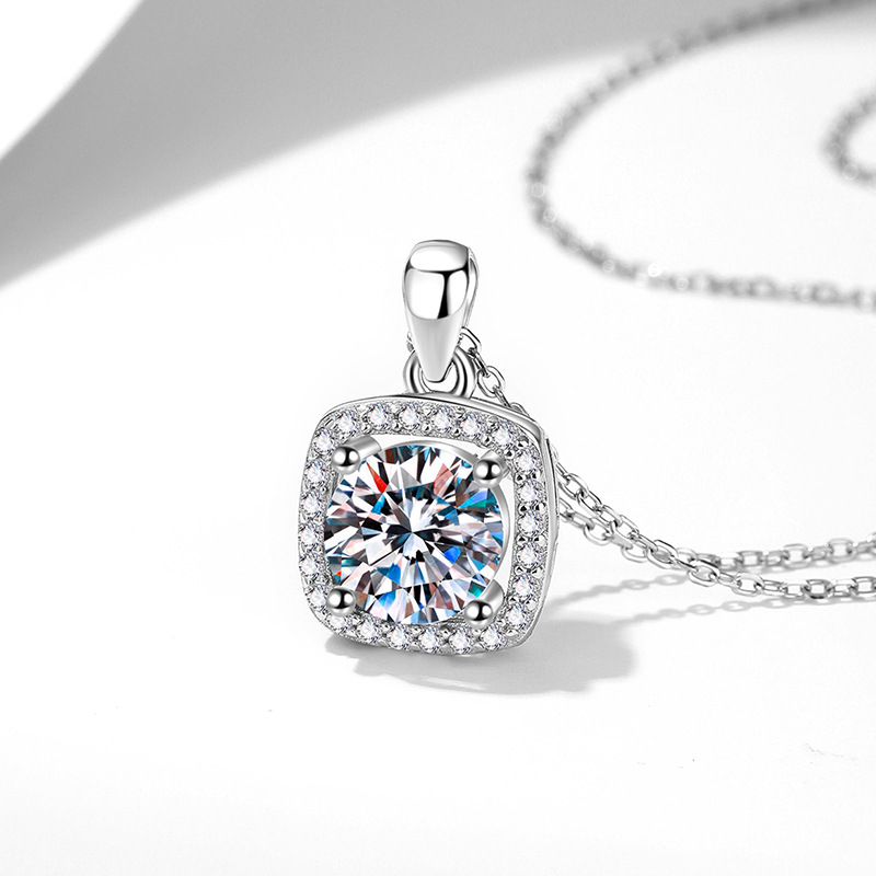 S925 серебряная принцесса квадратная сумка темперамент простой кулон ожерелье 1 карат D цвет муассанитовая цепочка ключицы завод прямых продаж