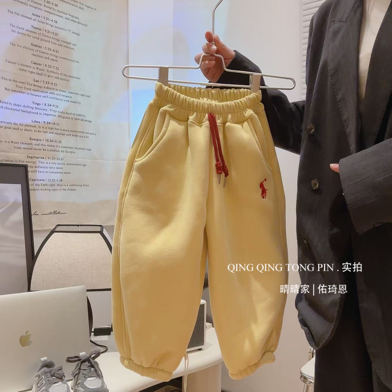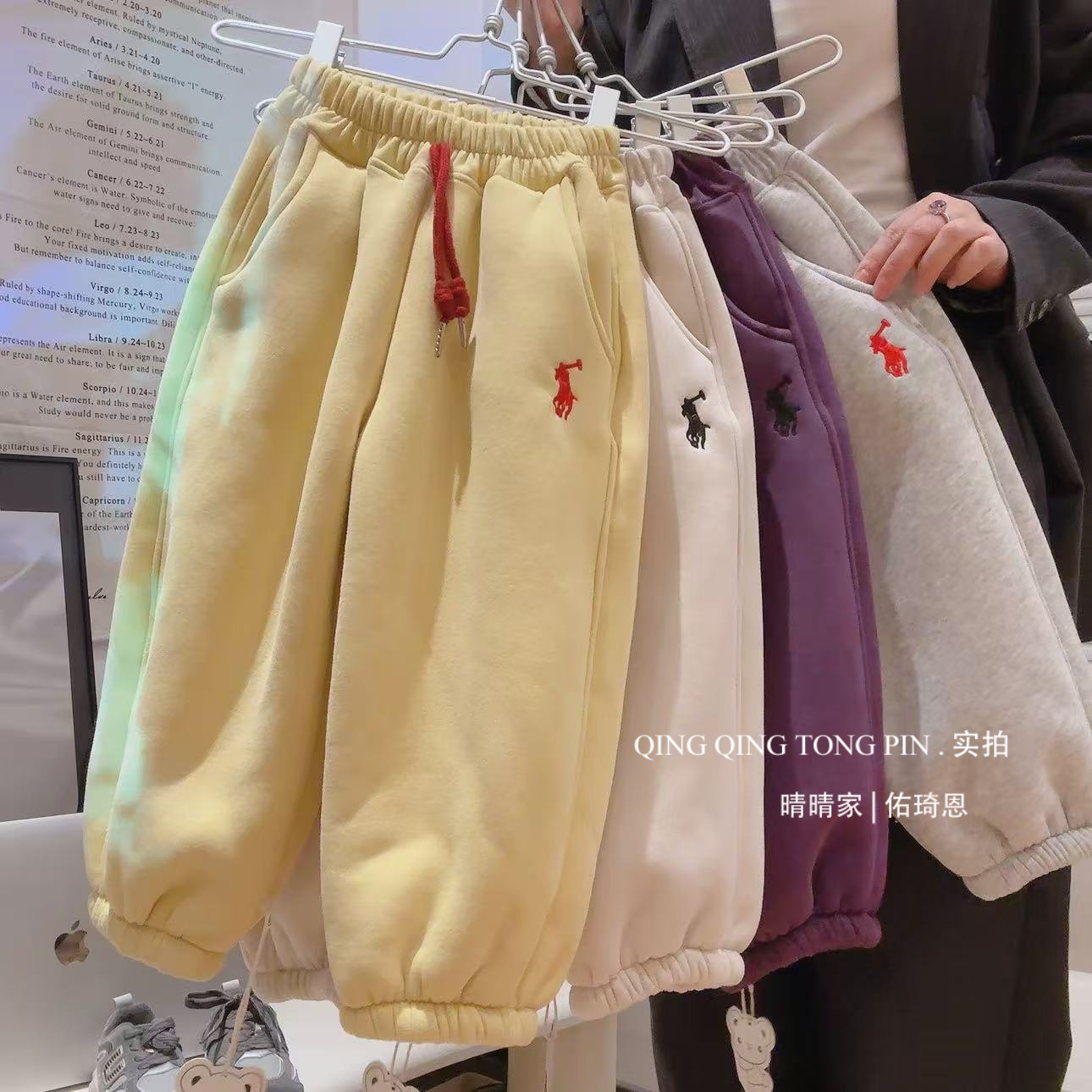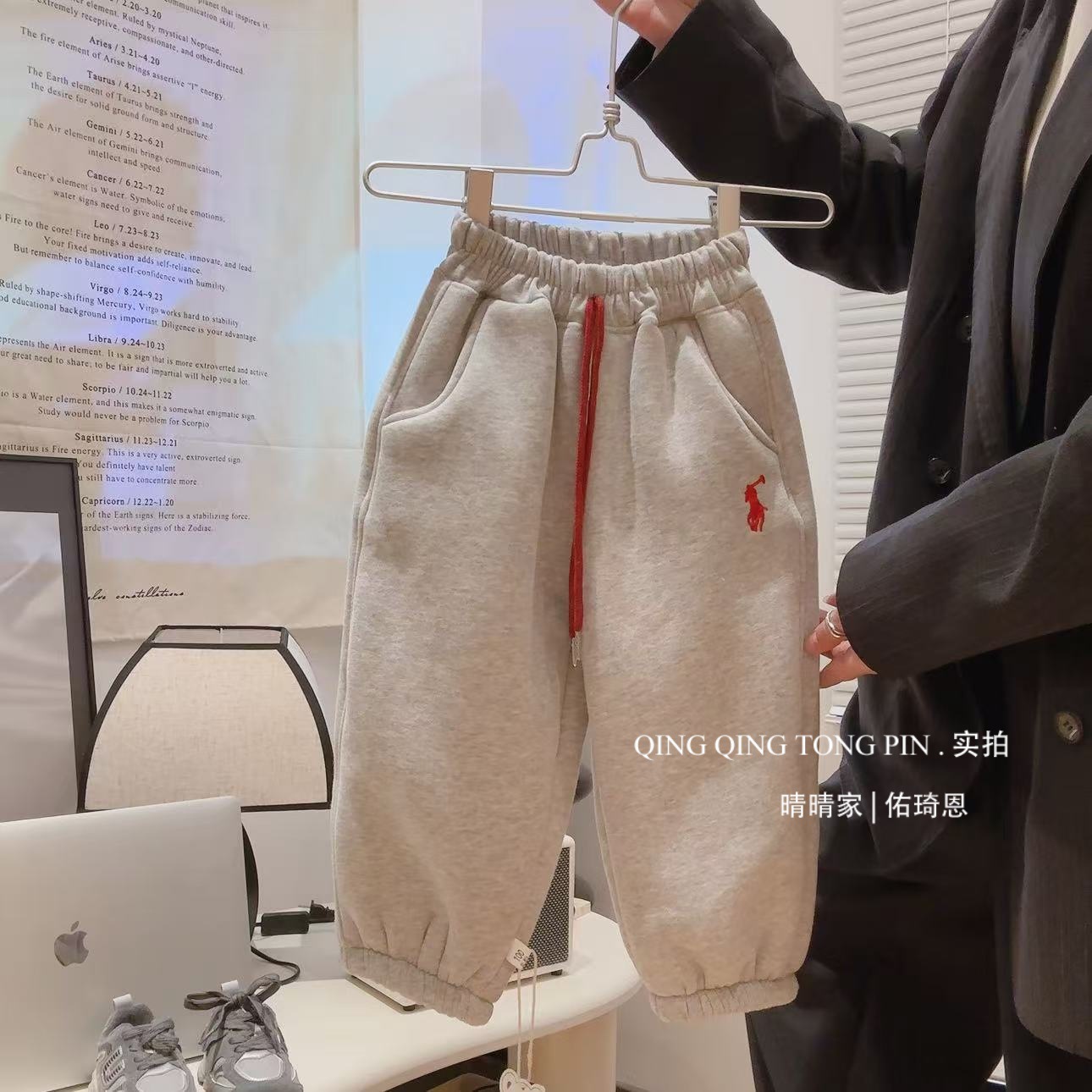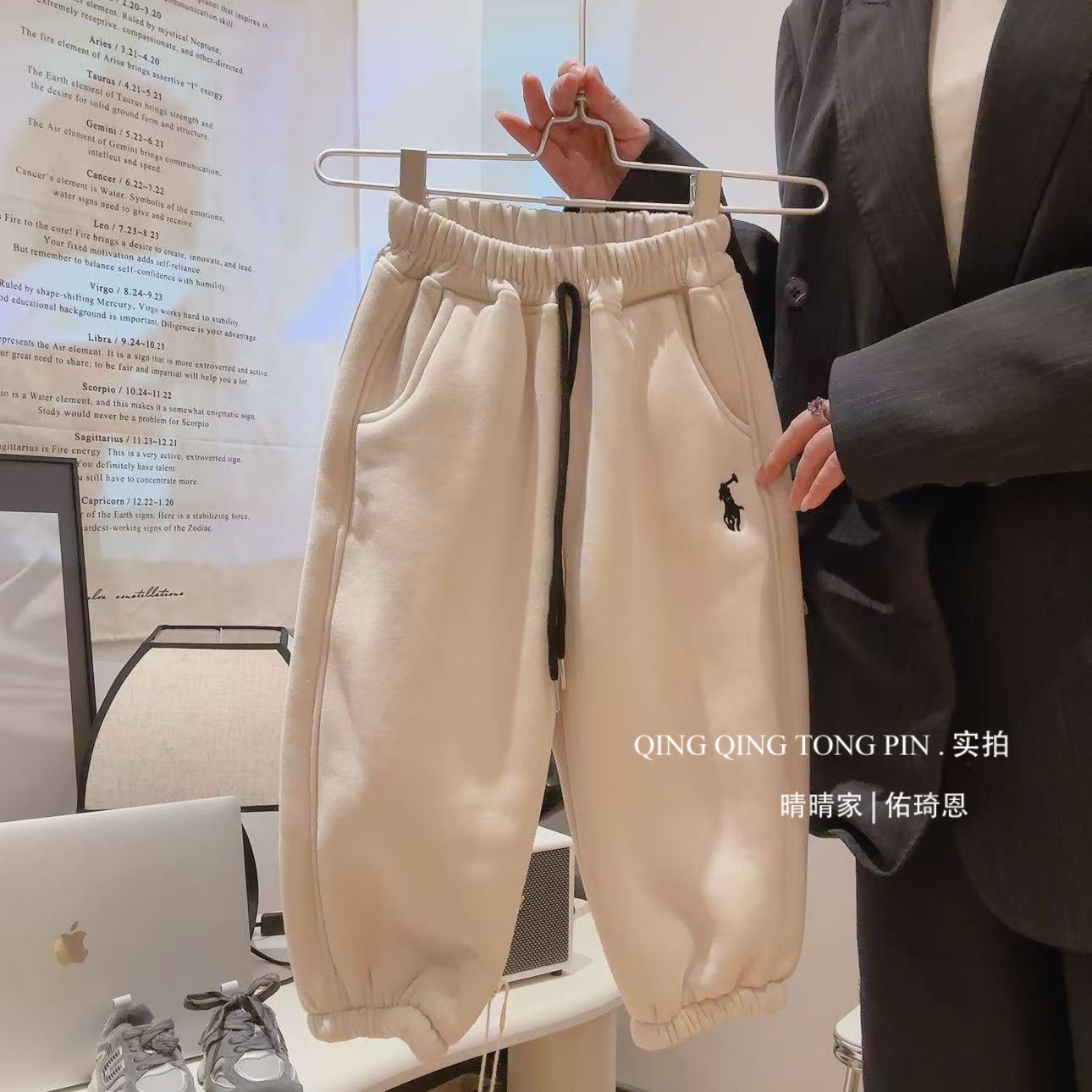 [Толстый кашемир] Простой дикий мелкий логотип вышивка утолщение один кашемировые хлопчатобумажные брюки
