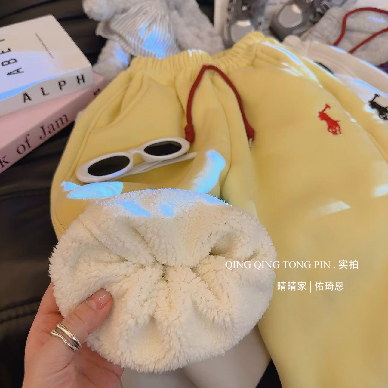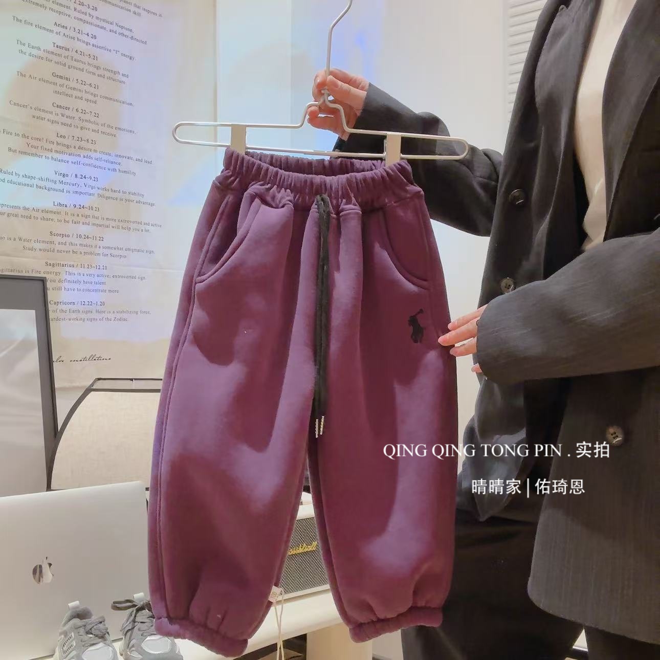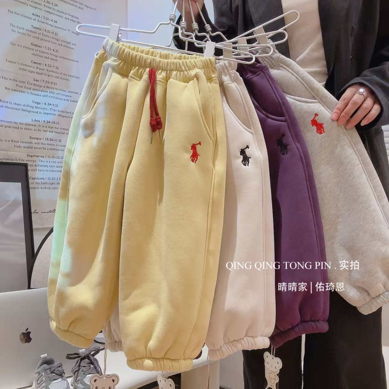 [Толстый кашемир] Простой дикий мелкий логотип вышивка утолщение один кашемировые хлопчатобумажные брюки