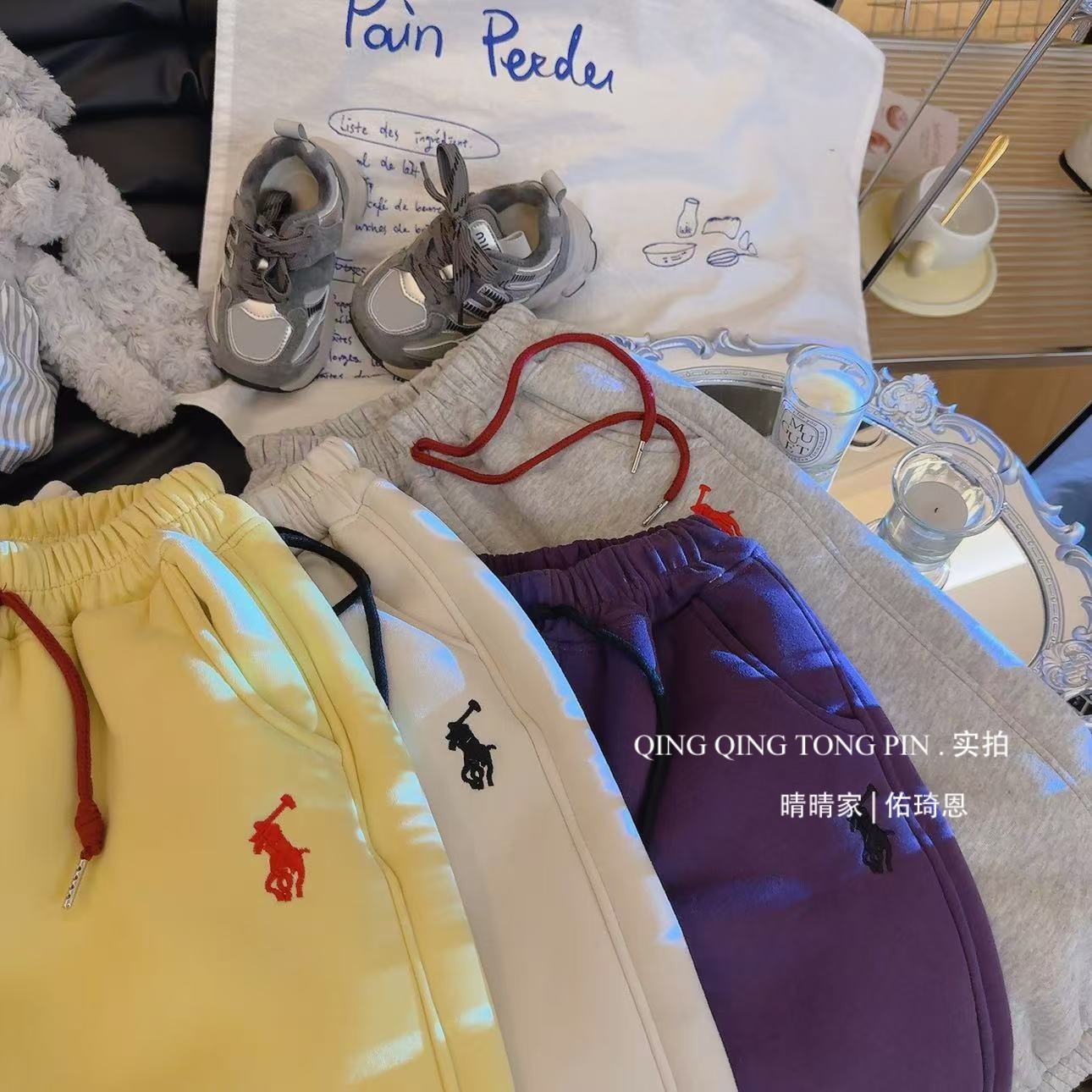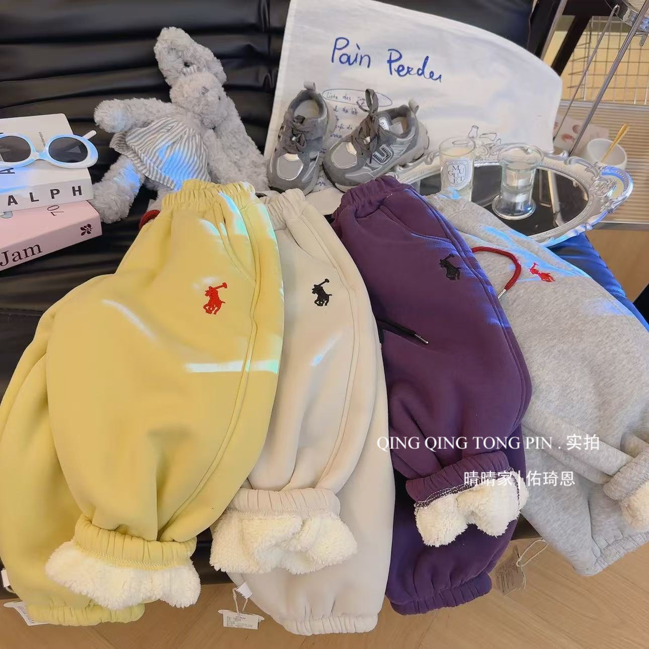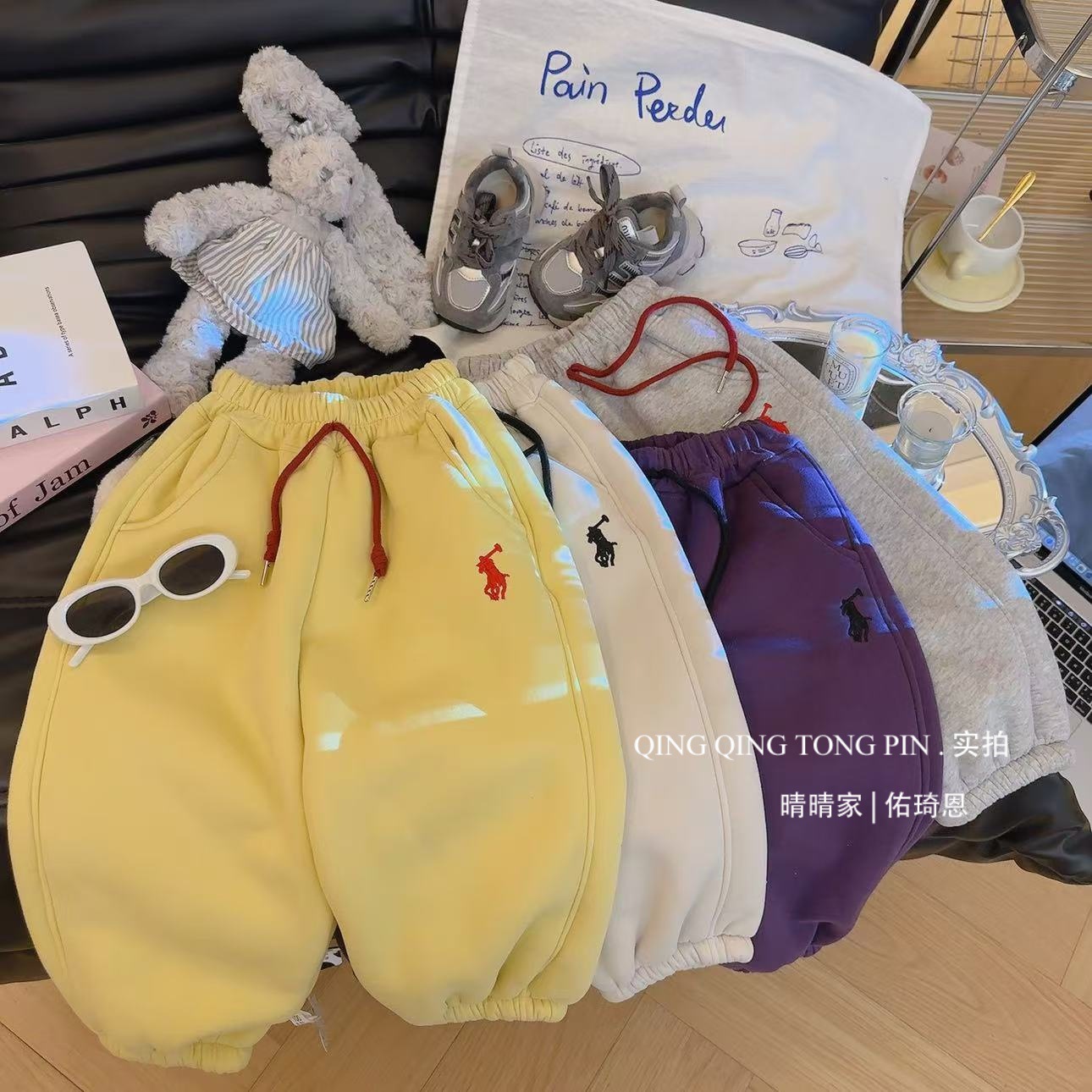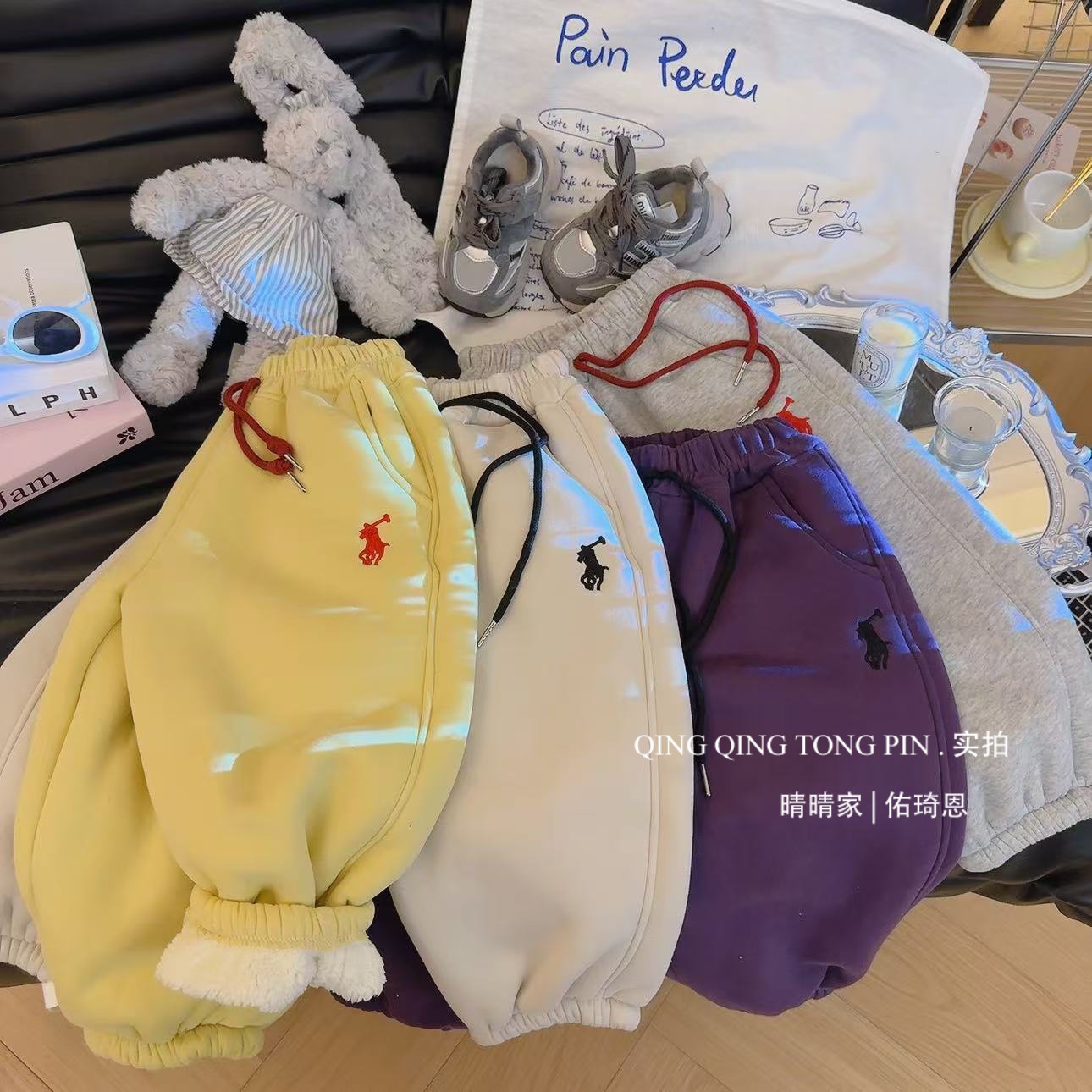 [Толстый кашемир] Простой дикий мелкий логотип вышивка утолщение один кашемировые хлопчатобумажные брюки