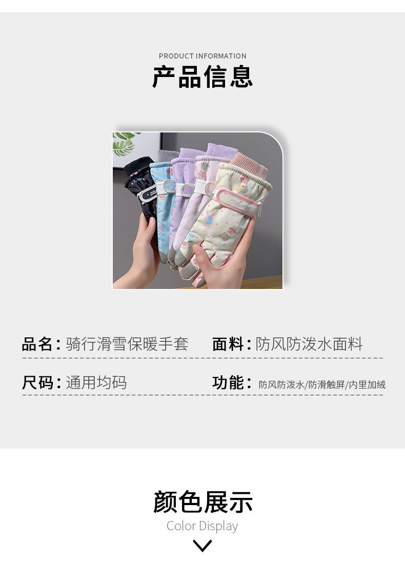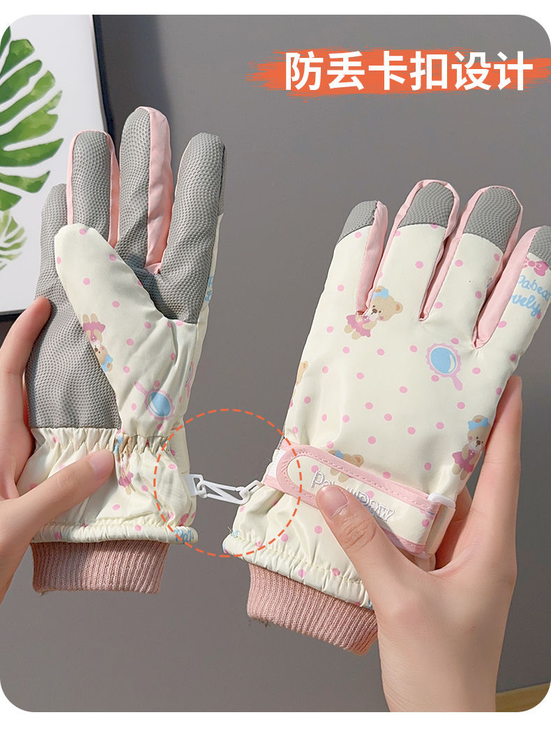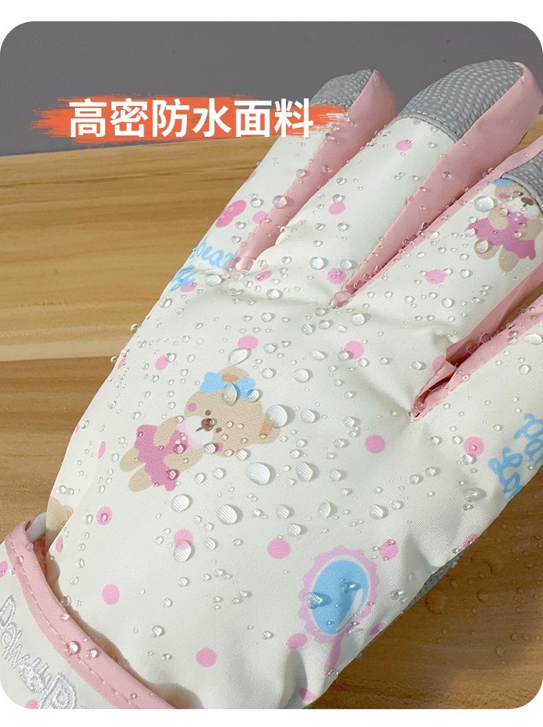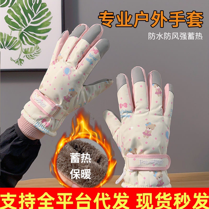 Симпатичные медвежонок лыжные перчатки мужские женщины зимний хлопок теплый холодный водонепроницаемый плюс бархат утолщенный сенсорный экран для езды на велосипеде противоскользящий