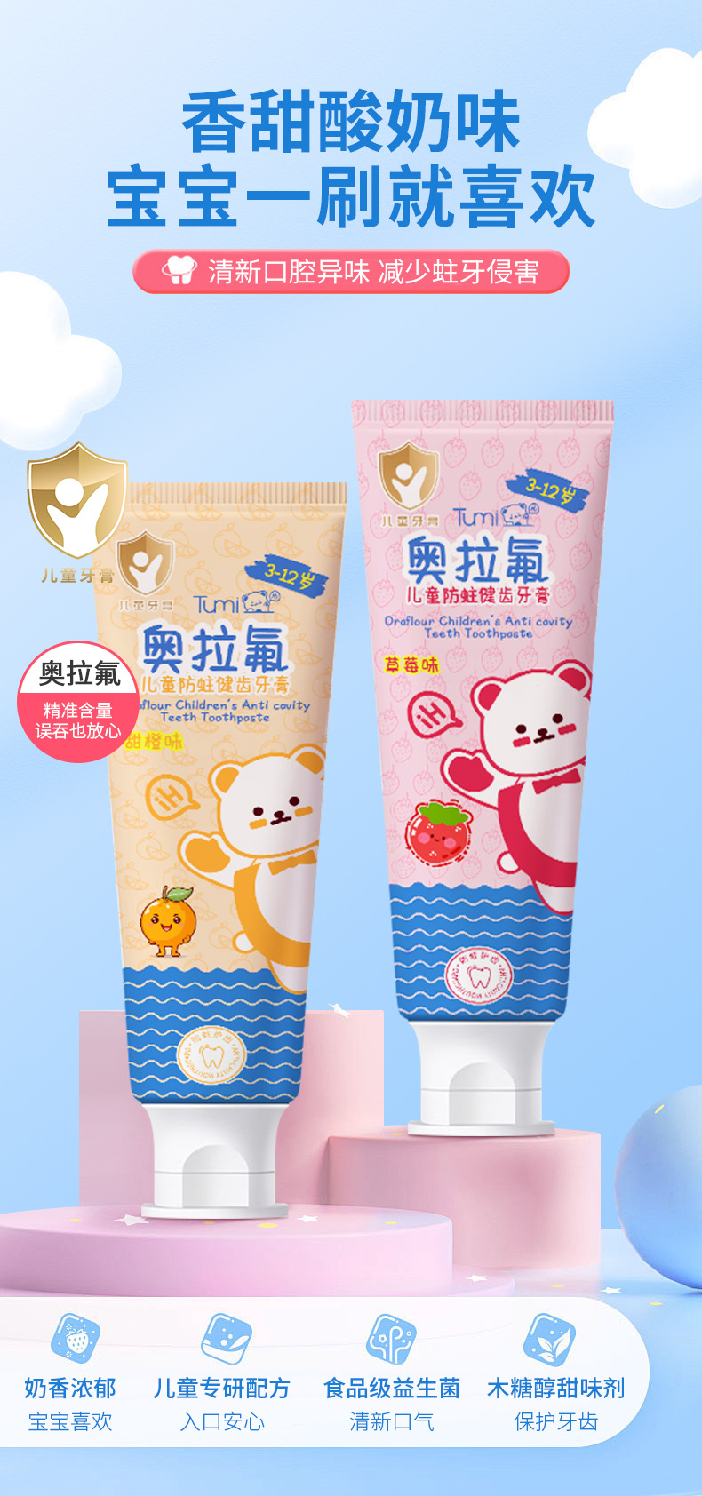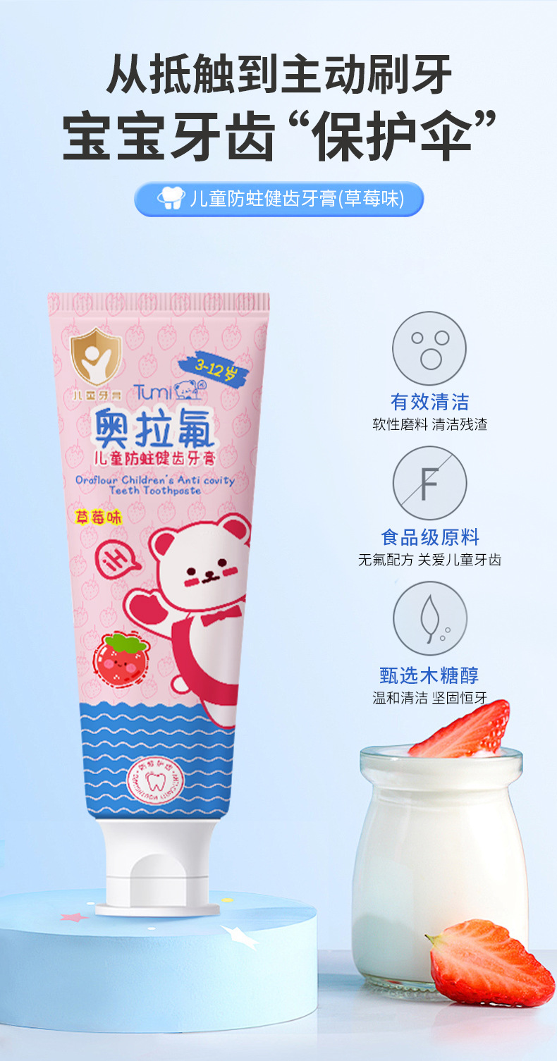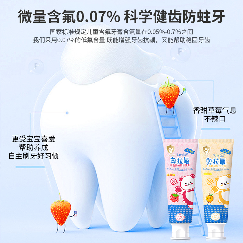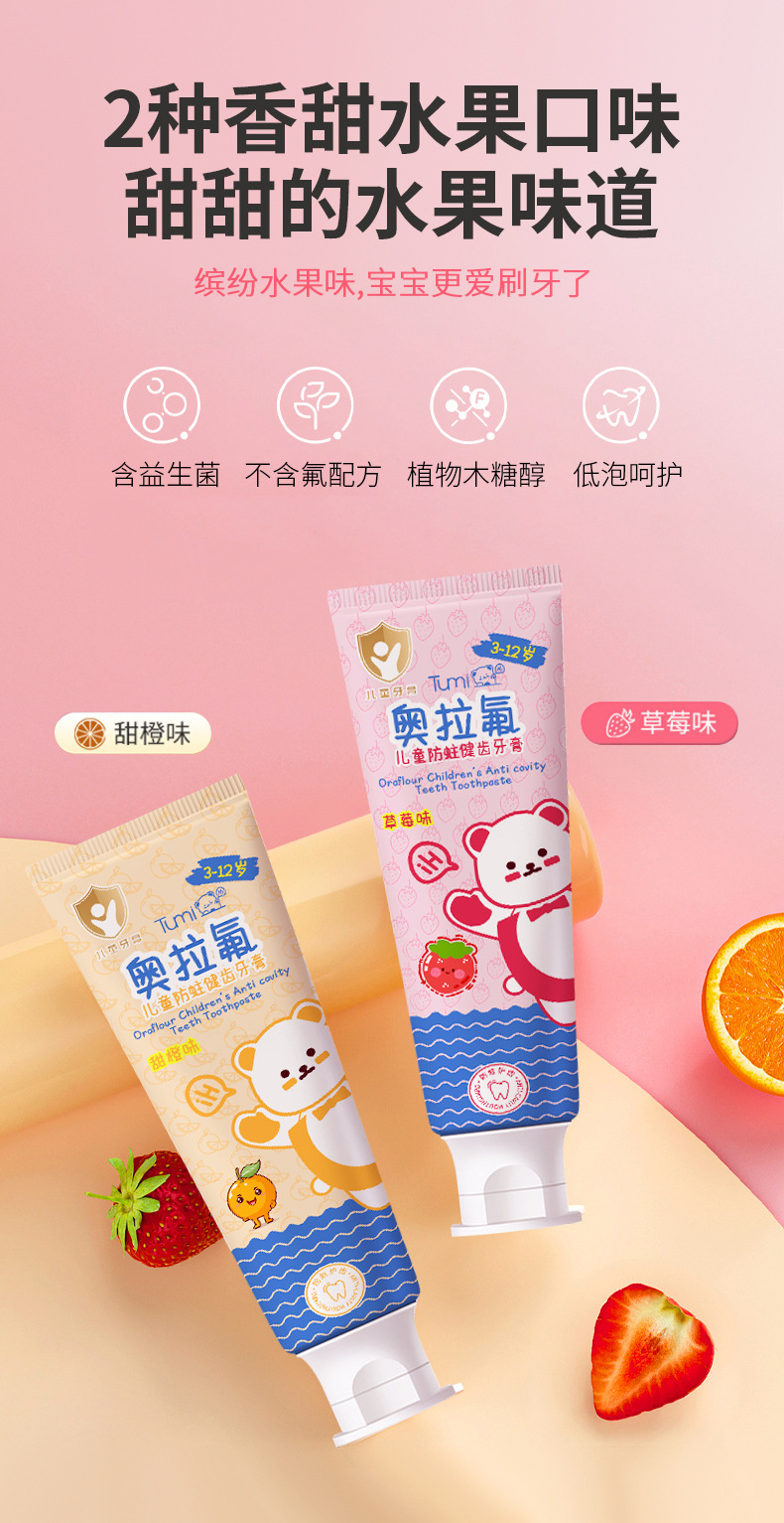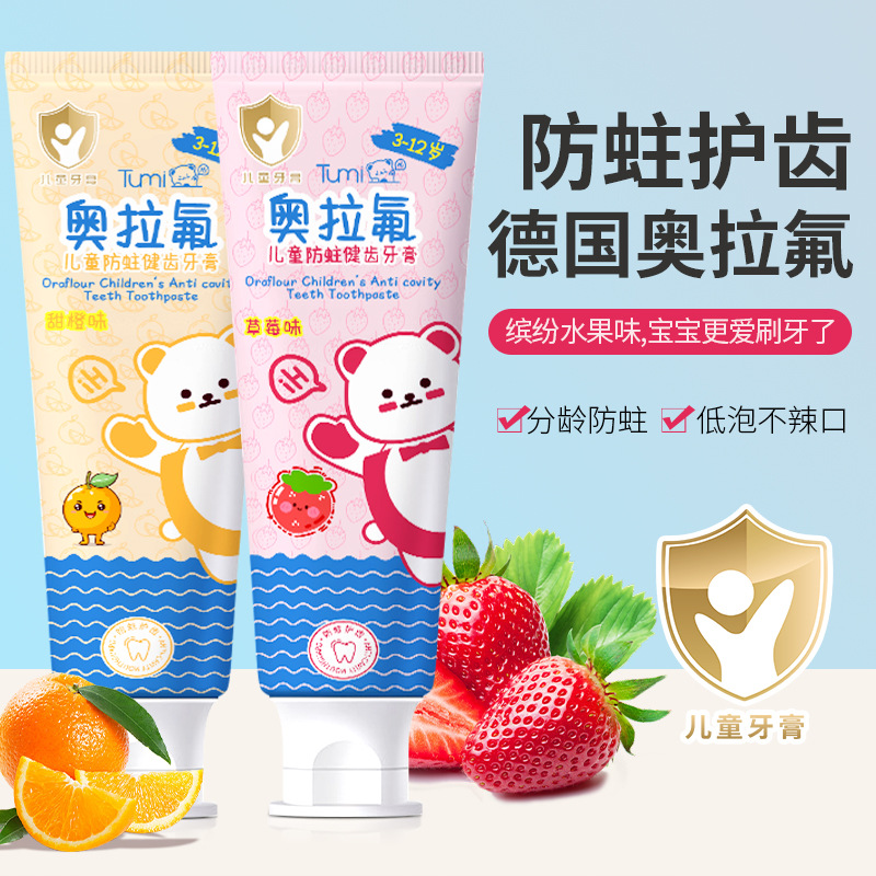 Детская зубная паста Tumi Bear - тюбик, сладкий апельсин (1421); Детская зубная паста Tumi Bear - Тюбик Клубника (1414)