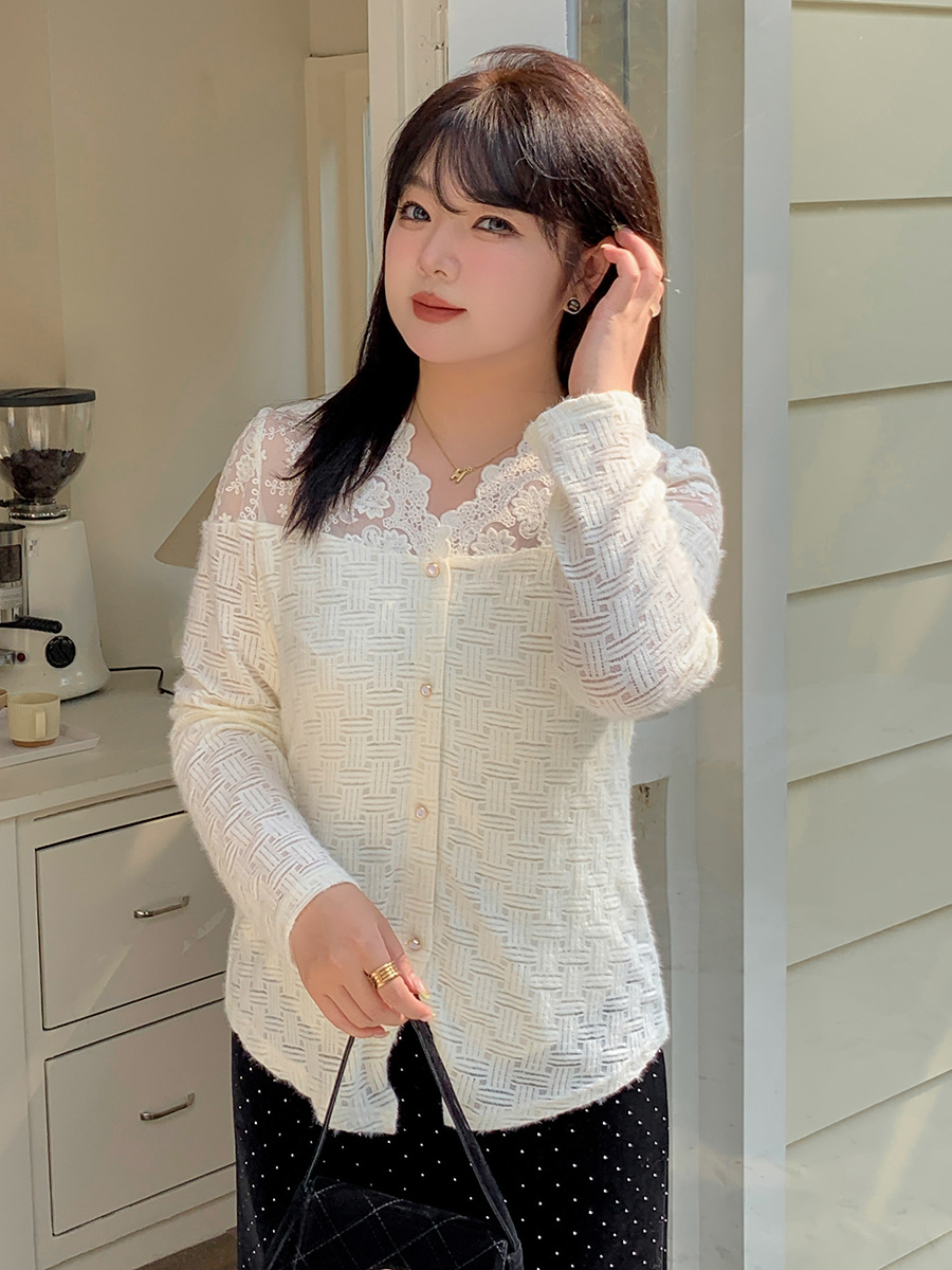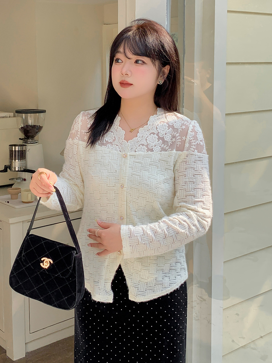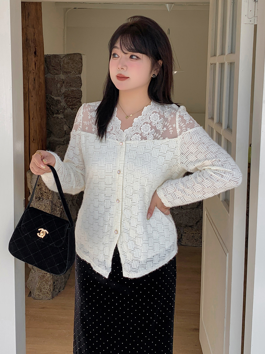 Yino большой размер женская французская кружевная V-образная рубашка с вырезом