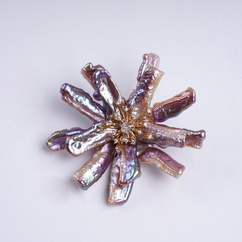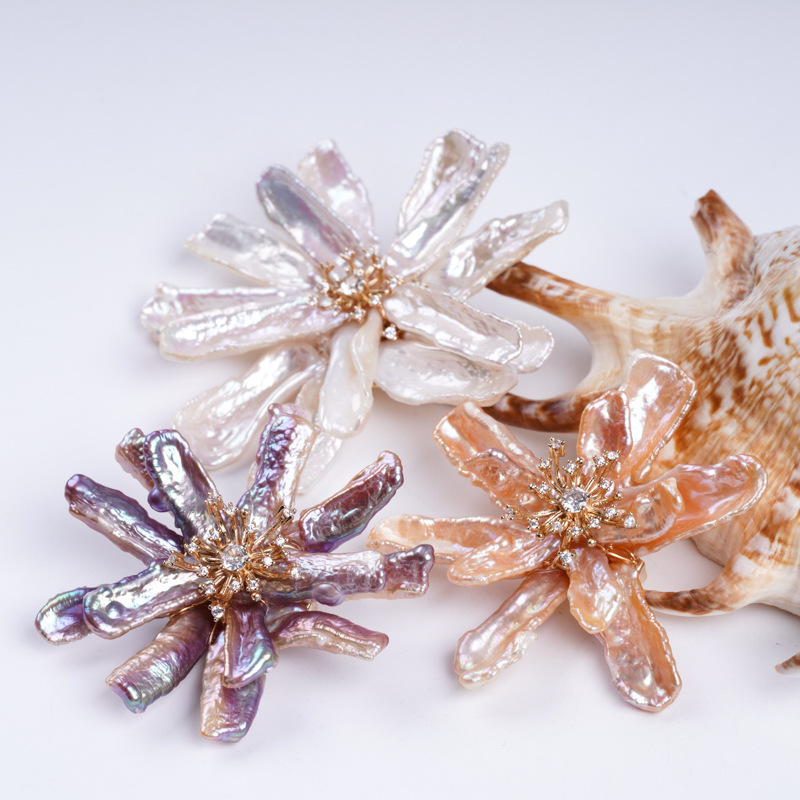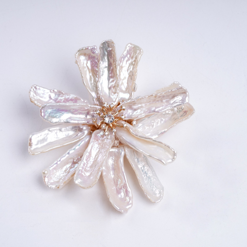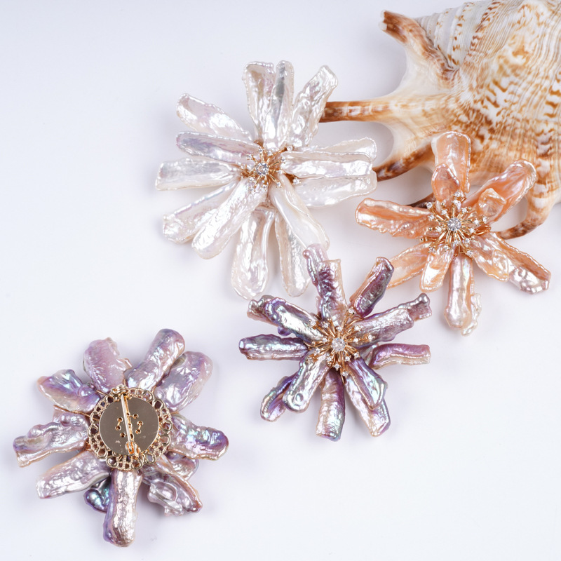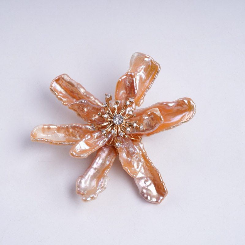 商品名称:天然珍珠胸针 琵琶形巴洛克淡水珍珠胸针60-70mm花朵珍珠饰品女