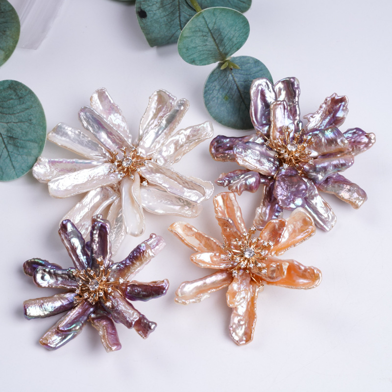 Натуральный жемчужный брошь пипа в форме барокко пресноводный жемчуг брошь 60-70 мм цветок жемчужный орнамент женский