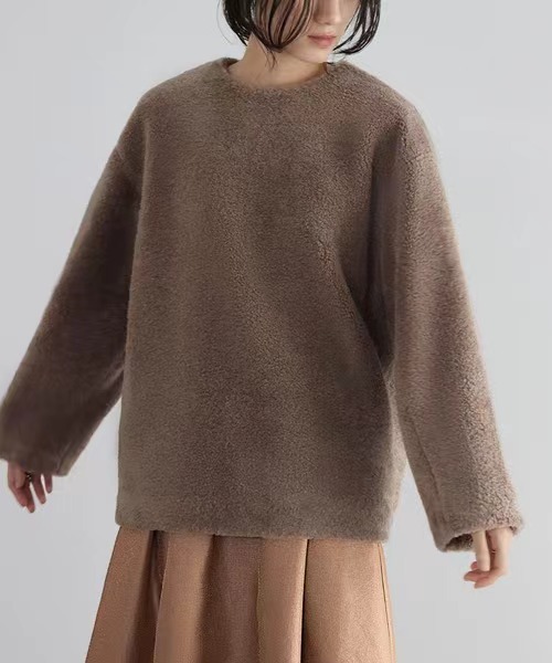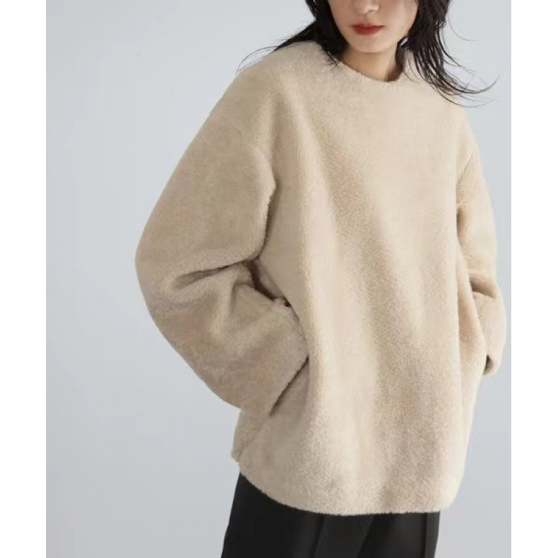 Трансграничная внешняя торговля Япония и Южная Корея 2025 осень и зима новый ленивый стиль женская рубашка с круглым вырезом