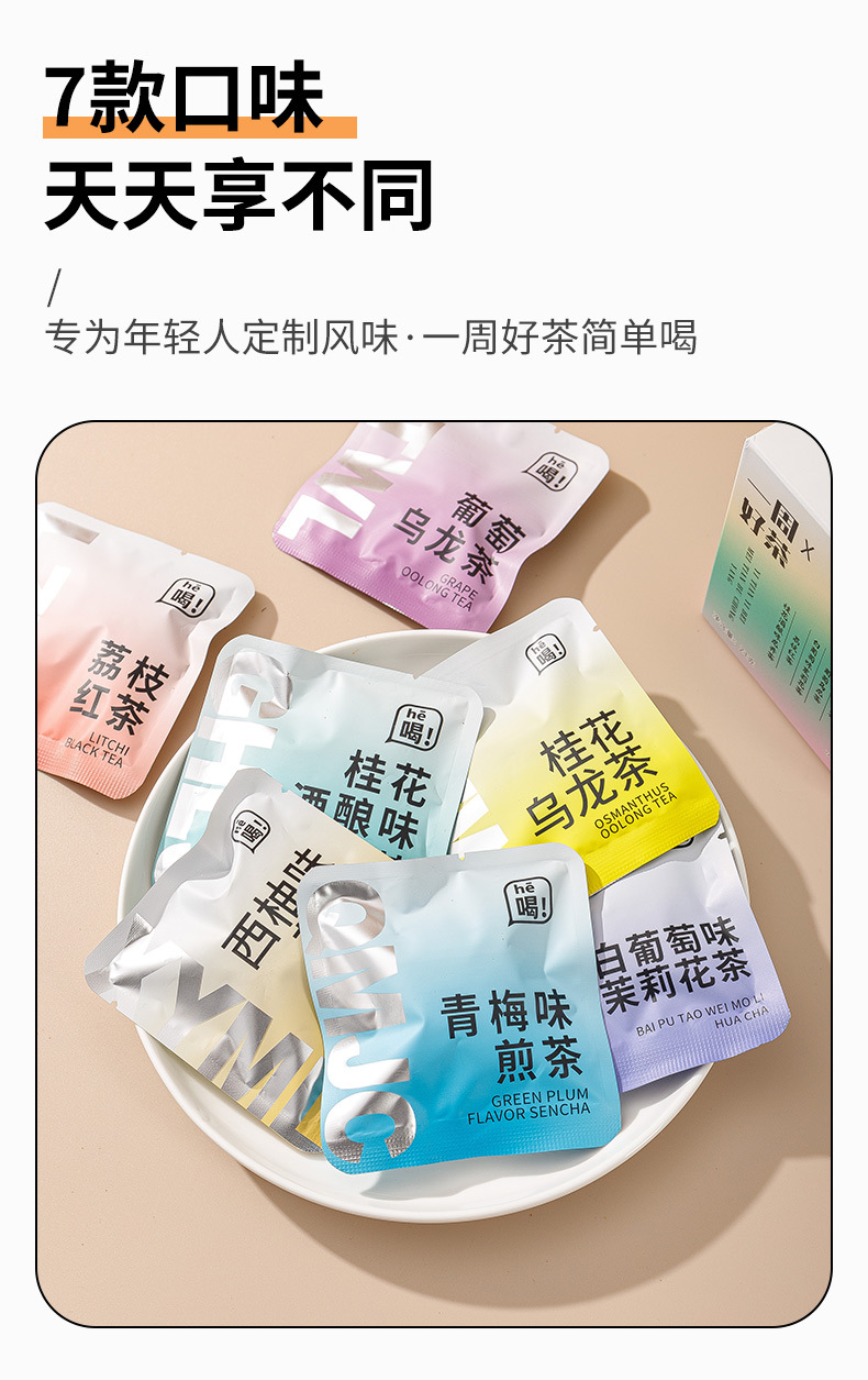 Еженедельный выбор качественных чаями от фабрики холодного заваривания: чай улун с персиком, чай жасминовый, семидневный чай холодного заваривания, чай для здоровья.