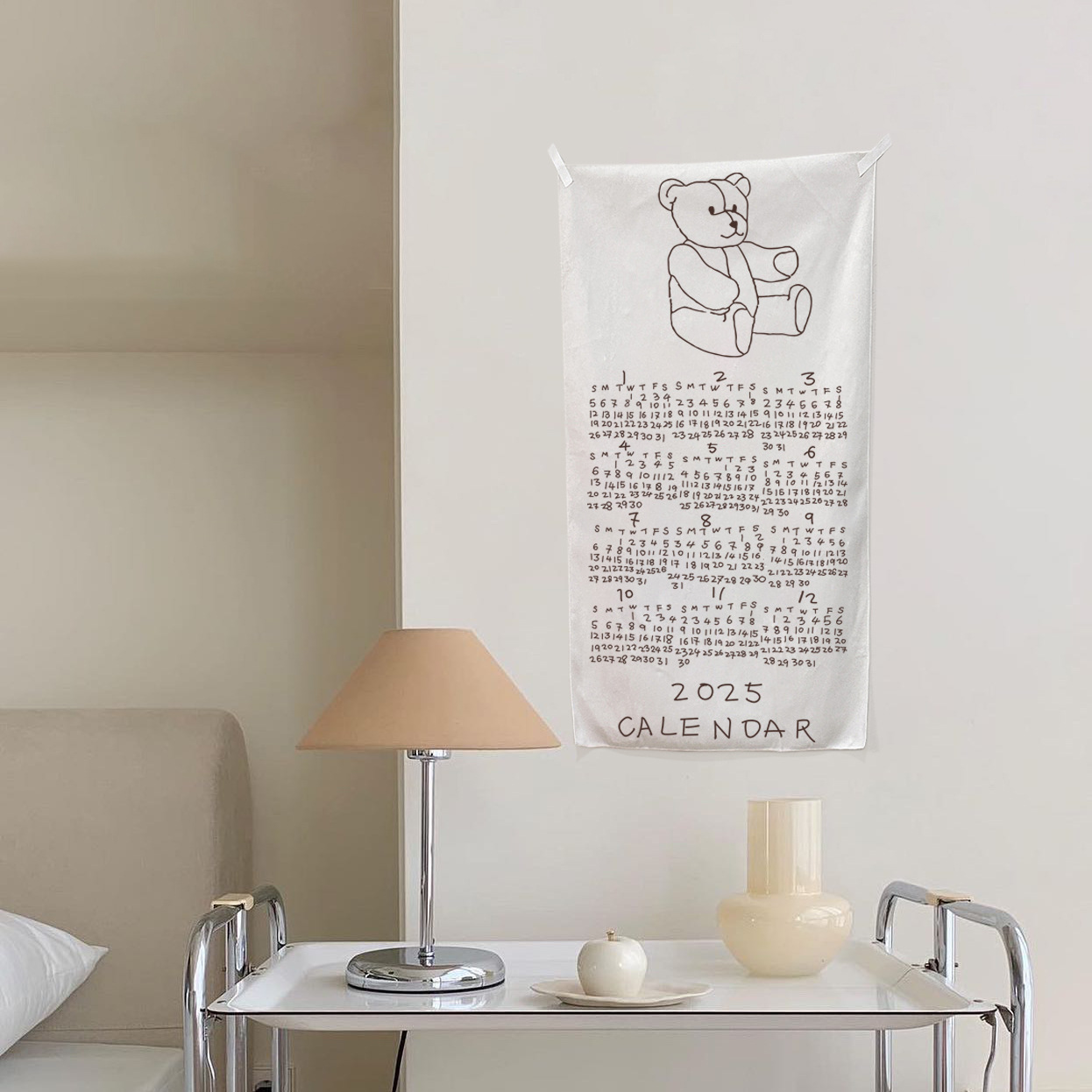 Чистый белый ручной календарь 2026 года; Календарь 2026 с ручной росписью "Медведь", 25*60 см; Календарь 2026 с бантом, расписанный вручную, 25*60 см