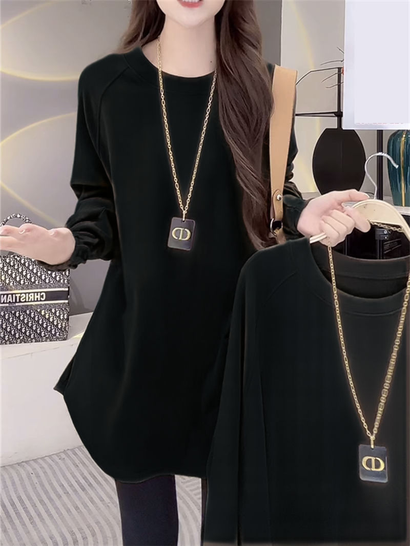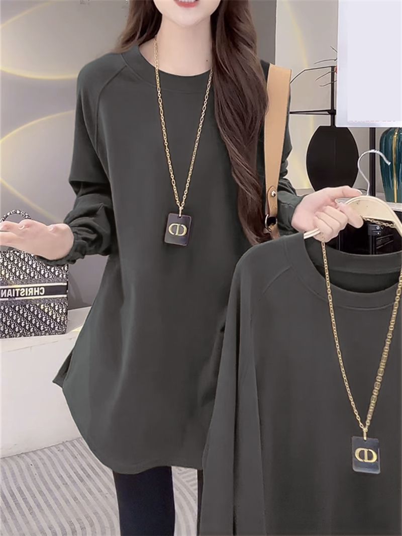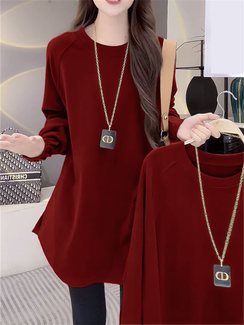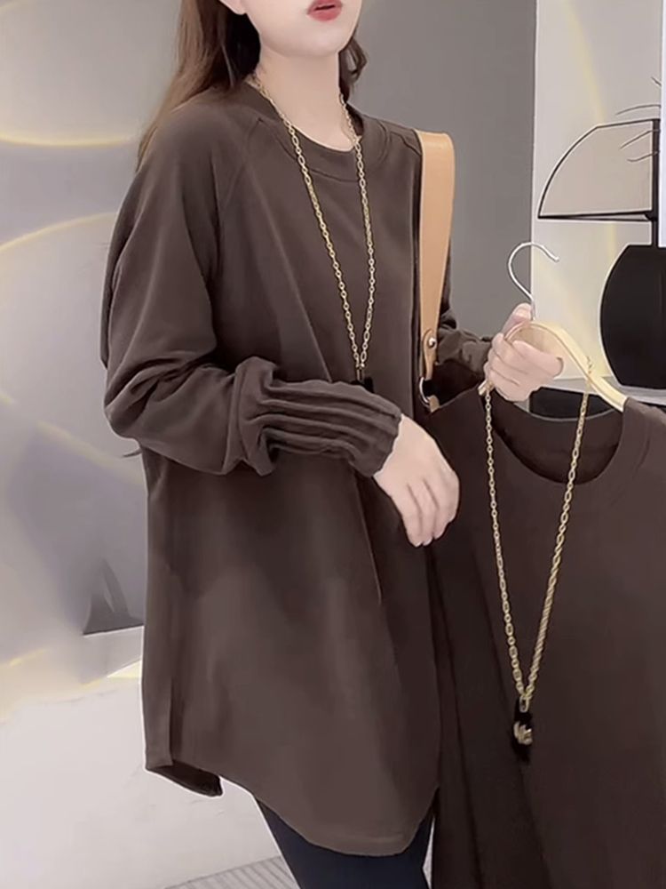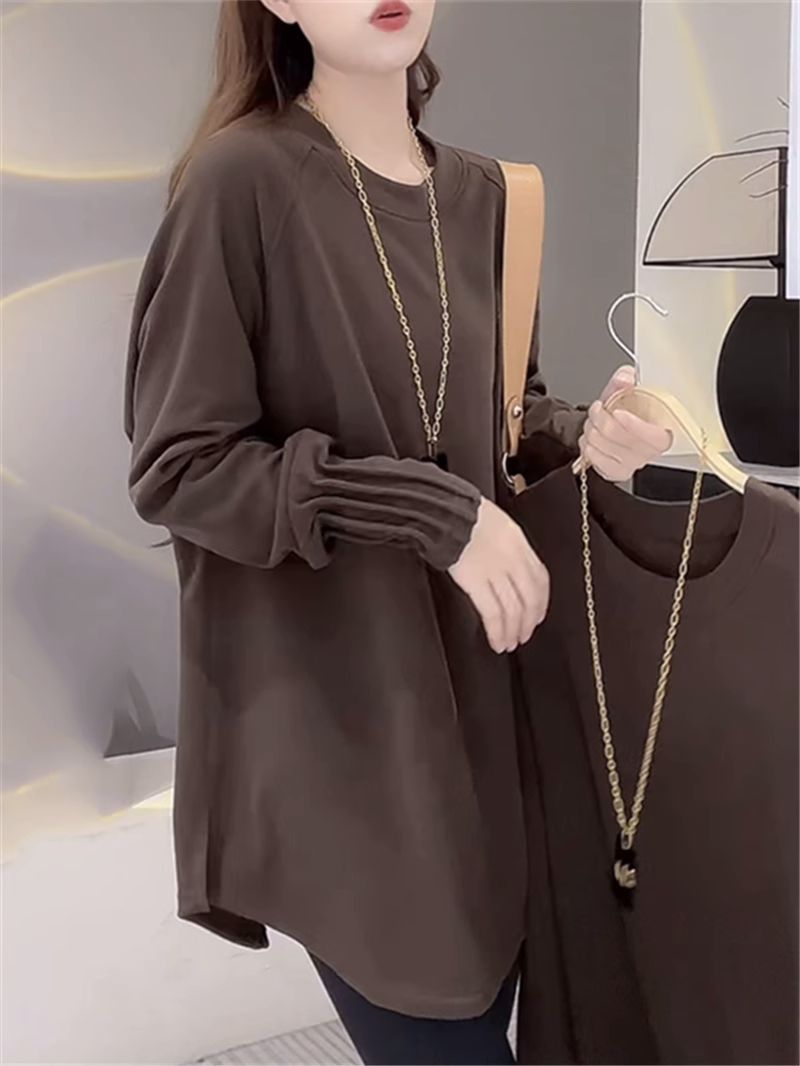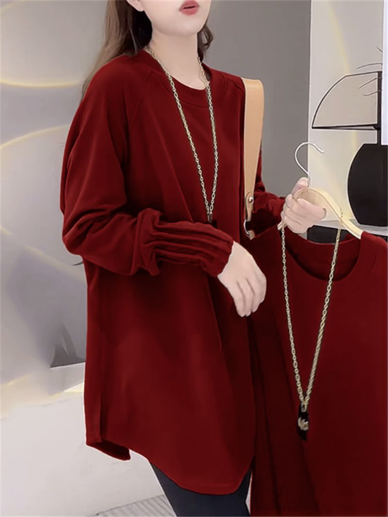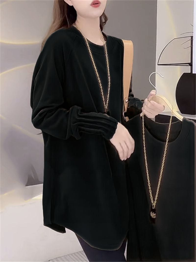 Утепленная женская футболка из немецкого вельвета с длинным рукавом, теплая базовая одежда для весны и осени, средней длины, свободного кроя, больших размеров, нижняя одежда для полных женщин.