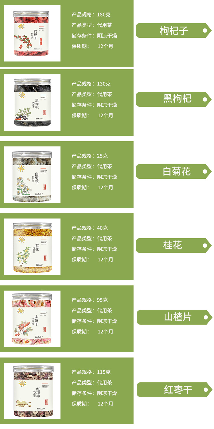 Цветочный чай, фруктовый чай, консервированная смесь травяных чаев, консервированный цветочный чай с красными финиками, ягодами годжи, листьями шелковицы и жимолостью.