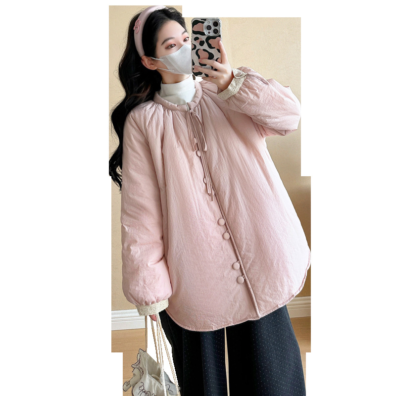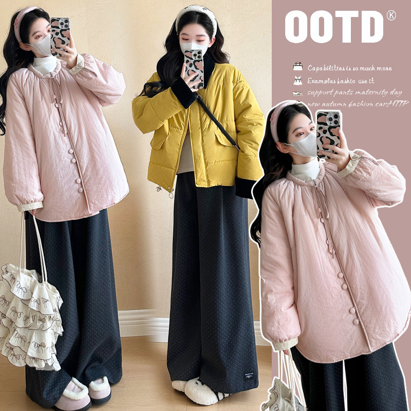 розовое хлопковое пальто; желтое хлопковое пальто; Брюки в горошек; Брюки в горошек с бархатом.