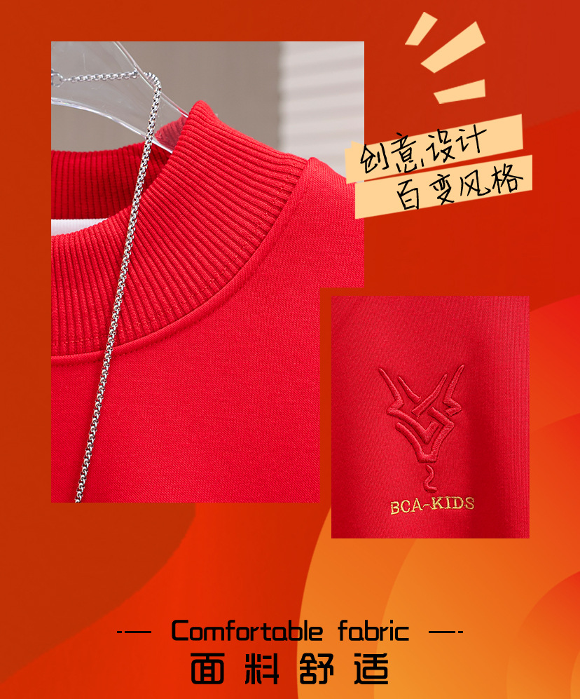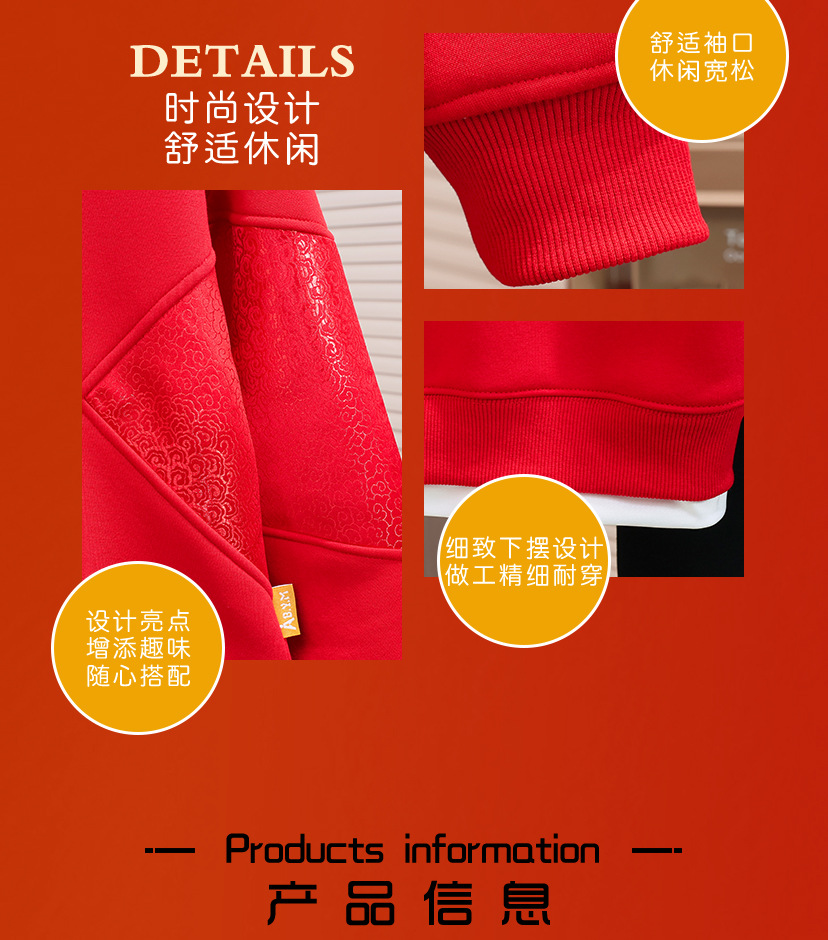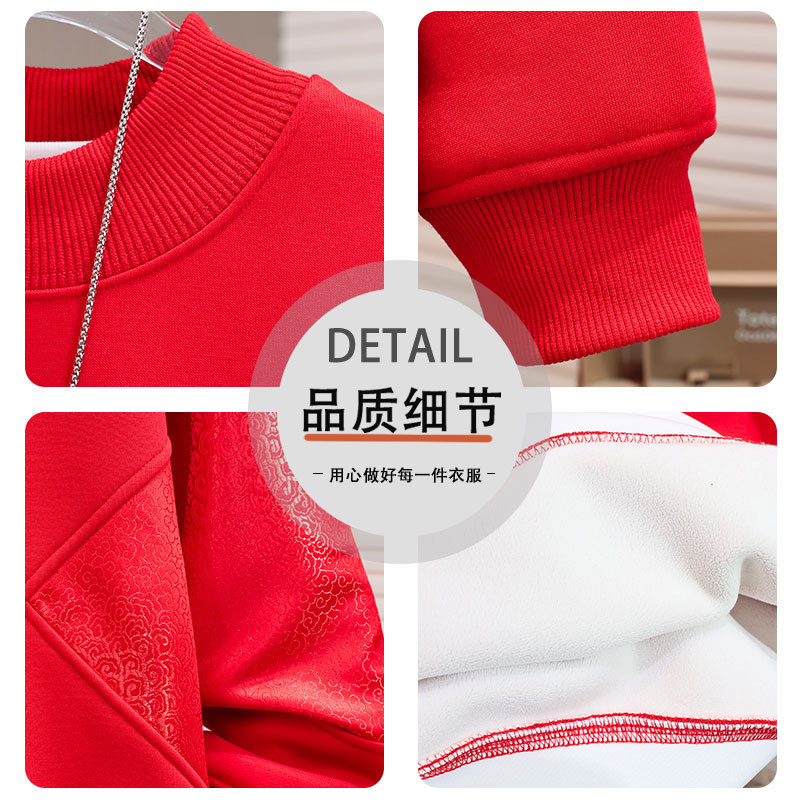 Новая зимняя модель 2025 года: красная флисовая толстовка с круглым вырезом в китайском стиле для мальчиков старшего возраста, с простым дизайном.