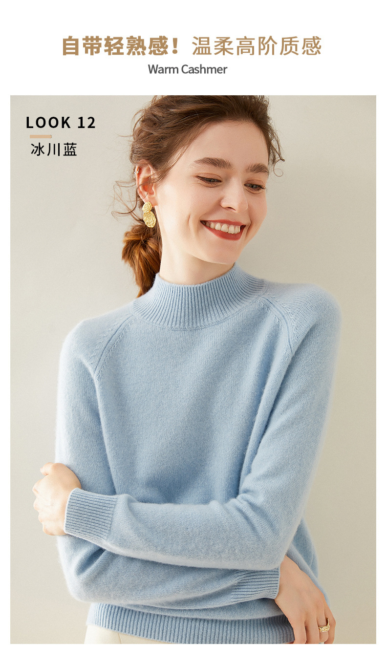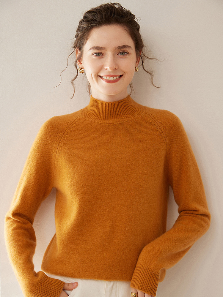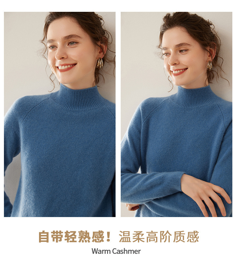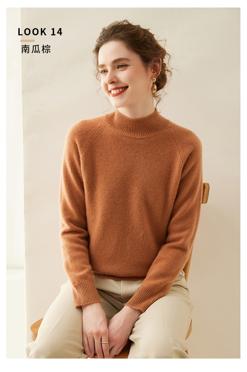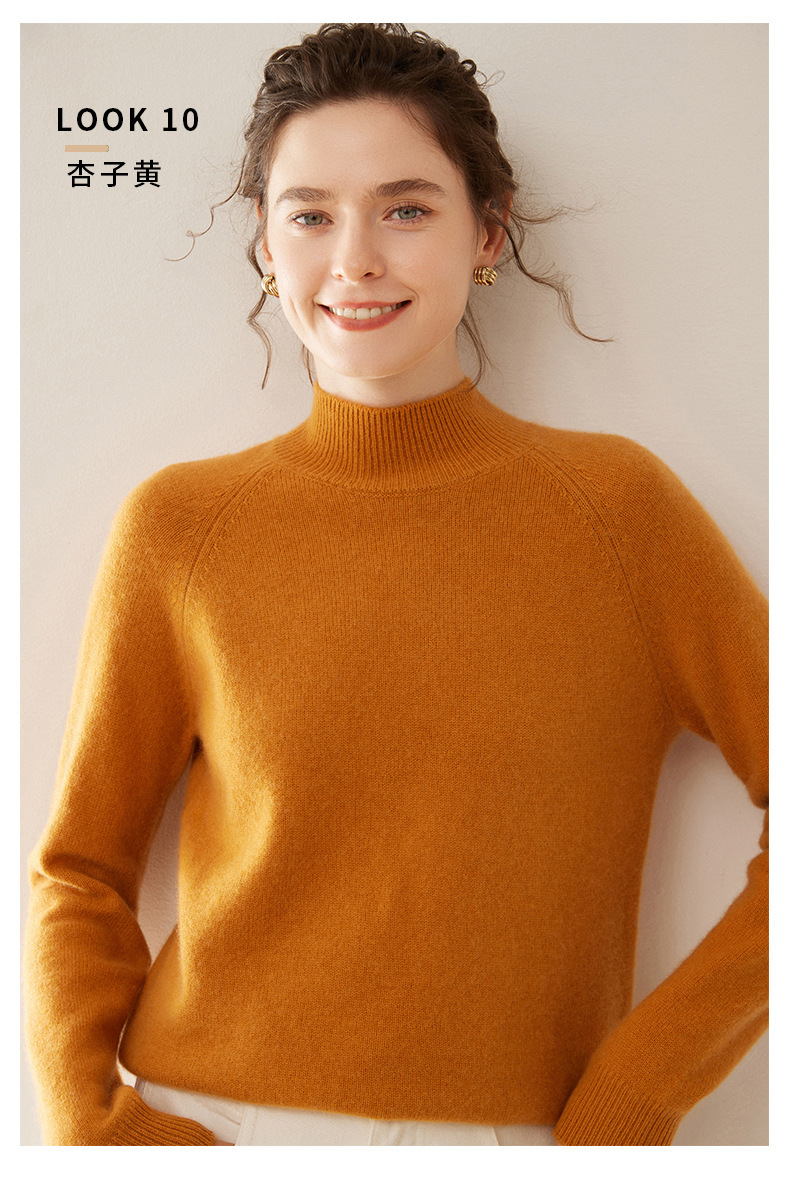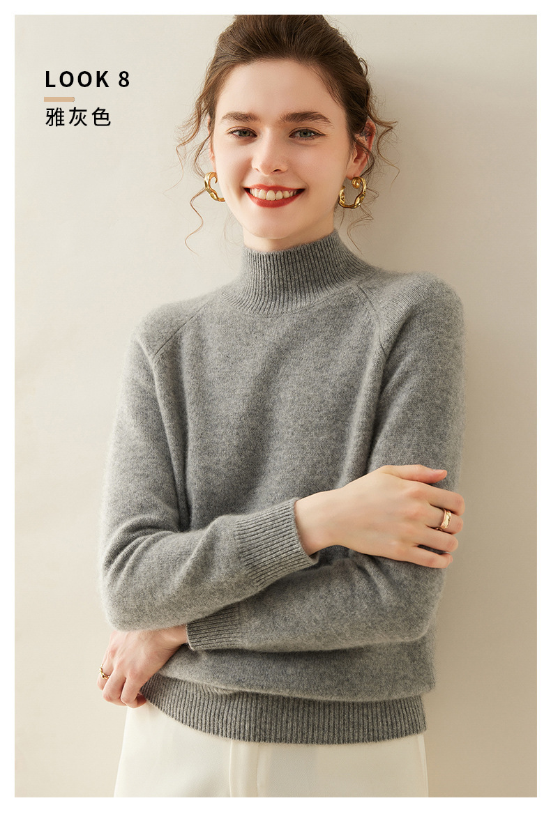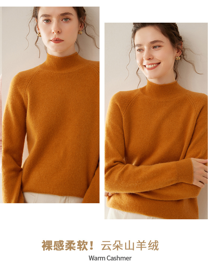 2024 осень и зима новый женский полувысокий воротник кашемировый свитер сплошной цвет семь игл утолщенный плечо вязаный кашемировый нижний свитер