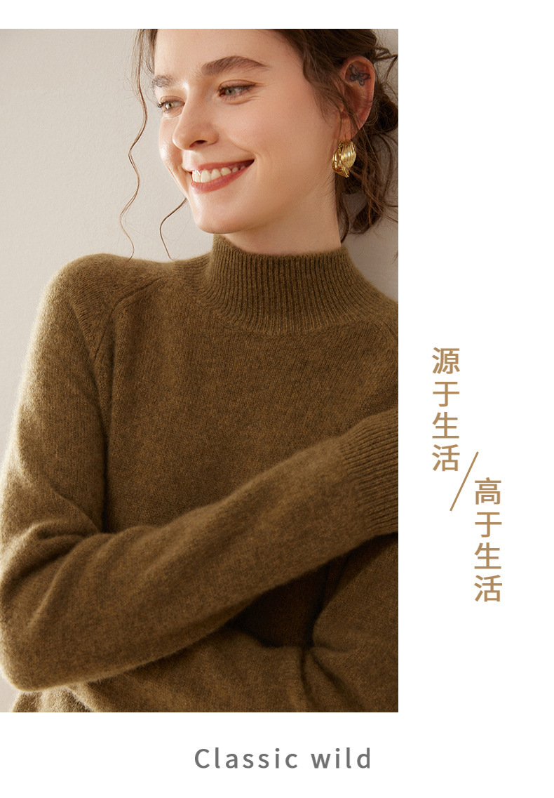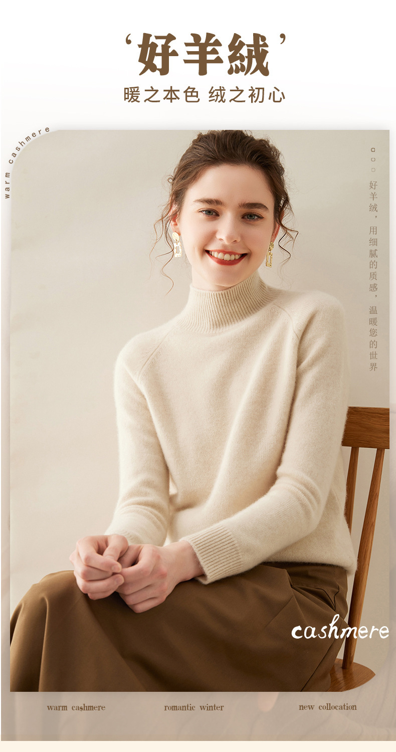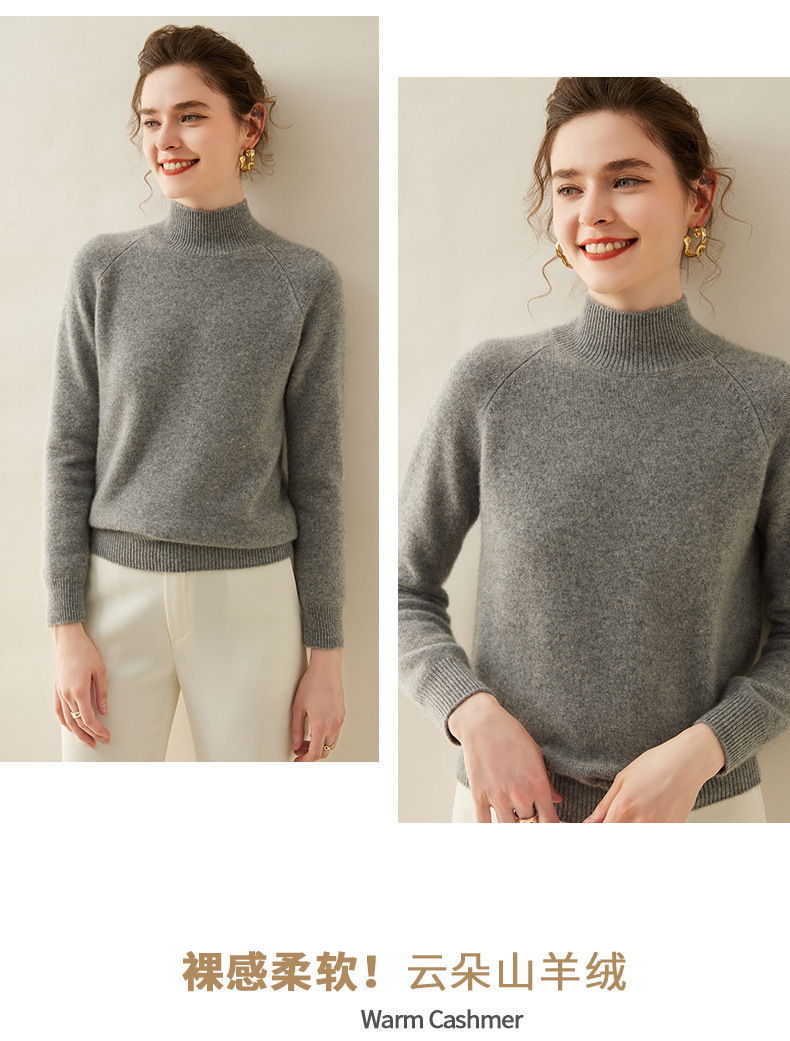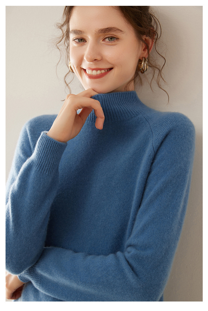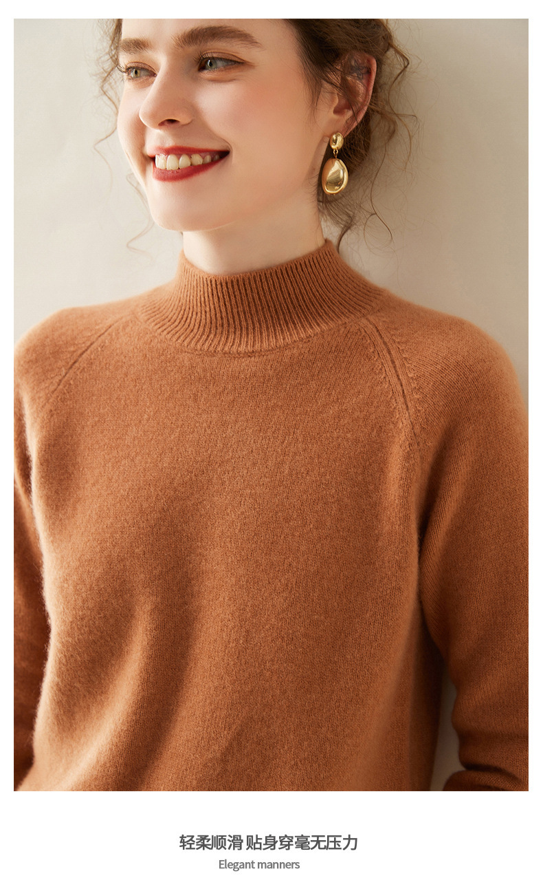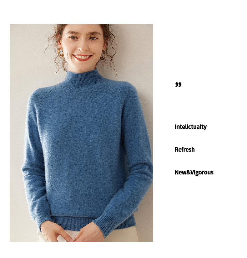 2024 осень и зима новый женский полувысокий воротник кашемировый свитер сплошной цвет семь игл утолщенный плечо вязаный кашемировый нижний свитер