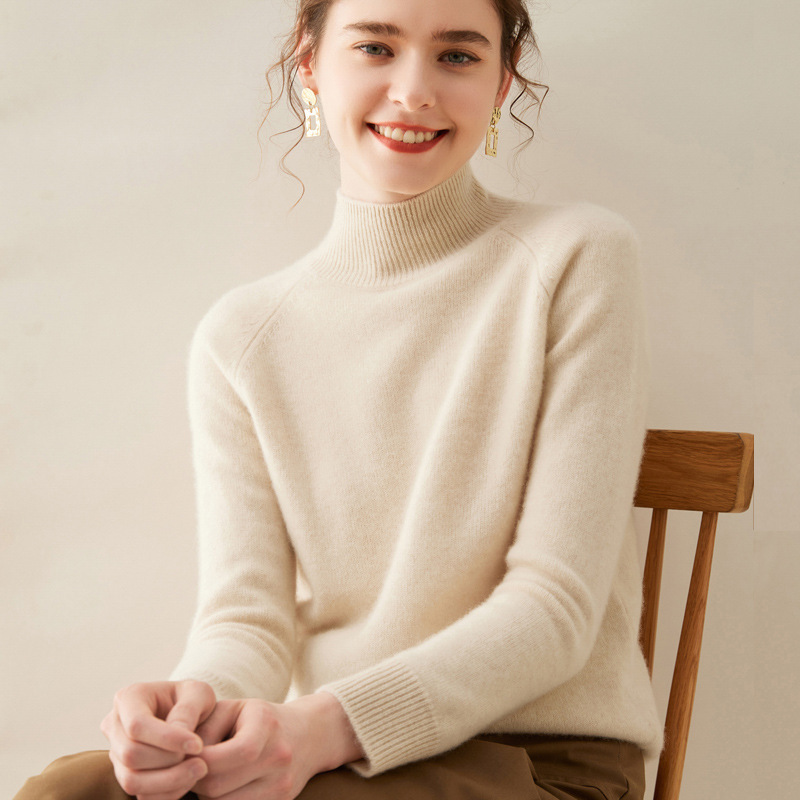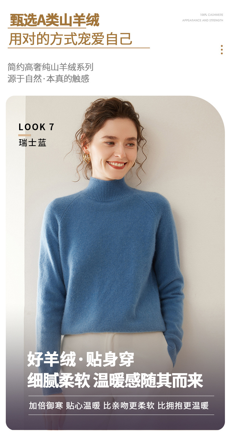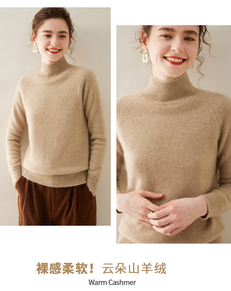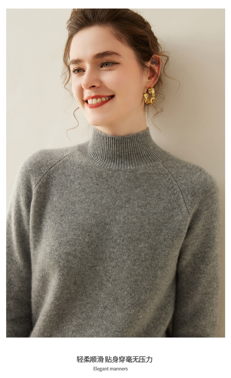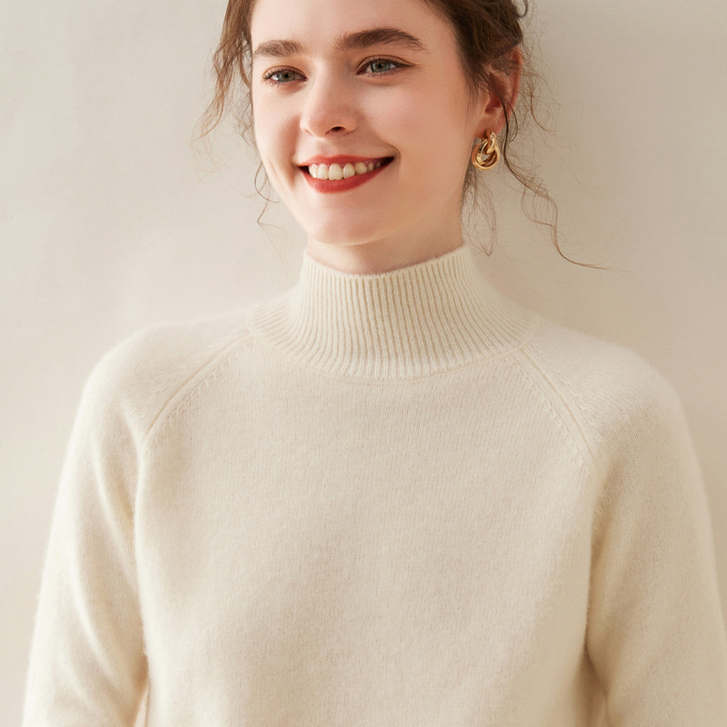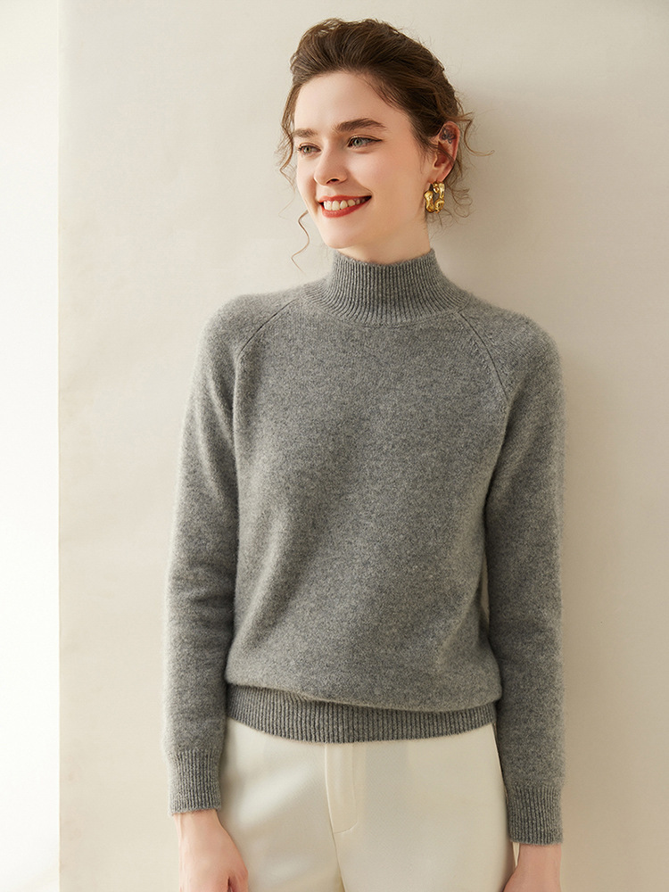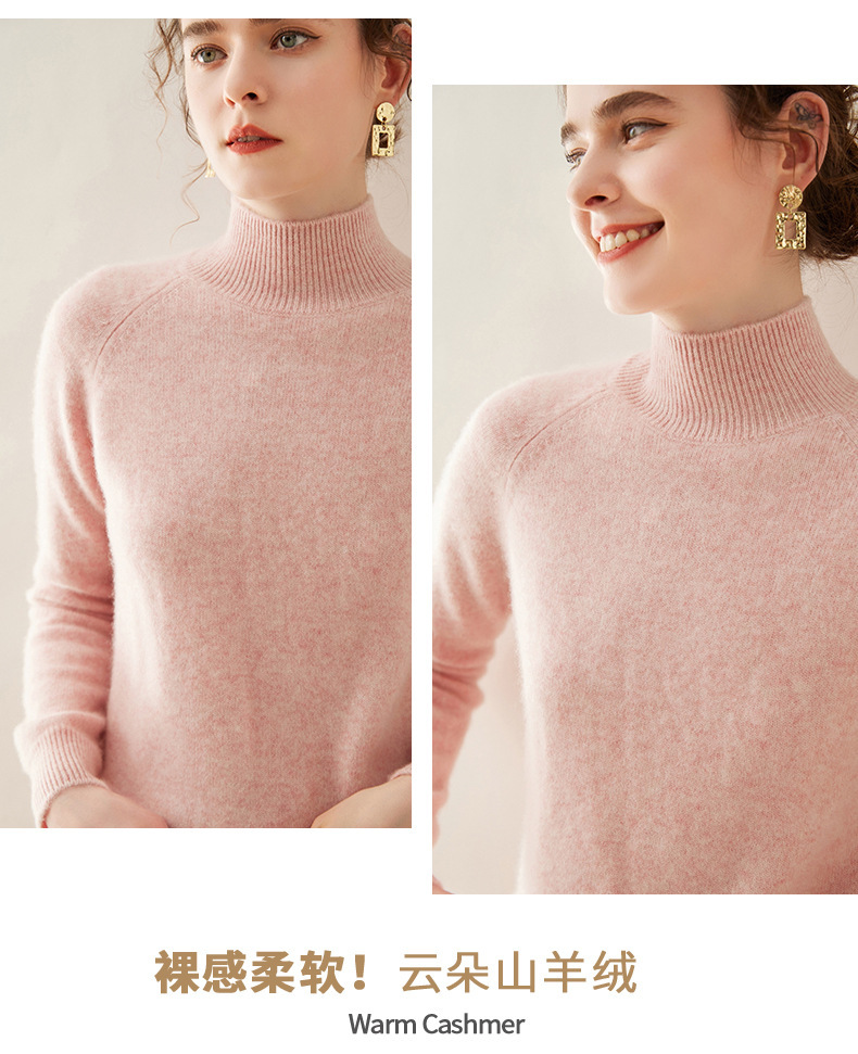 2024 осень и зима новый женский полувысокий воротник кашемировый свитер сплошной цвет семь игл утолщенный плечо вязаный кашемировый нижний свитер