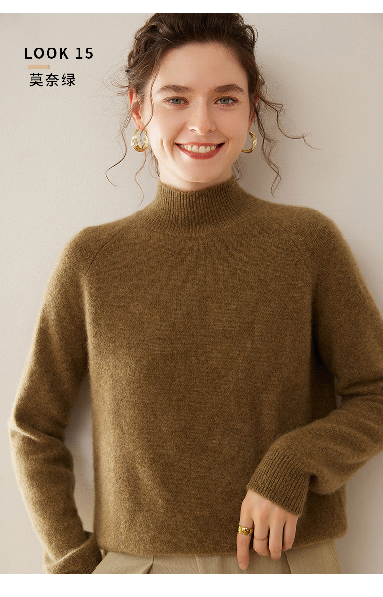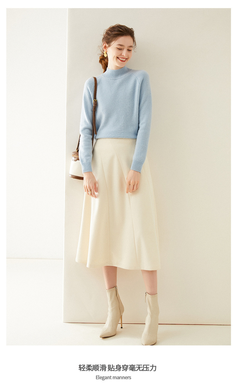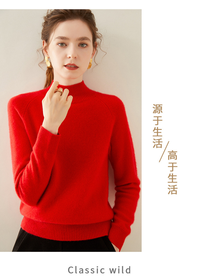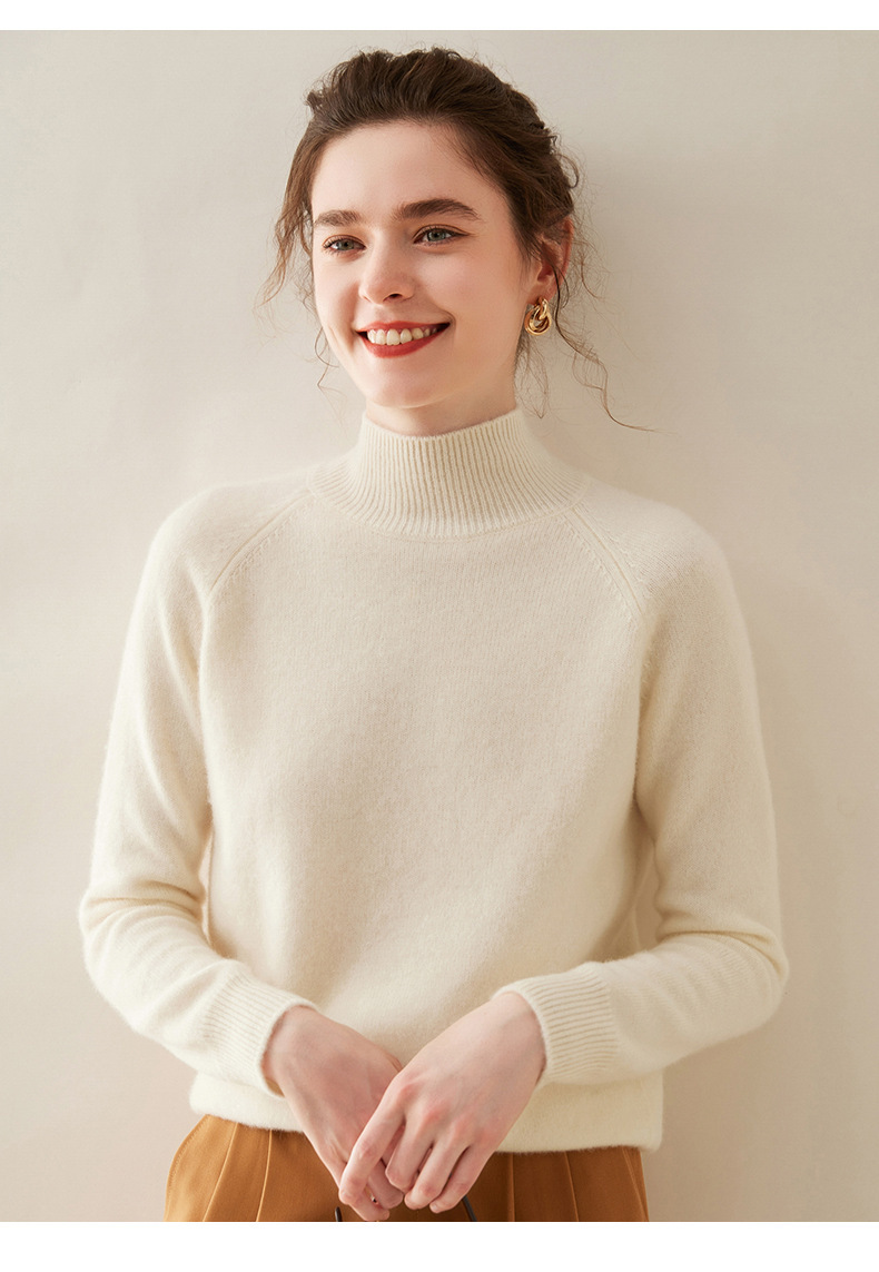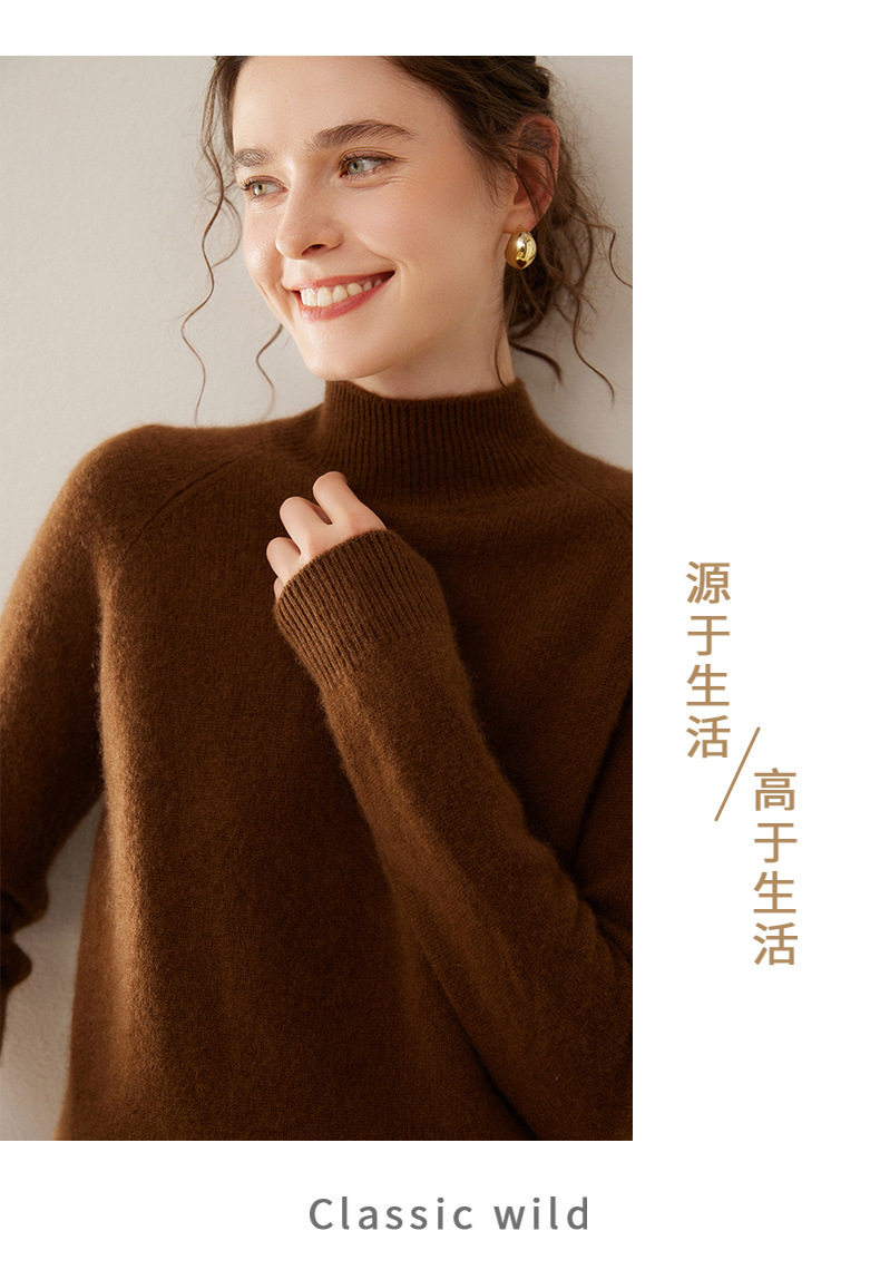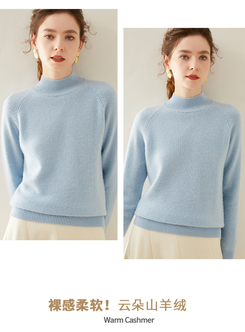 2024 осень и зима новый женский полувысокий воротник кашемировый свитер сплошной цвет семь игл утолщенный плечо вязаный кашемировый нижний свитер