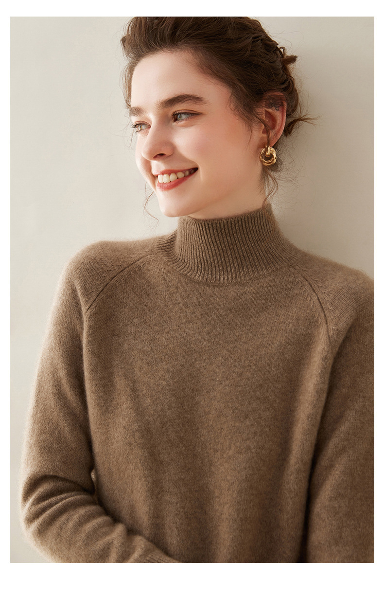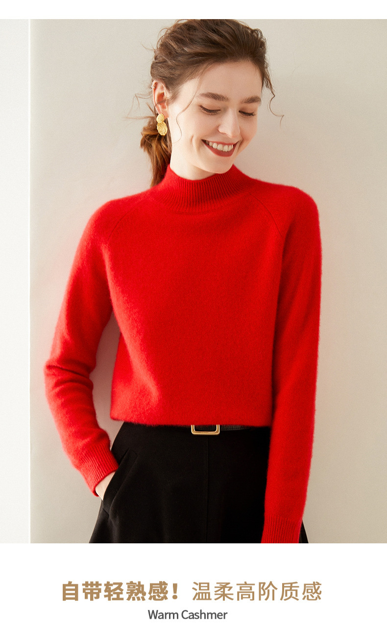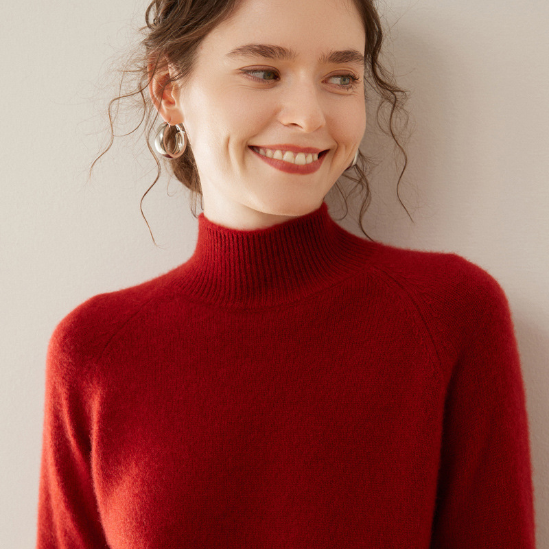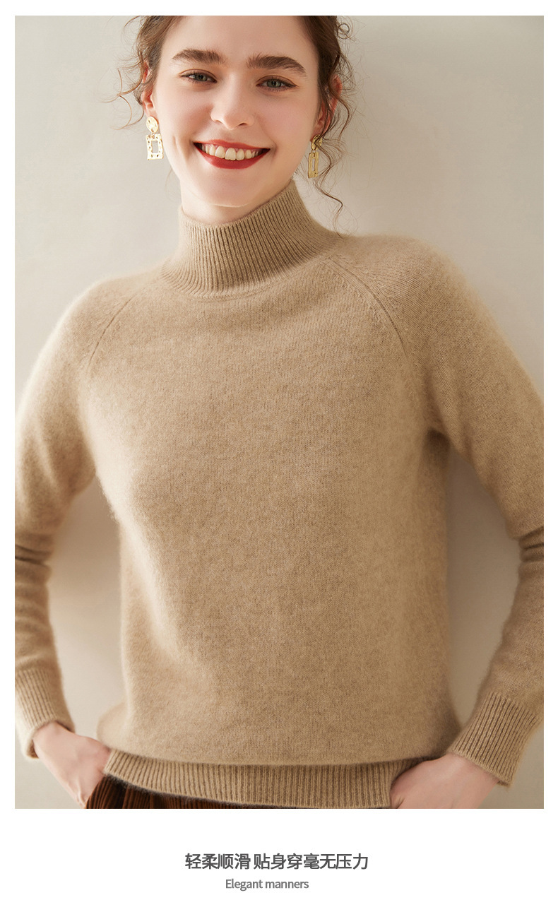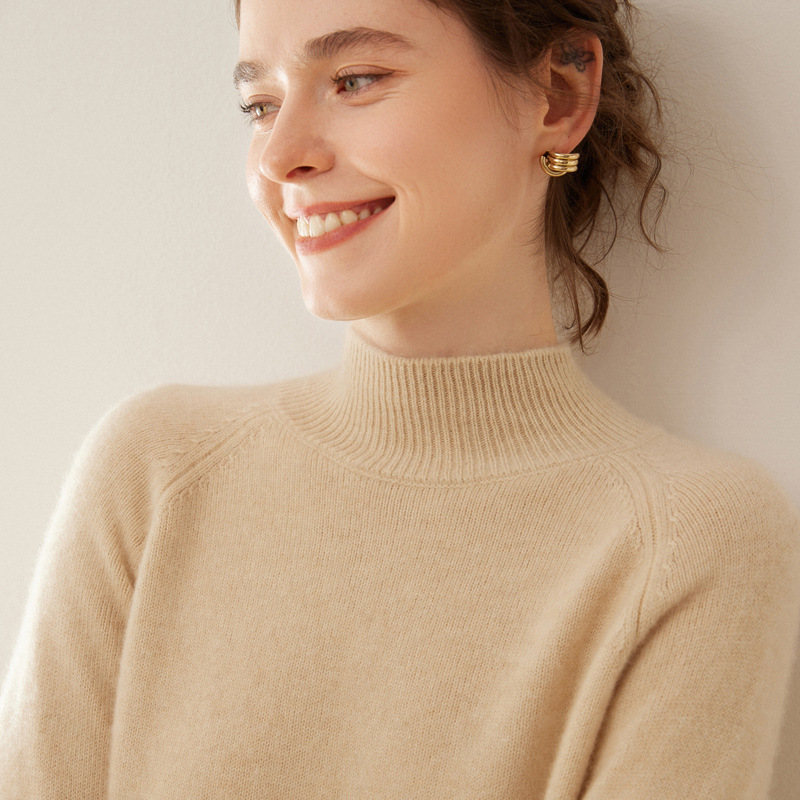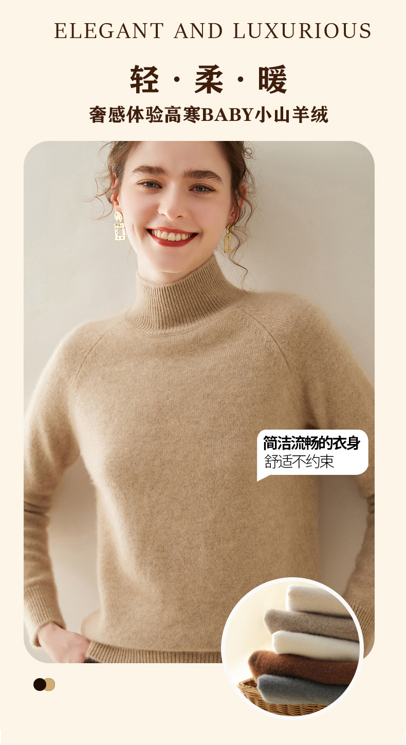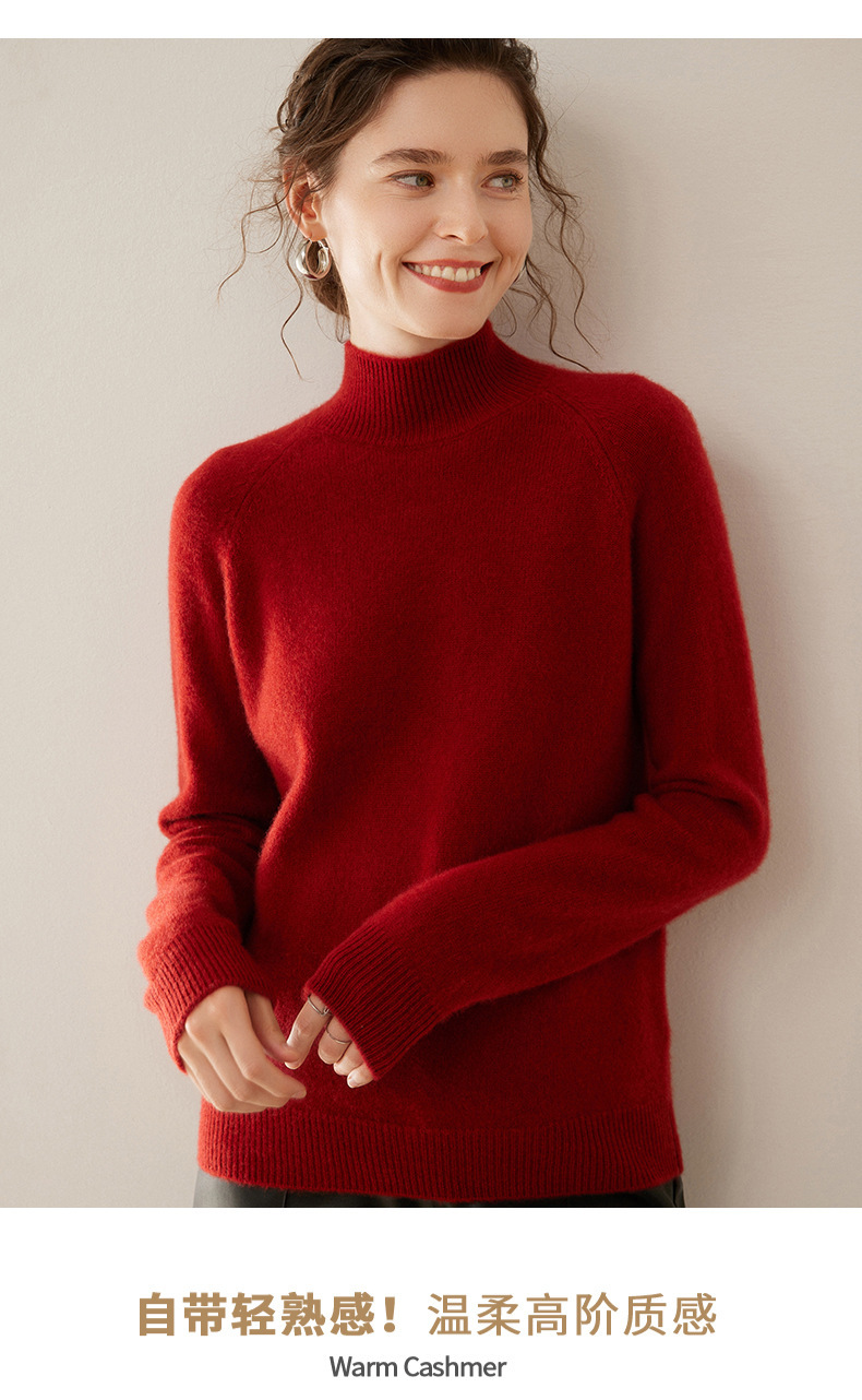 2024 осень и зима новый женский полувысокий воротник кашемировый свитер сплошной цвет семь игл утолщенный плечо вязаный кашемировый нижний свитер