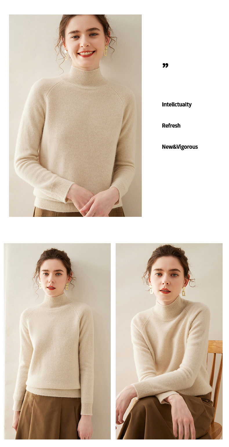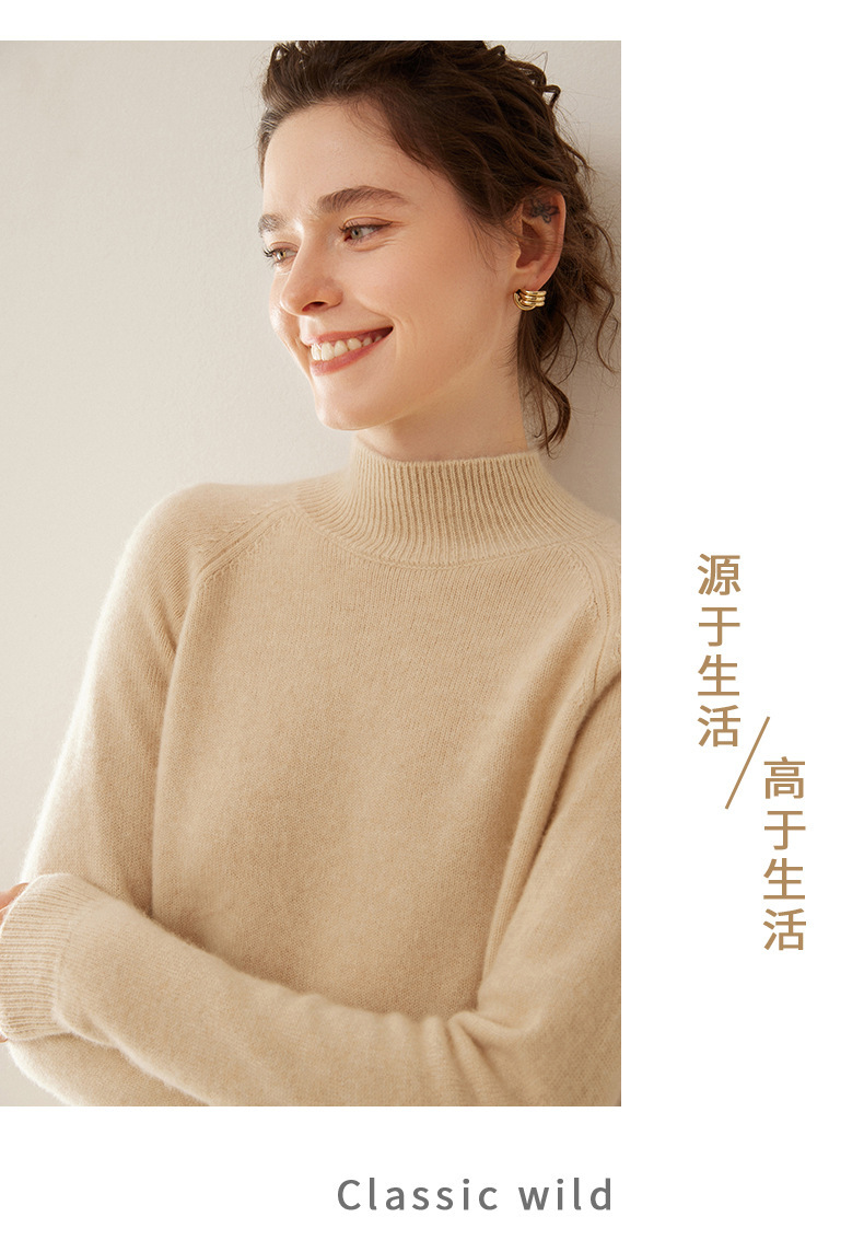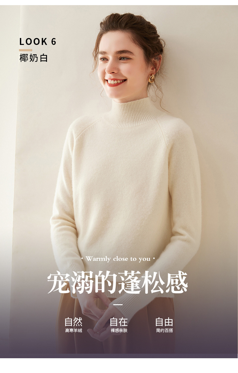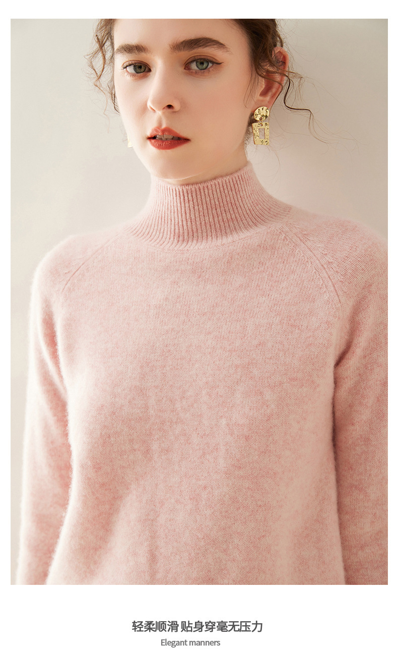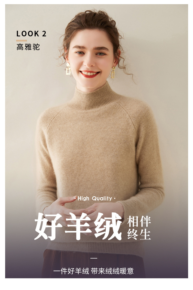 2024 осень и зима новый женский полувысокий воротник кашемировый свитер сплошной цвет семь игл утолщенный плечо вязаный кашемировый нижний свитер