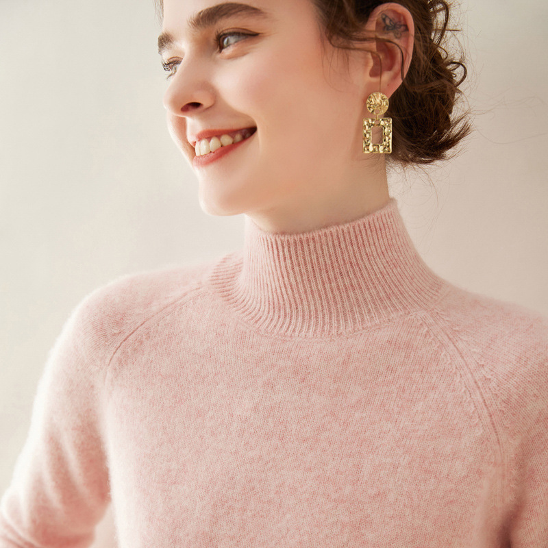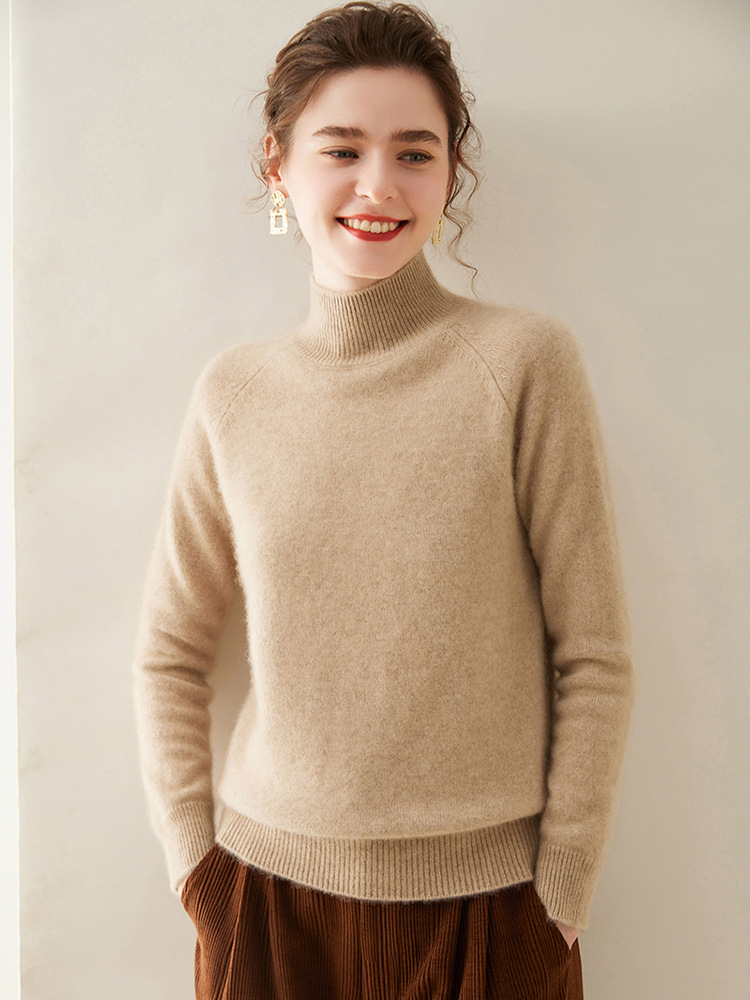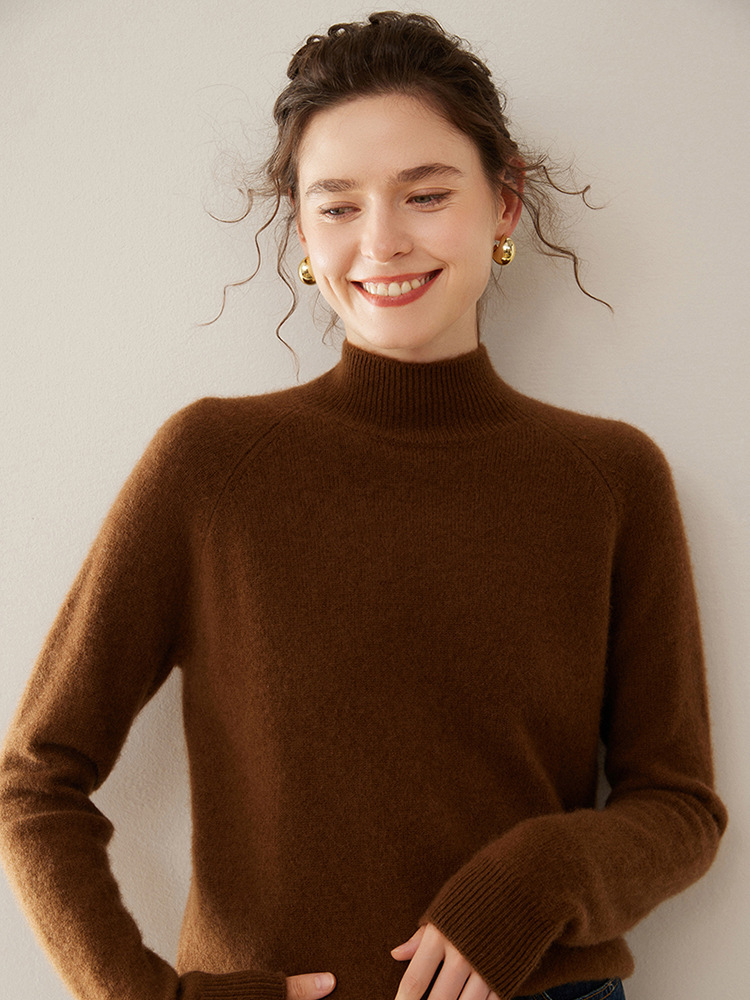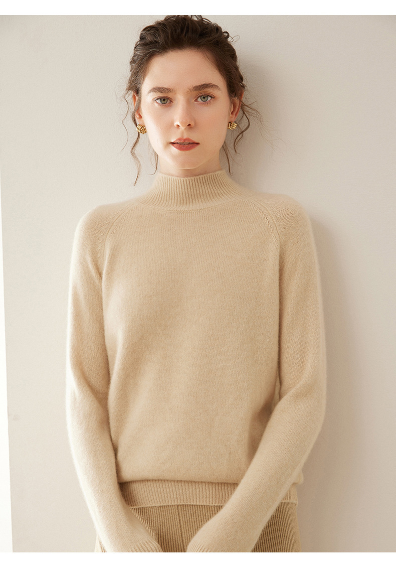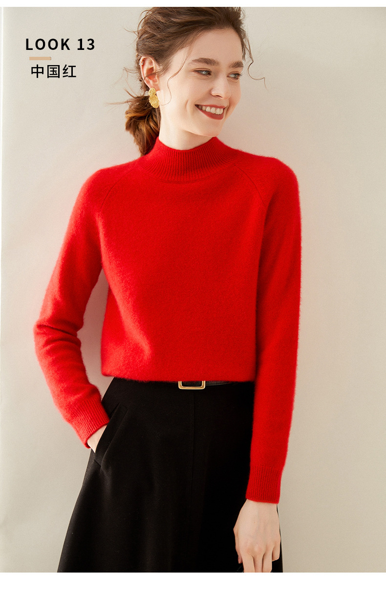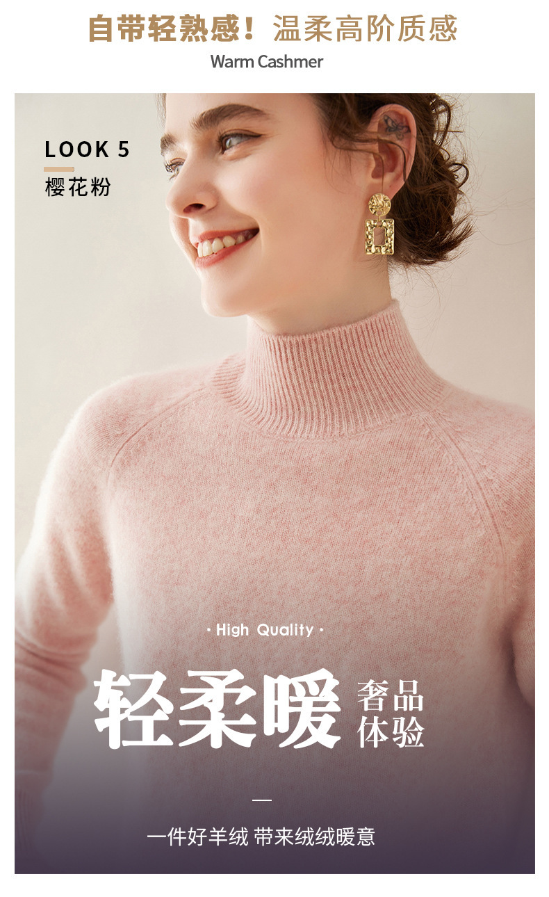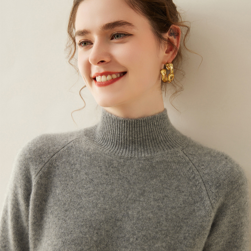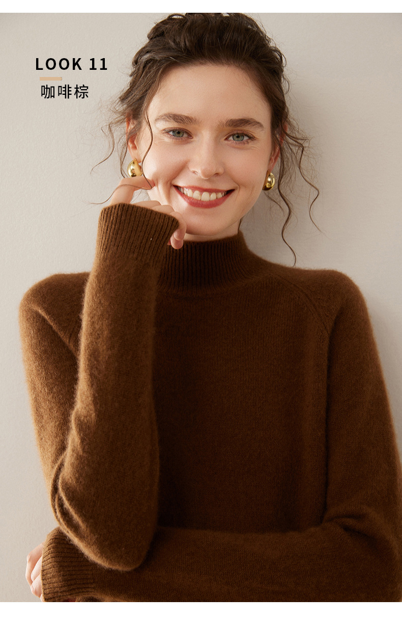 2024 осень и зима новый женский полувысокий воротник кашемировый свитер сплошной цвет семь игл утолщенный плечо вязаный кашемировый нижний свитер
