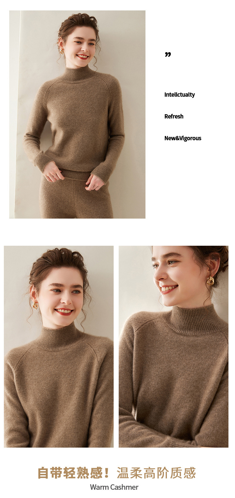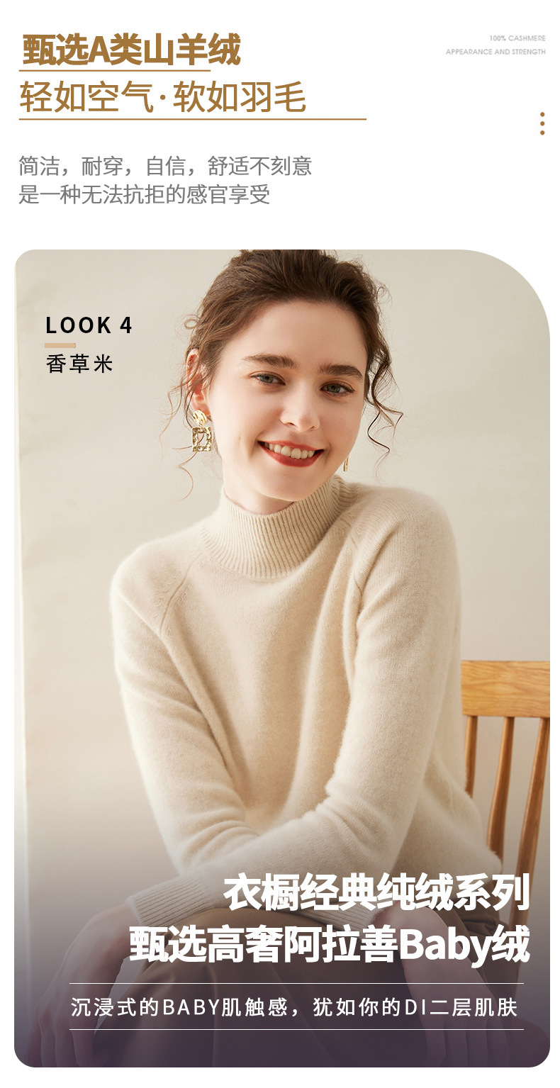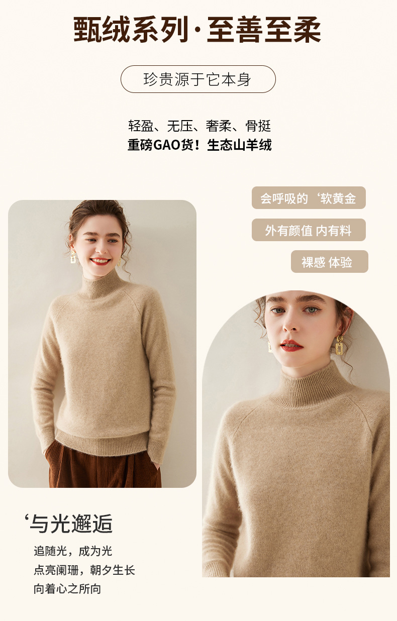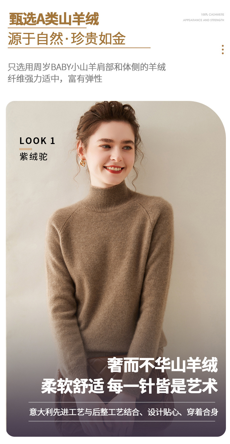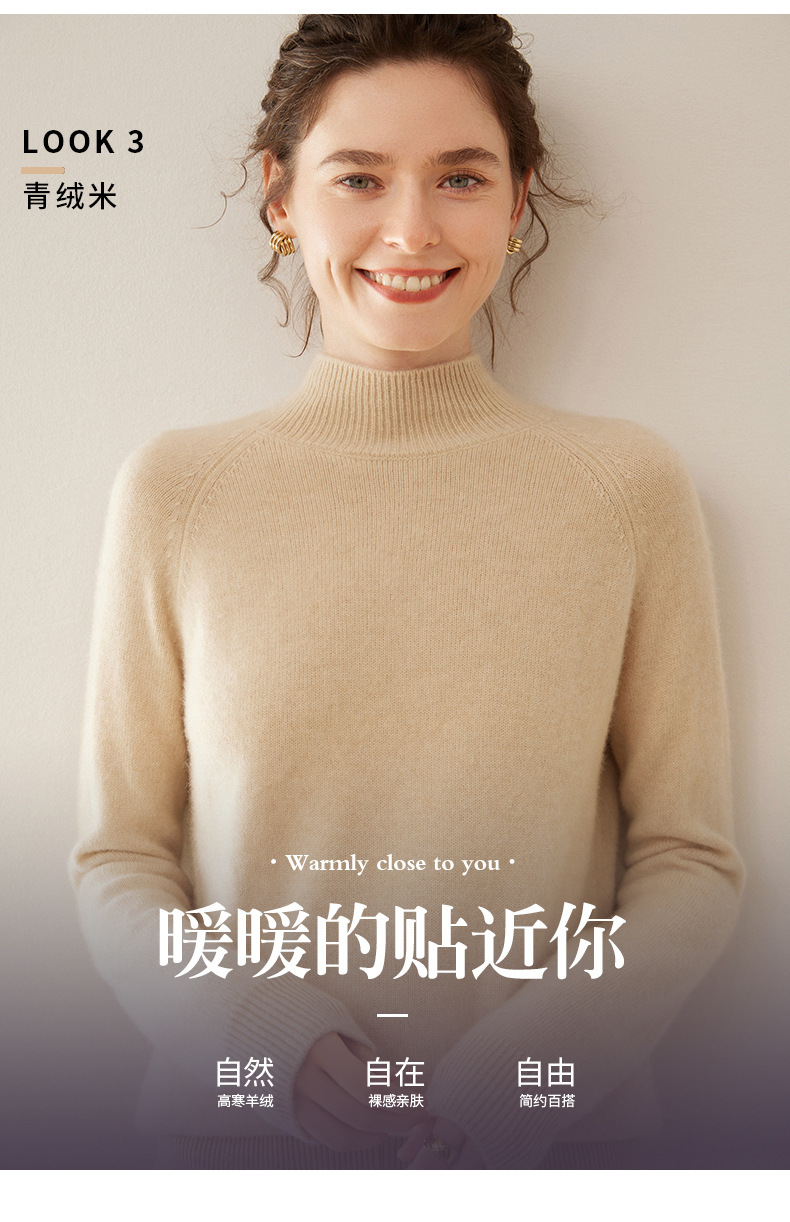2024 осень и зима новый женский полувысокий воротник кашемировый свитер сплошной цвет семь игл утолщенный плечо вязаный кашемировый нижний свитер