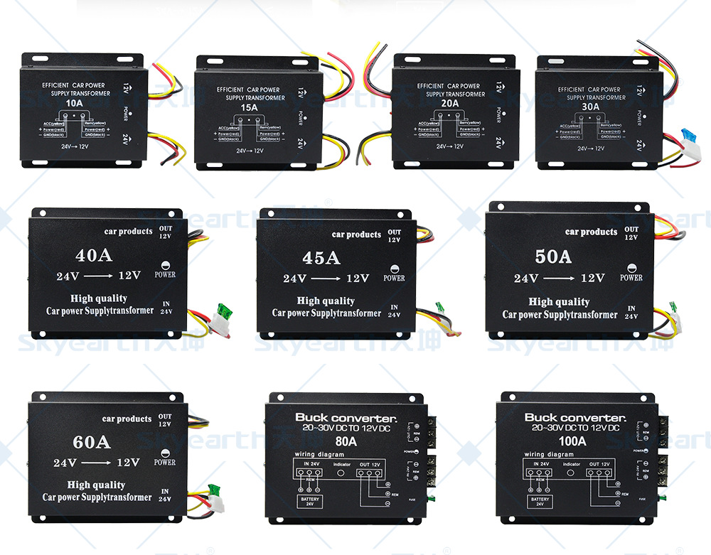 Автомобильный редуктор напряжения от 24 В до 12 В [10 А]; Автомобильный редуктор напряжения от 24 В до 12 В [15 А]; Автомобильный редуктор напряжения от 24 В до 12 В [20 А]; Автомобильный редуктор напряжения от 24 В до 12 В [30 А]; Автомобильный редуктор напряжения от 24 В до 12 В [двойной вентилятор 40 А]; Автомобильный редуктор напряжения от 24 В до 12 В [двойной вентилятор 45 А]; Автомобильный редуктор напряжения от 24 В до 12 В [двойной вентилятор 50 А]; Автомобильный редуктор напряжения от 24 В до 12 В [двойной вентилятор 60 А]; Автомобильный редуктор напряжения от 24 В до 12 В [двойной вентилятор 80 А]; Автомобильный редуктор напряжения от 24 В до 12 В [двойной вентилятор 100 А]