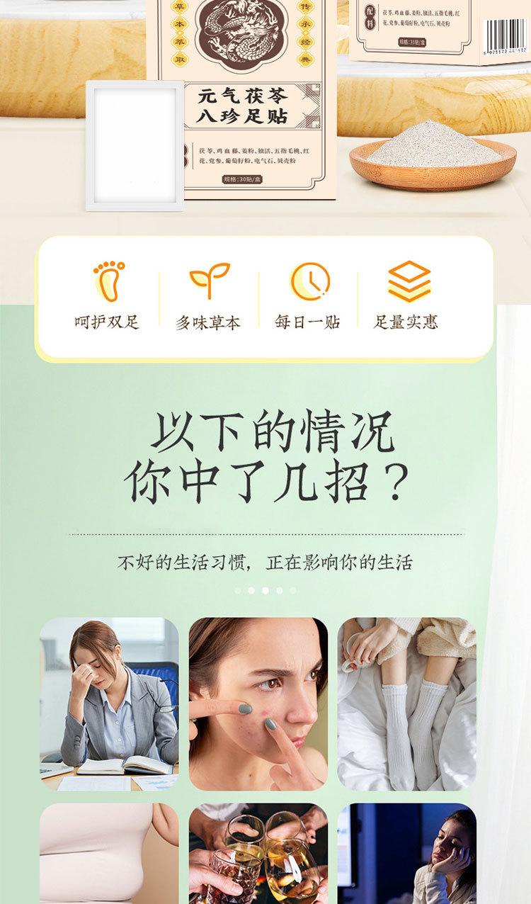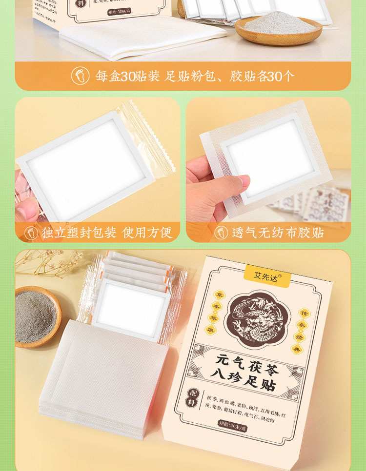 Yuanqi Poria Bazhen Пластырь для ног Old Beijing Пластырь для ног Травяной пластырь для ног Производитель источника Оптовая доставка