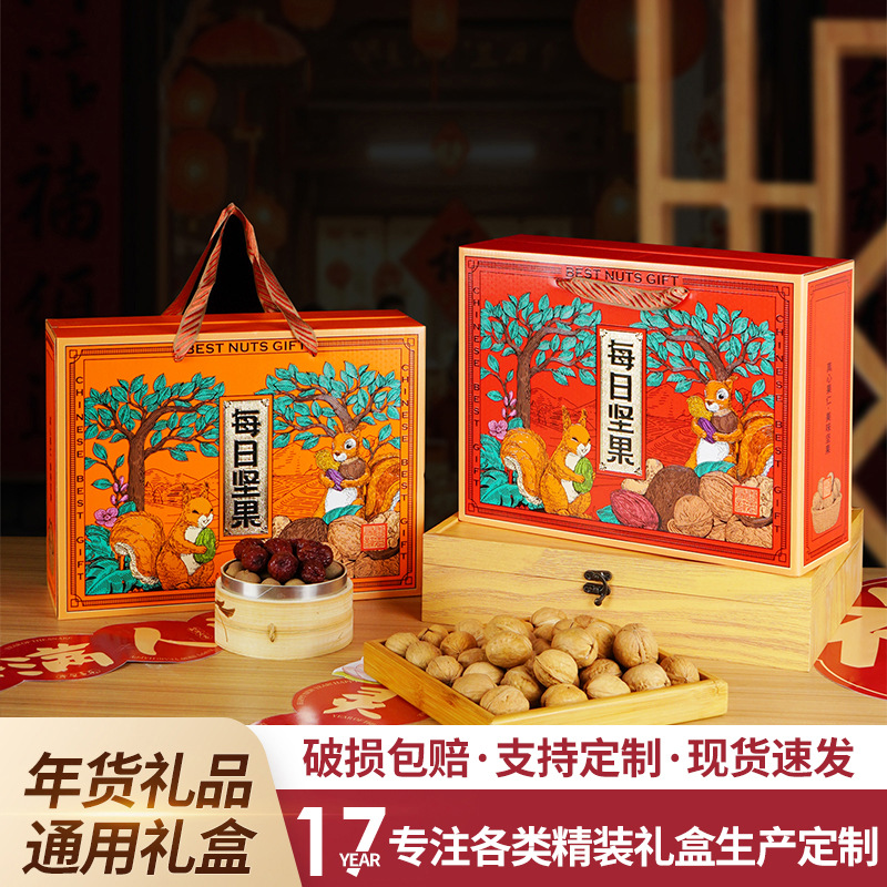 国潮开窗零食坚果春节礼品空盒子新年2026年货礼盒马年包装盒定做