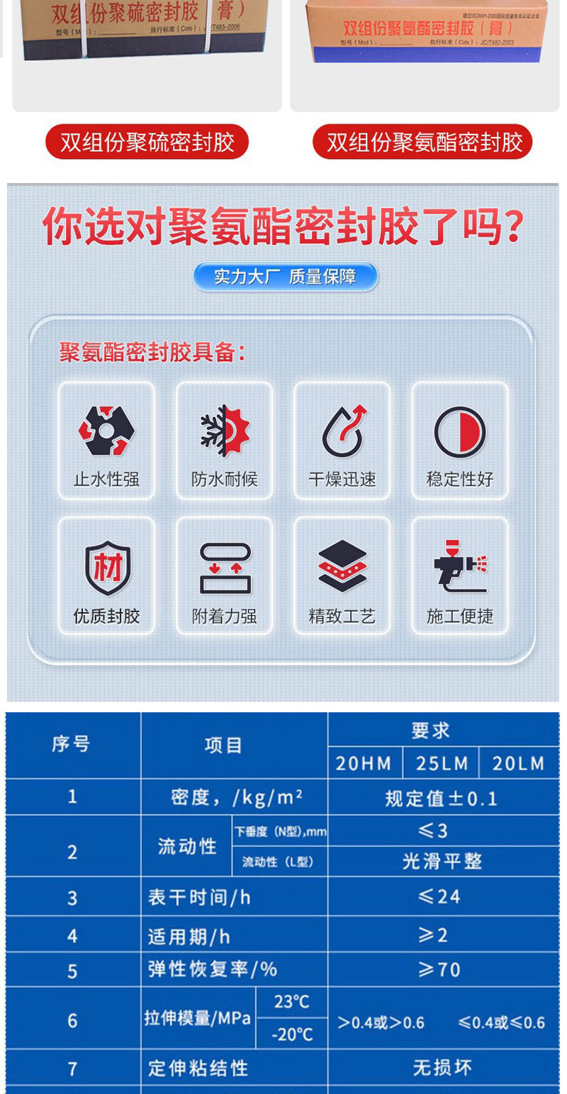 Двухкомпонентный полисульфидный герметик текучего типа для строительства водопропускных каналов, водонепроницаемый высокомодульный полиуретановый герметик для мостов