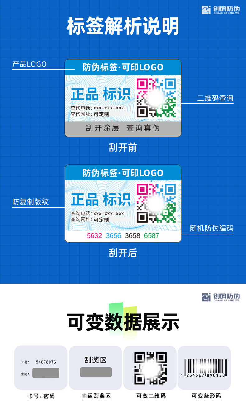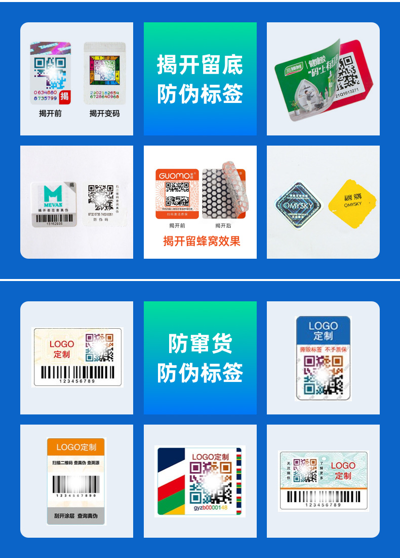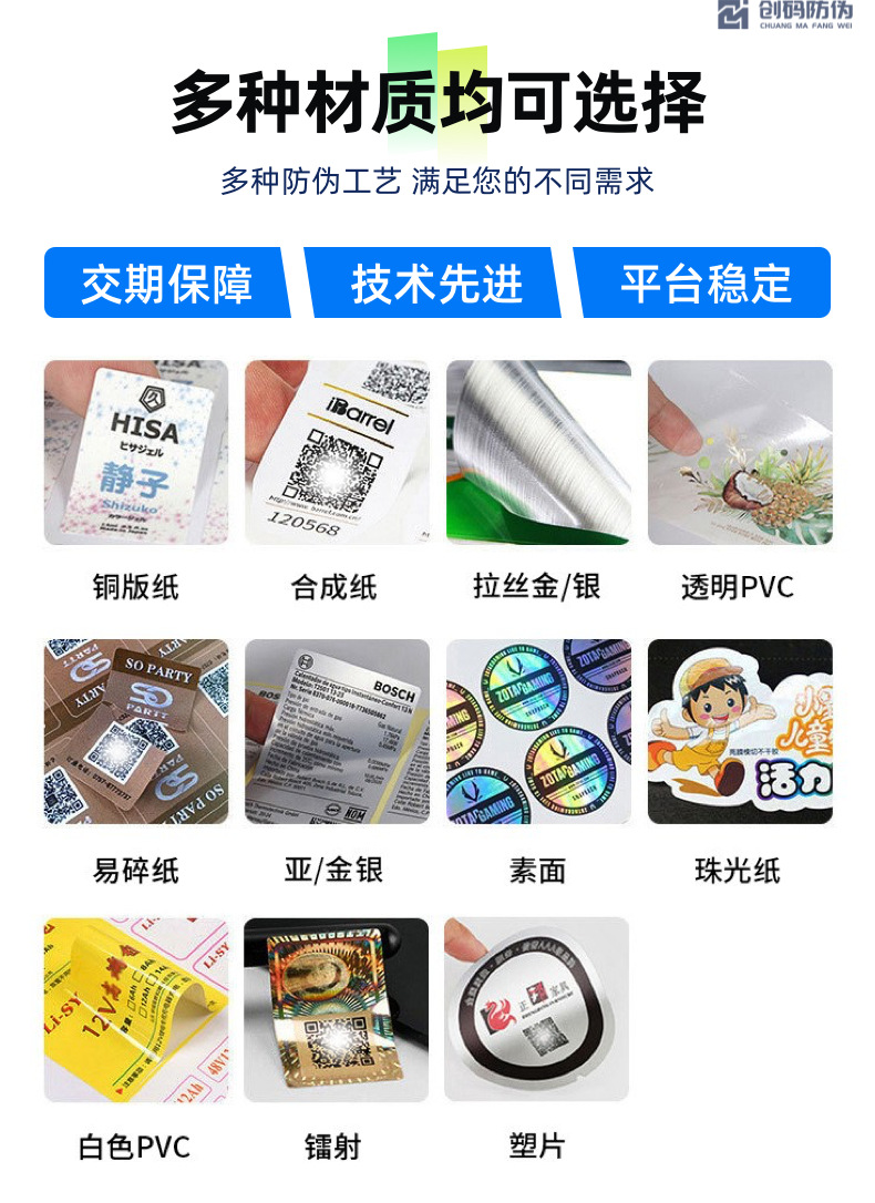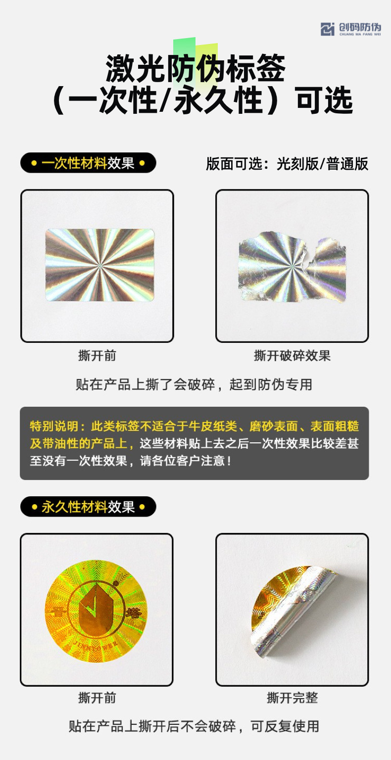 Лазерная этикетка против подделок Голографический лазерный код против подделок Лазерная хрупкая наклейка Лазерная этикетка с логотипом против подделок