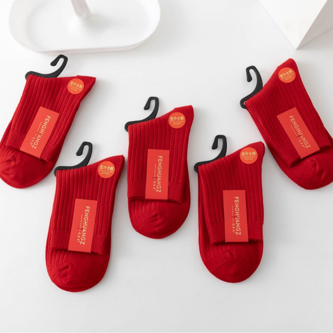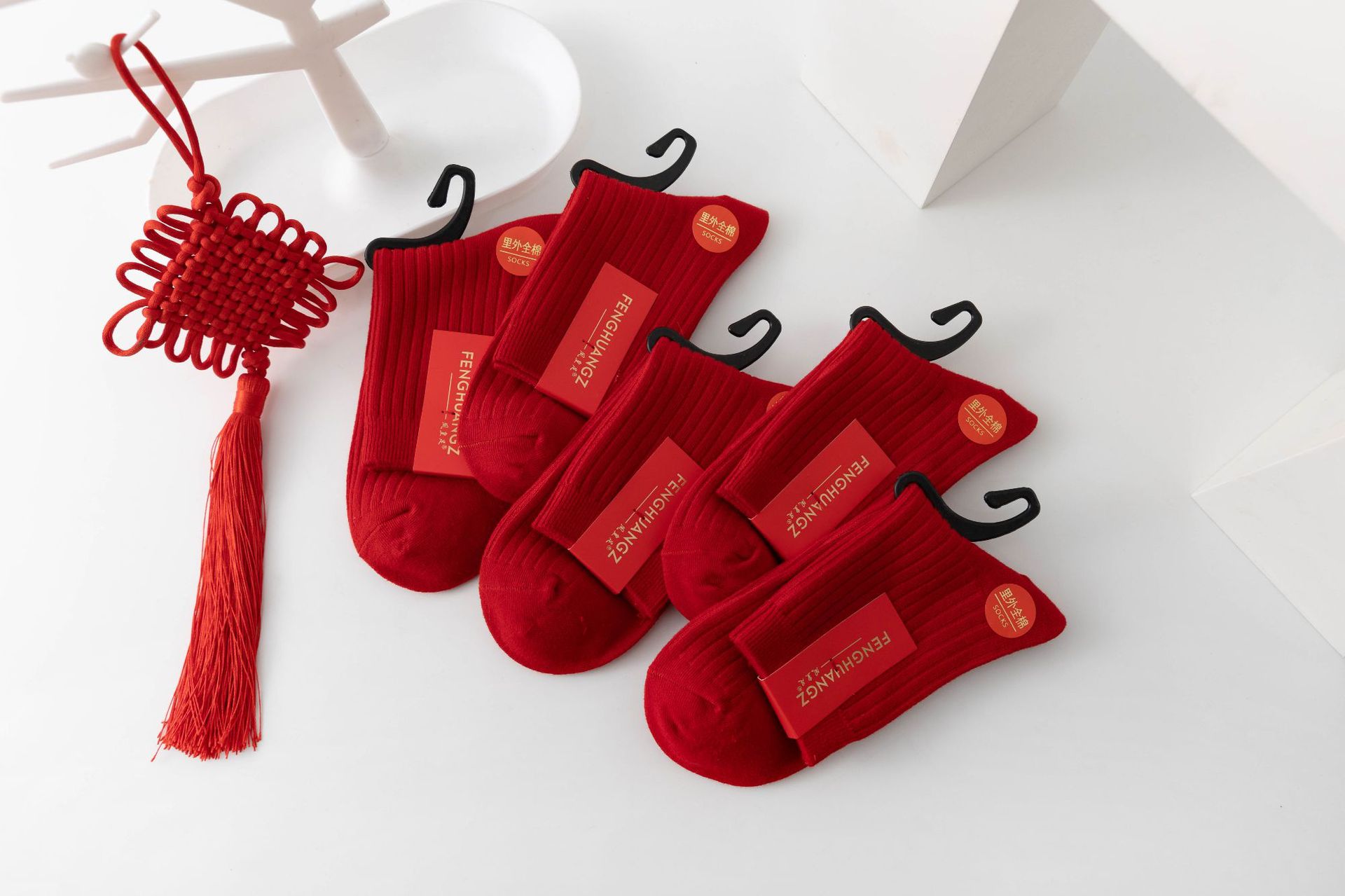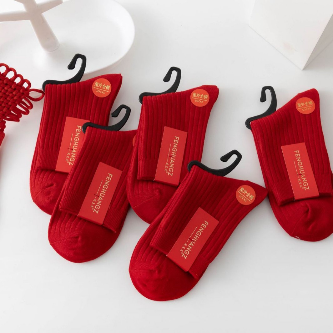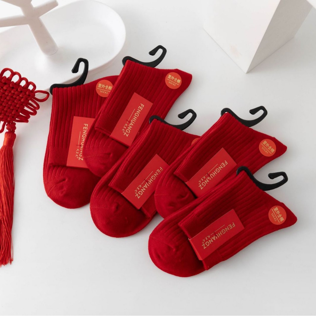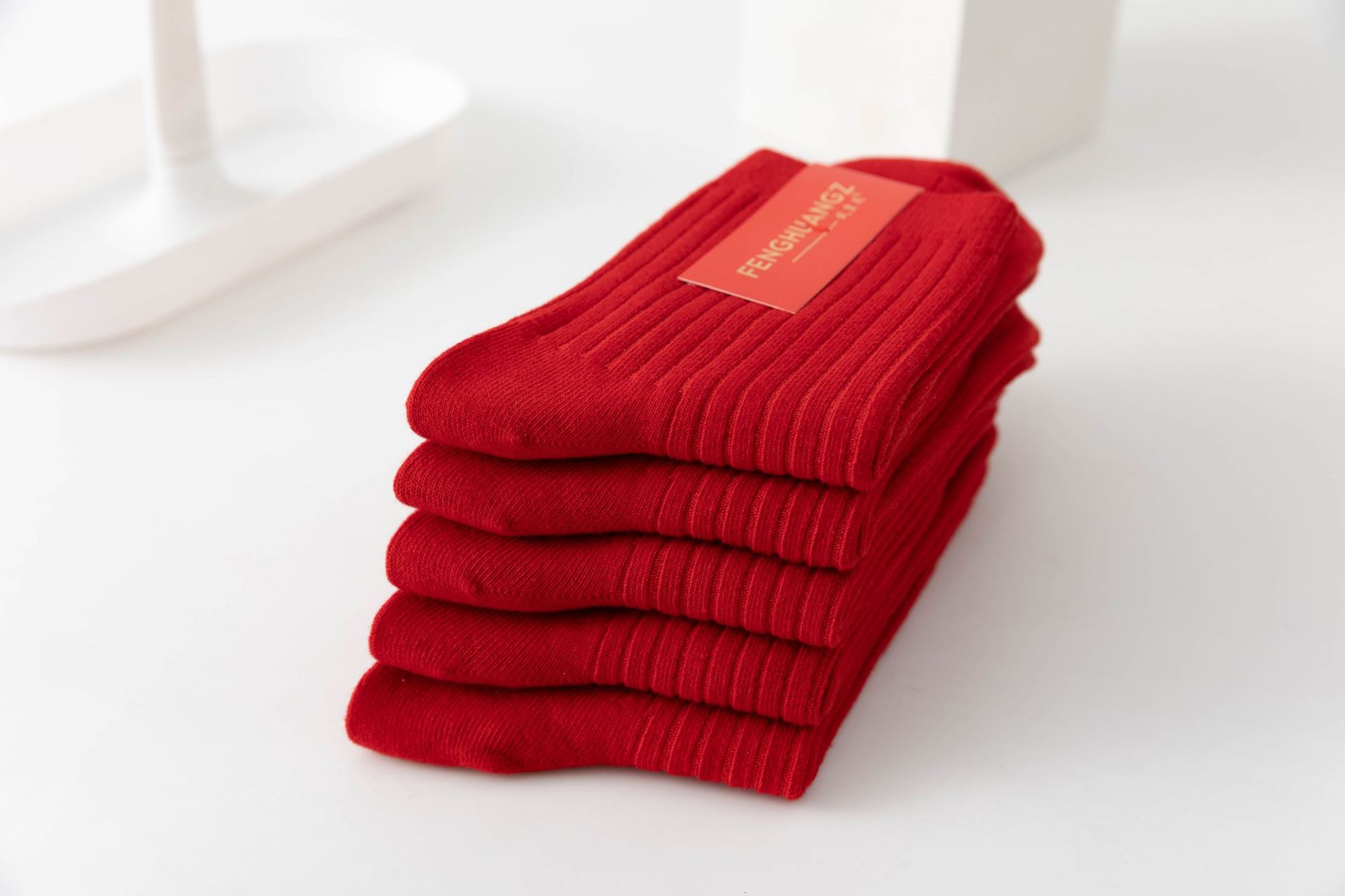 Красные носки натальные мужские и женские осенние и зимние новогодние большие красные носки