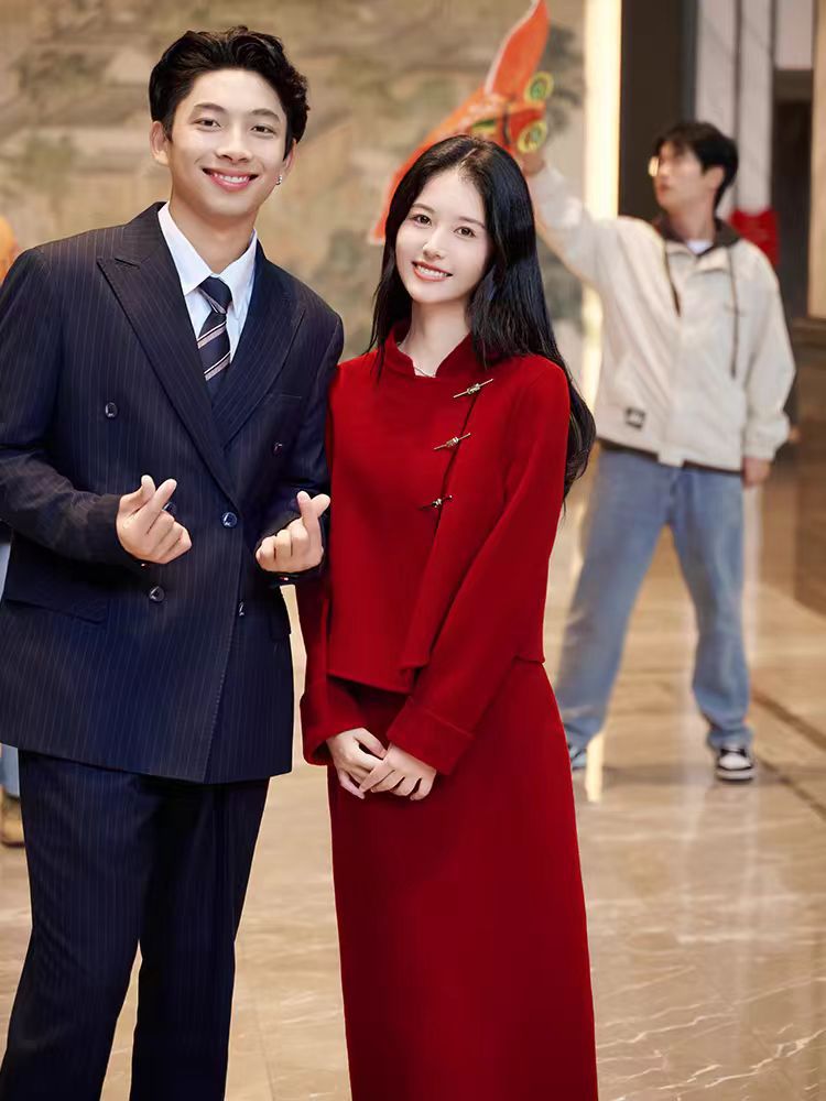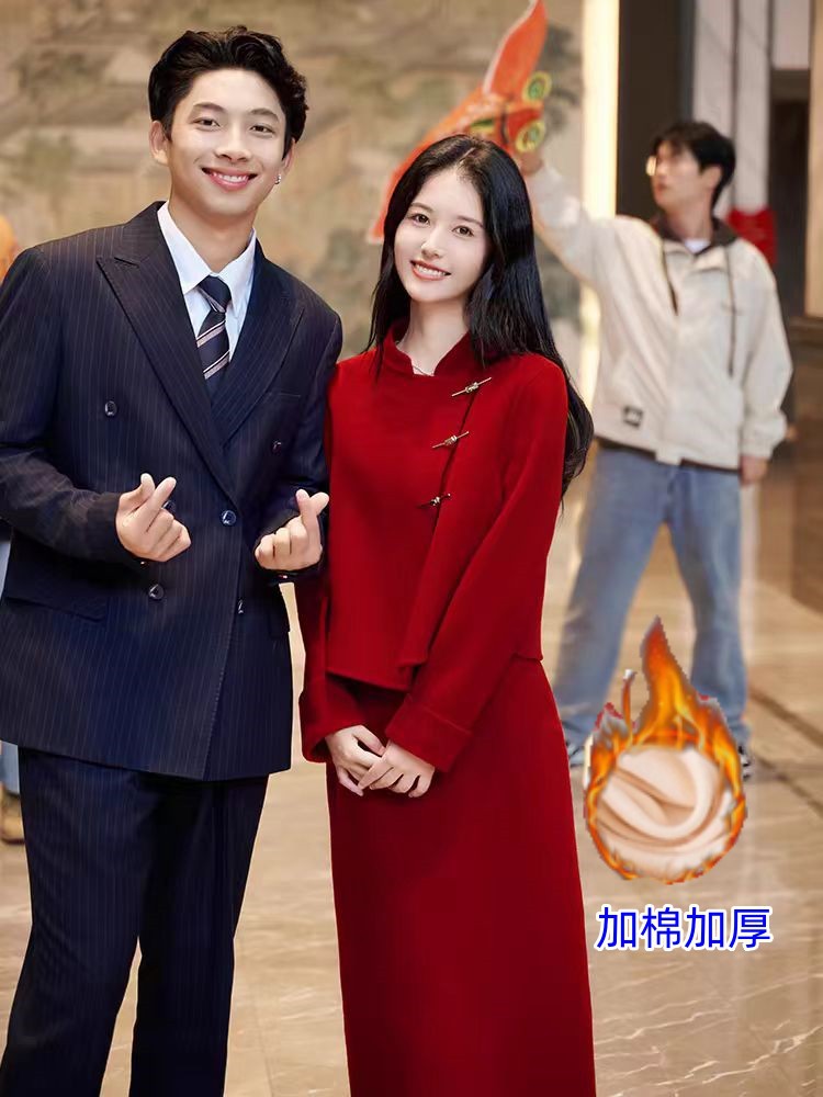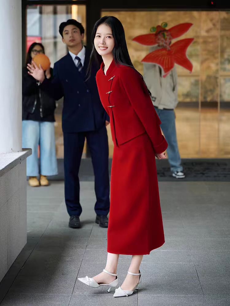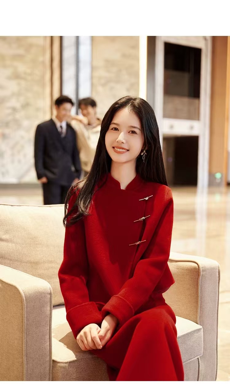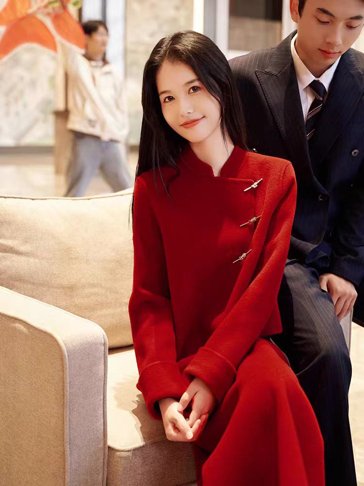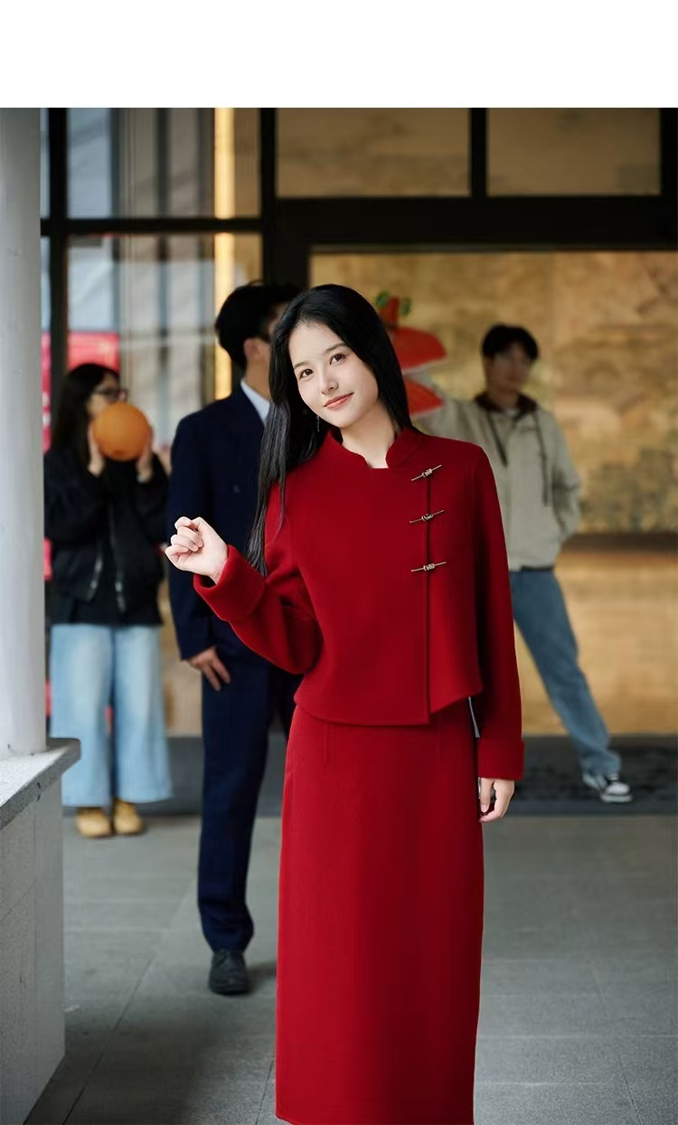 Обручальное платье шерстяная куртка национальный ветер осень-зима новый китайский красный топ два комплекта помолвка сертификат чонсам подарок юбка