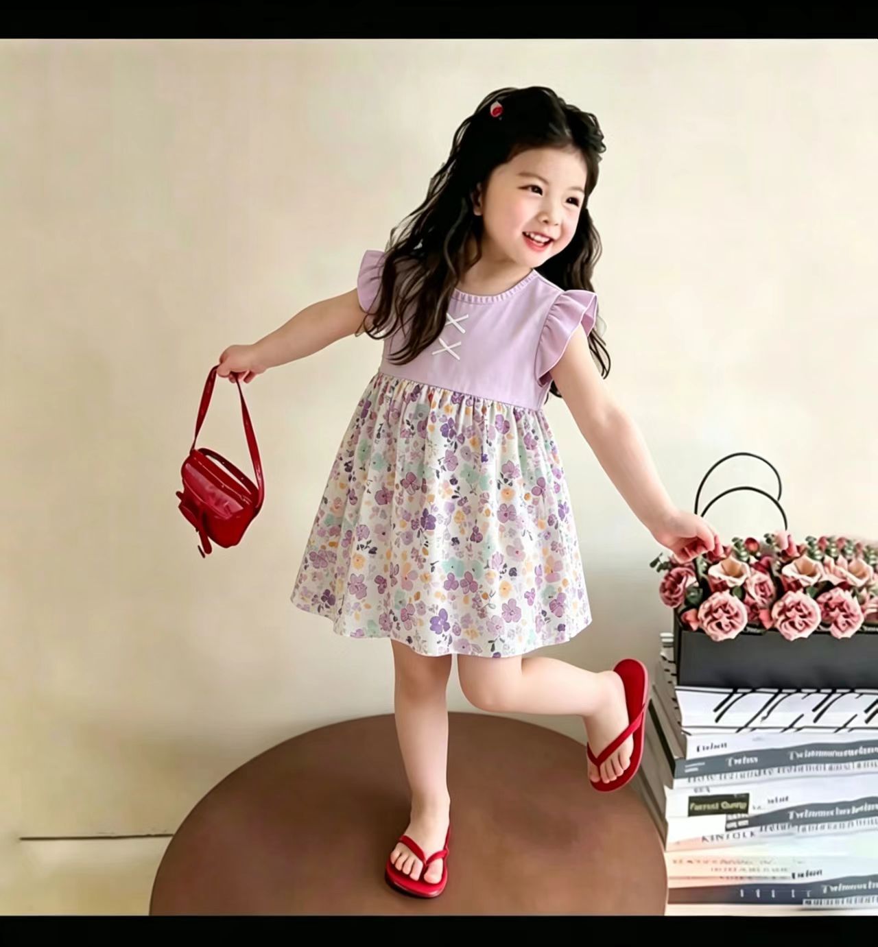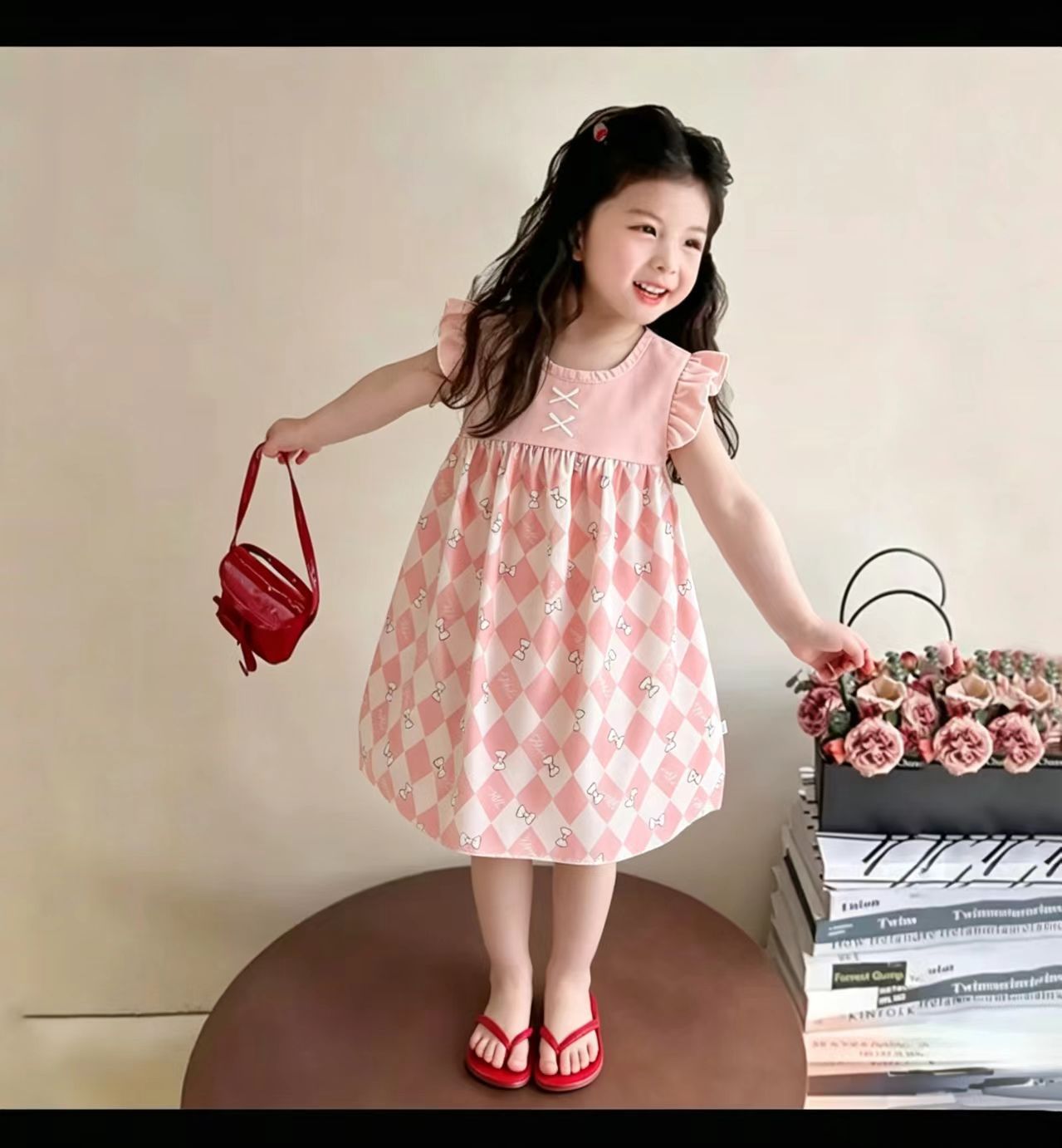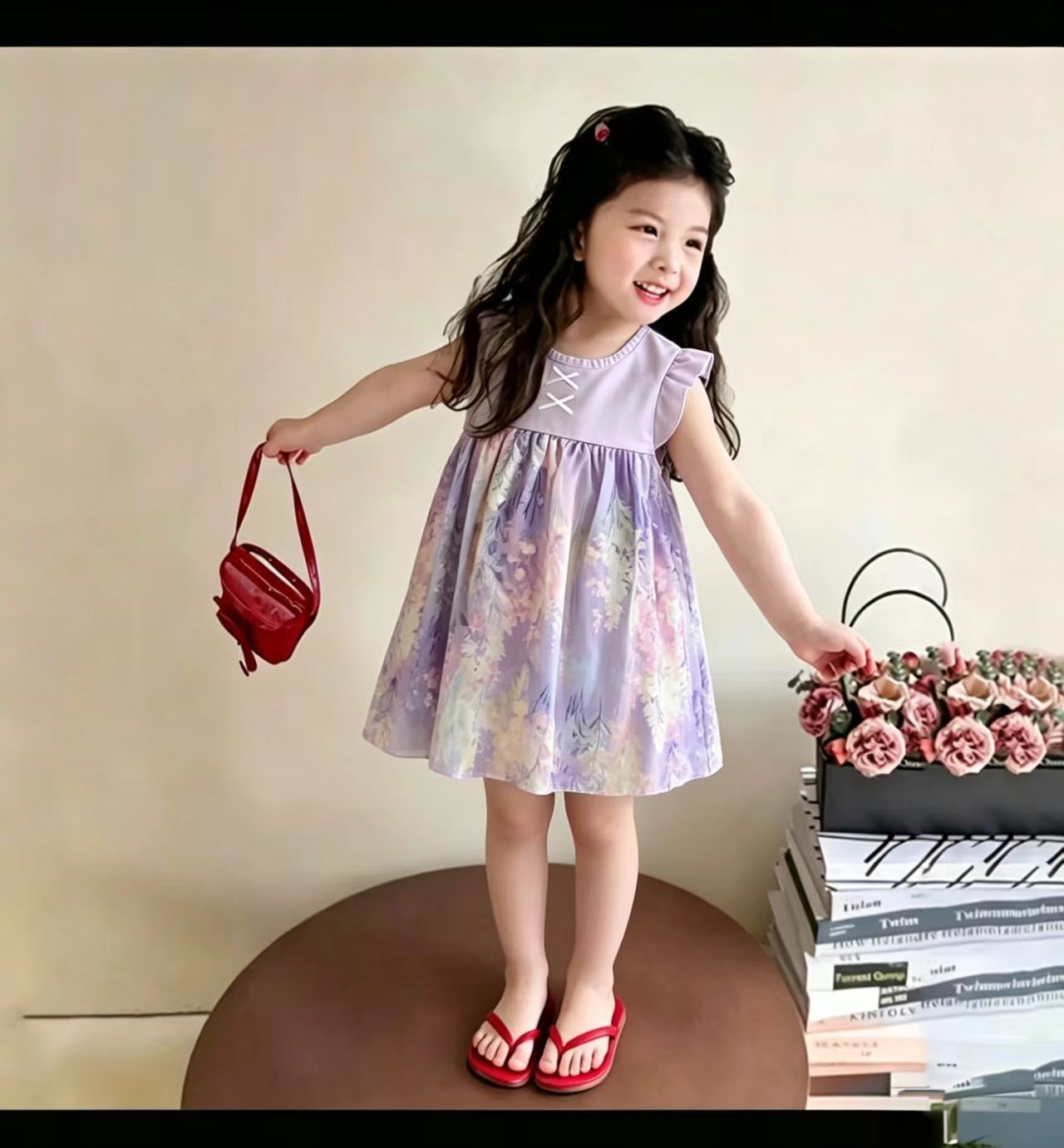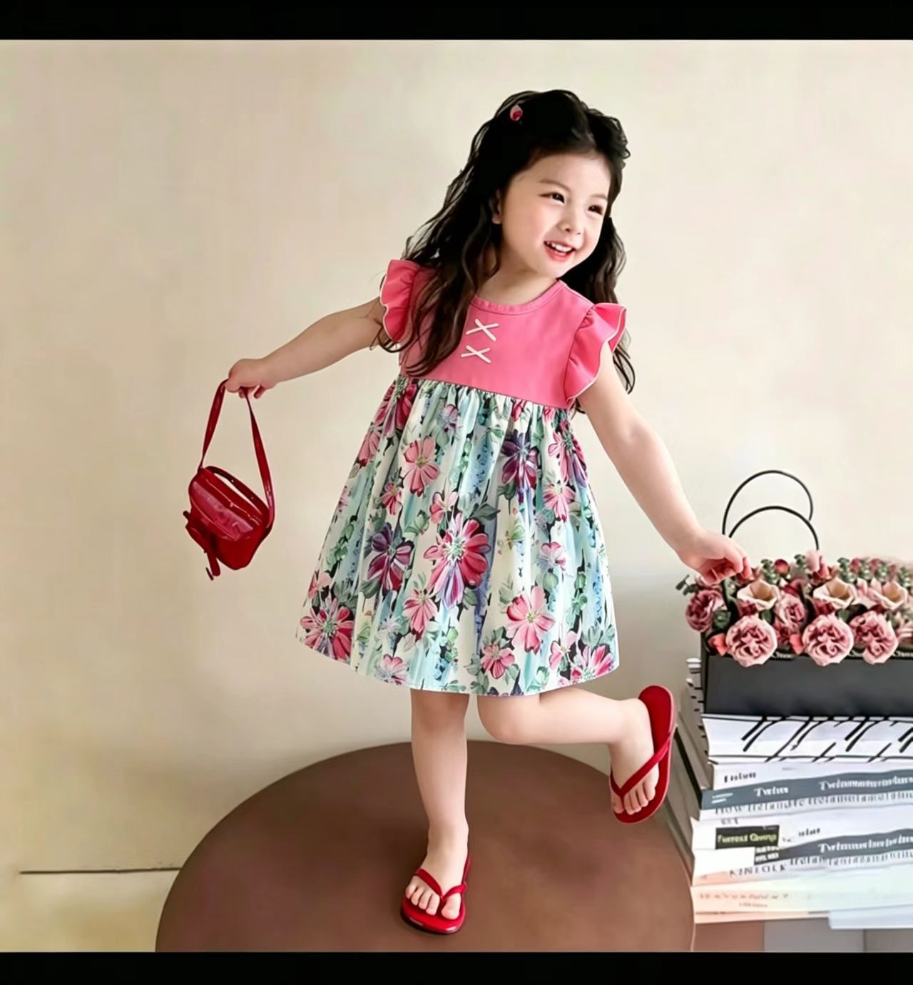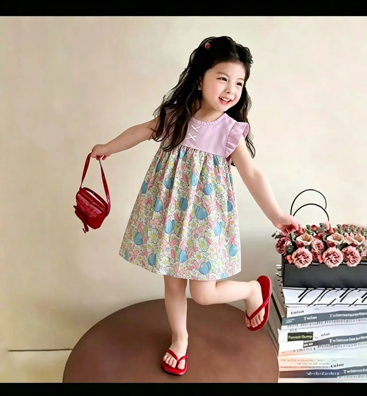 Летнее платье для девочек 2025 новый летающий рукав юбка детка шифон детская цветочная юбка