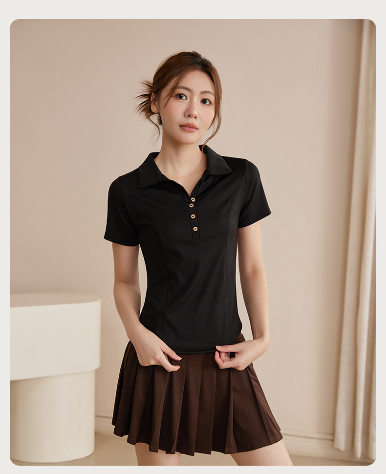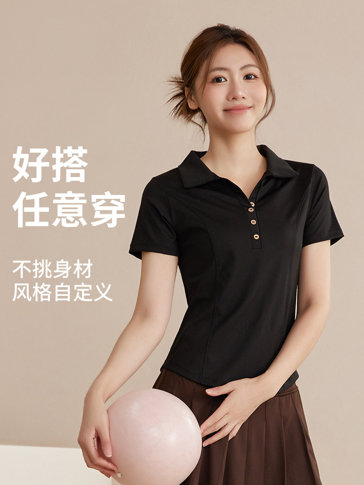 Новый большой размер женской йоги спортивный досуг лацканы дамы стройный сплошной цвет спортивный повседневный топ POLO рубашка оптом