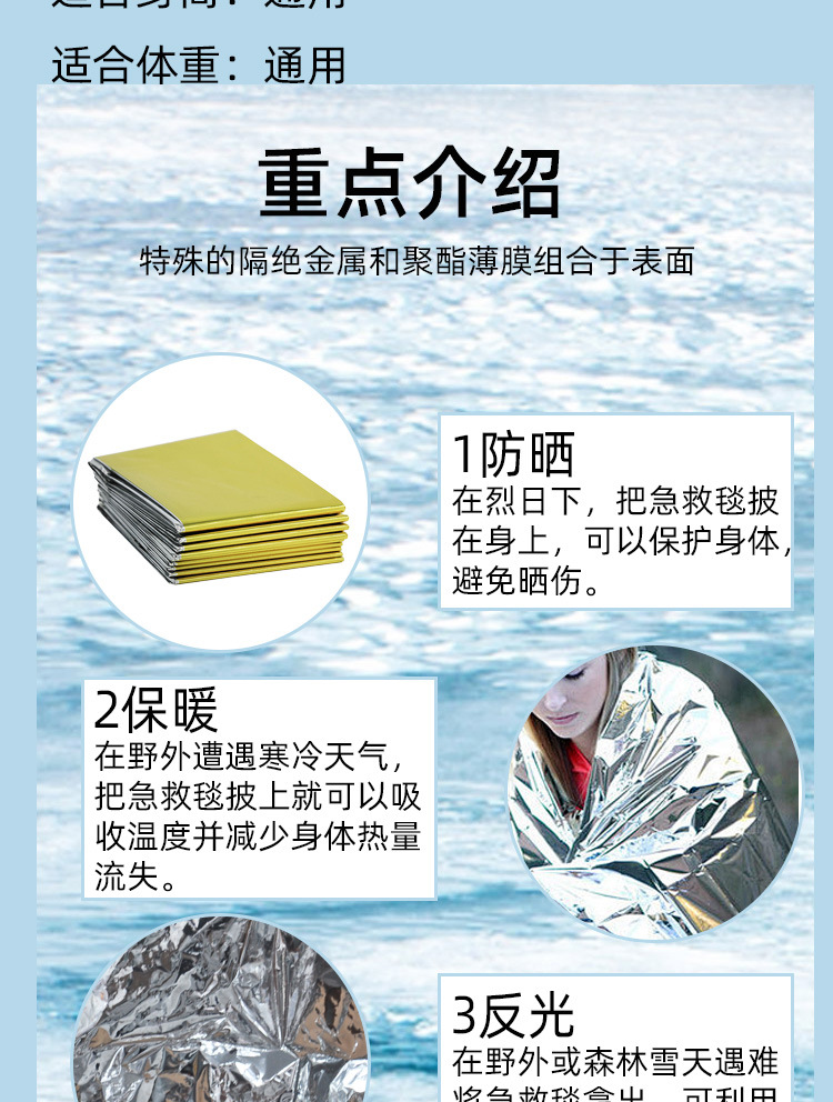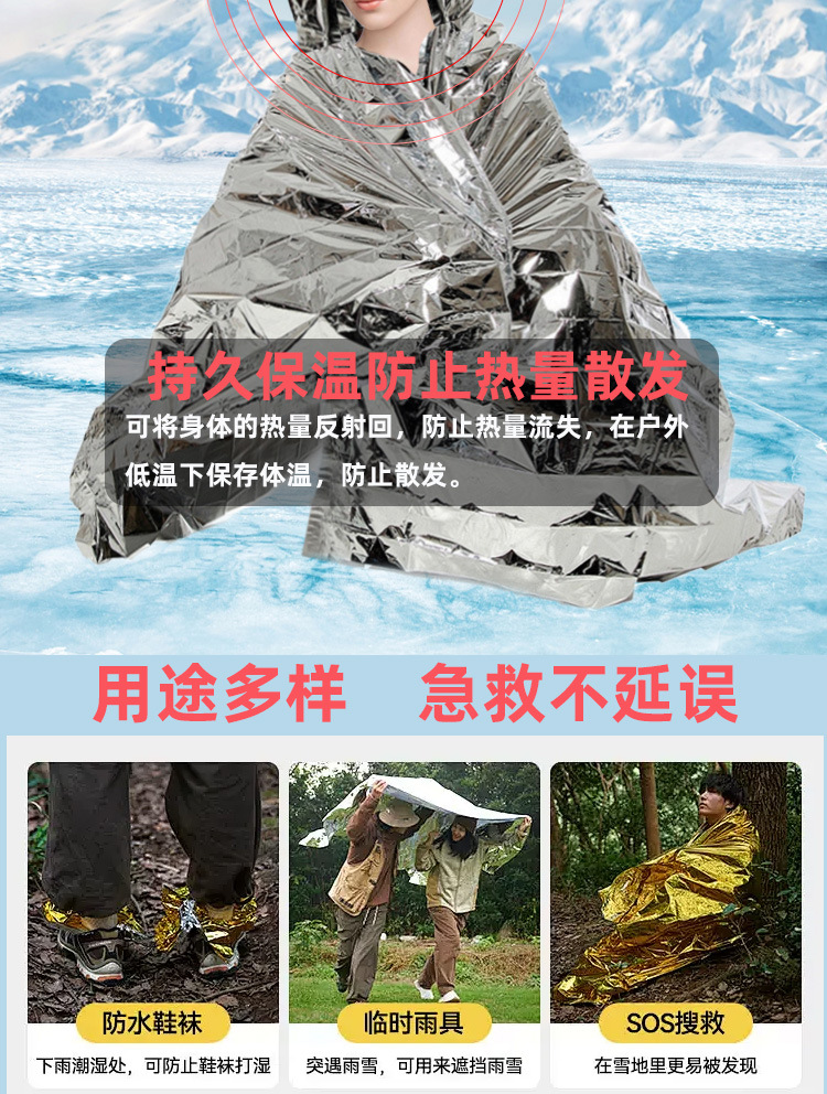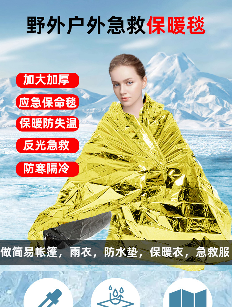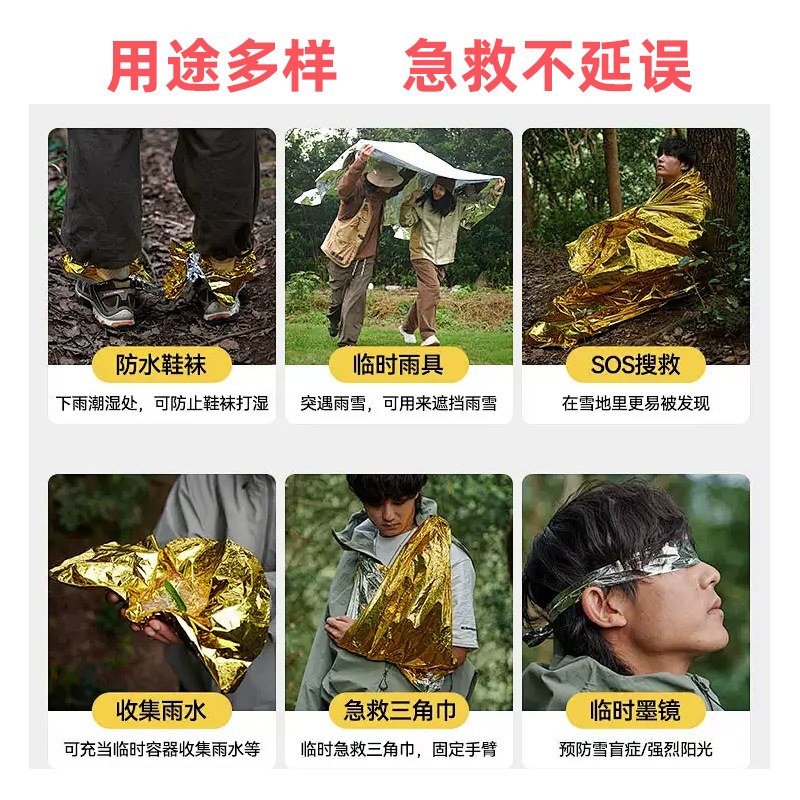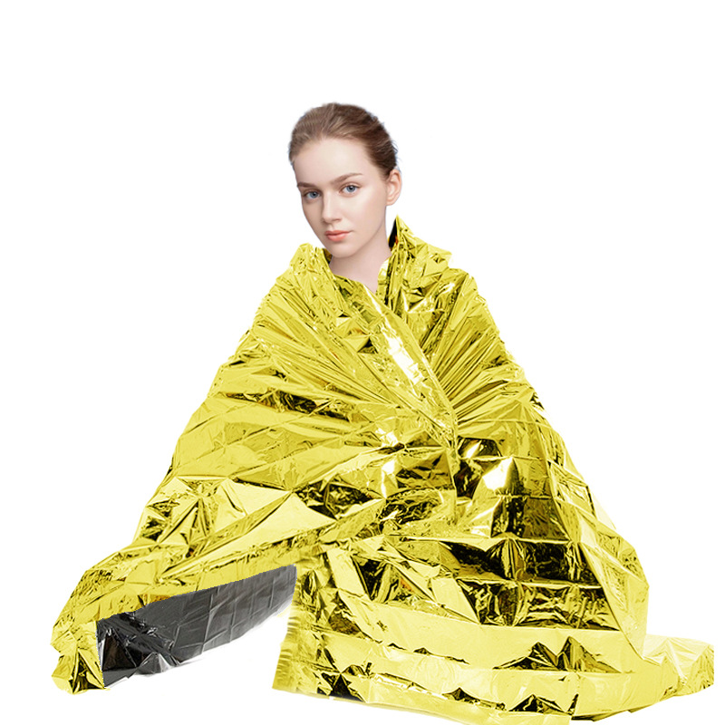 Двустороннее серебряное портативное одеяло для экстренных случаев, многофункциональное одеяло для оказания первой помощи, спасательное одеяло для выживания, одеяло для защиты от солнца, в наличии в золотом и серебряном цвете.