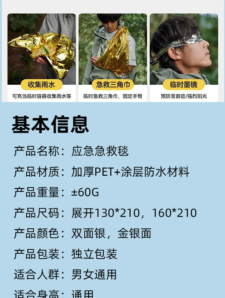 Одеяло первой помощи золотого и серебряного двухцветного [130*2 DIE; Одеяло первой помощи двустороннее серебро [130*2 hariin; Одеяло первой помощи золотого и серебряного двухцветного [160*2ég; Одеяло первой помощи двустороннее серебро [160*2 hariin