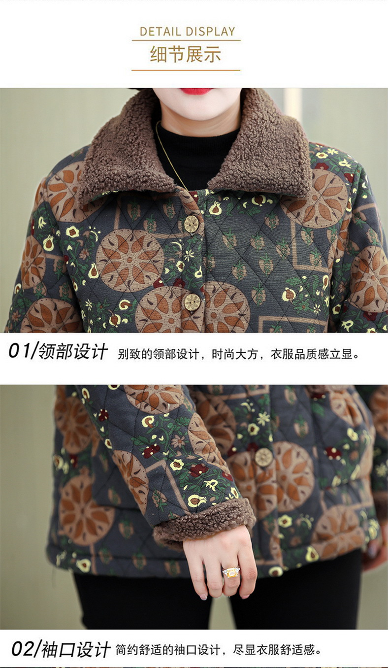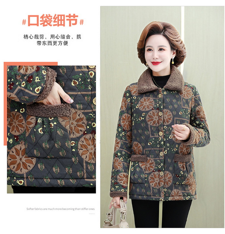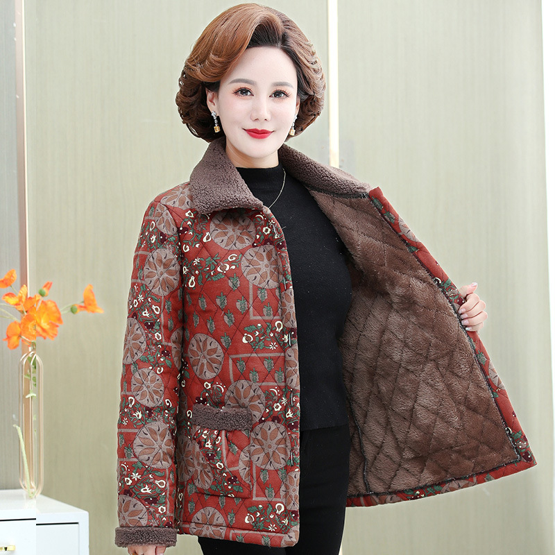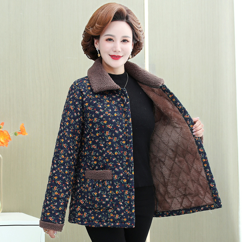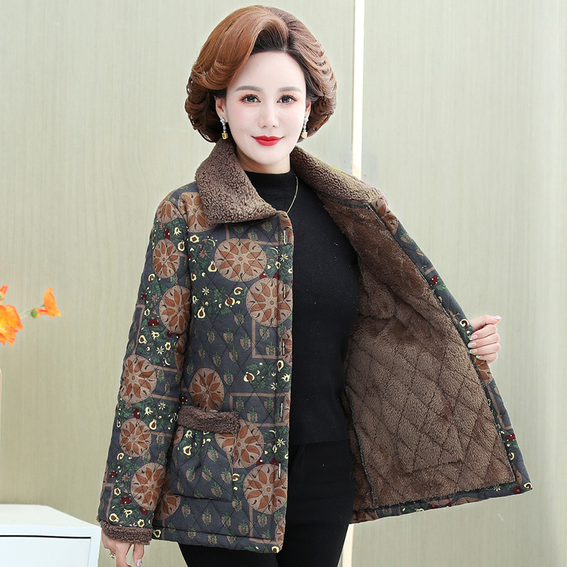 Среднее и старое женское зимнее хлопчатобумажное пальто плюс бархат утолщение 50 мама зимняя хлопчатобумажная одежда теплая короткая хлопчатобумажная куртка