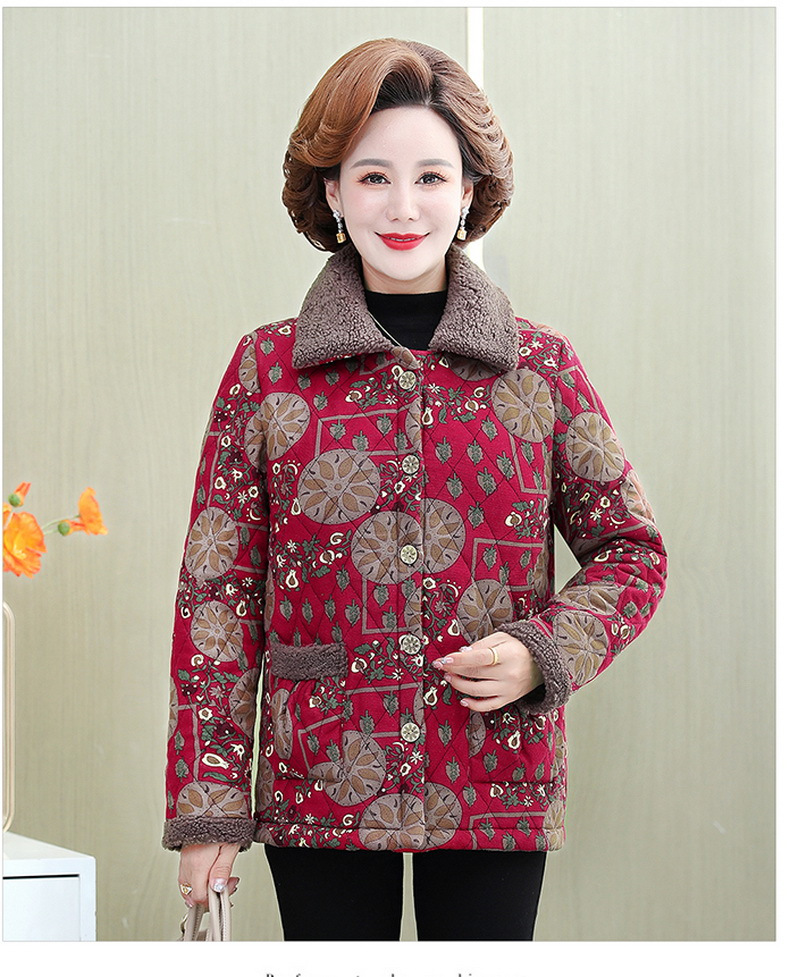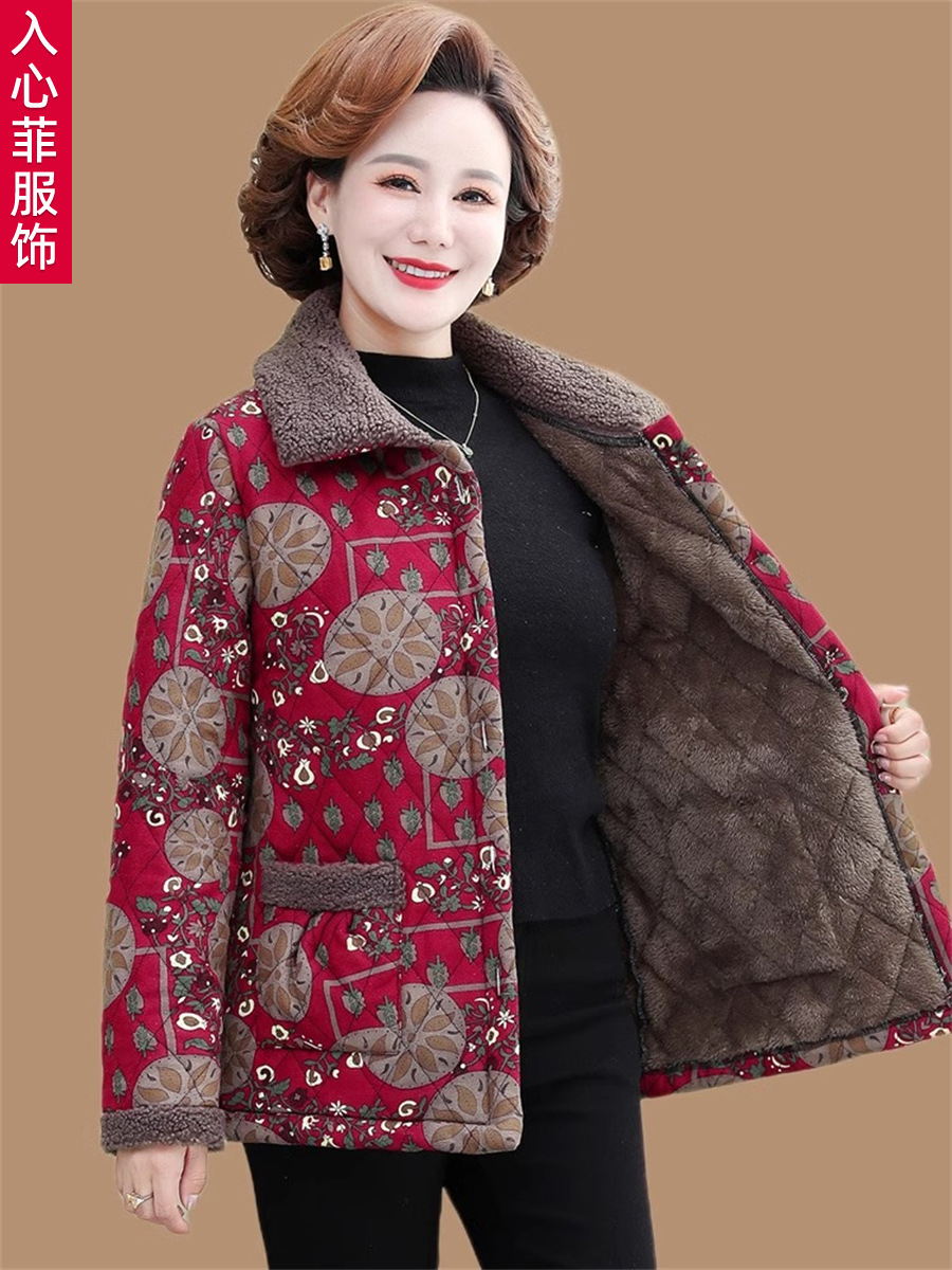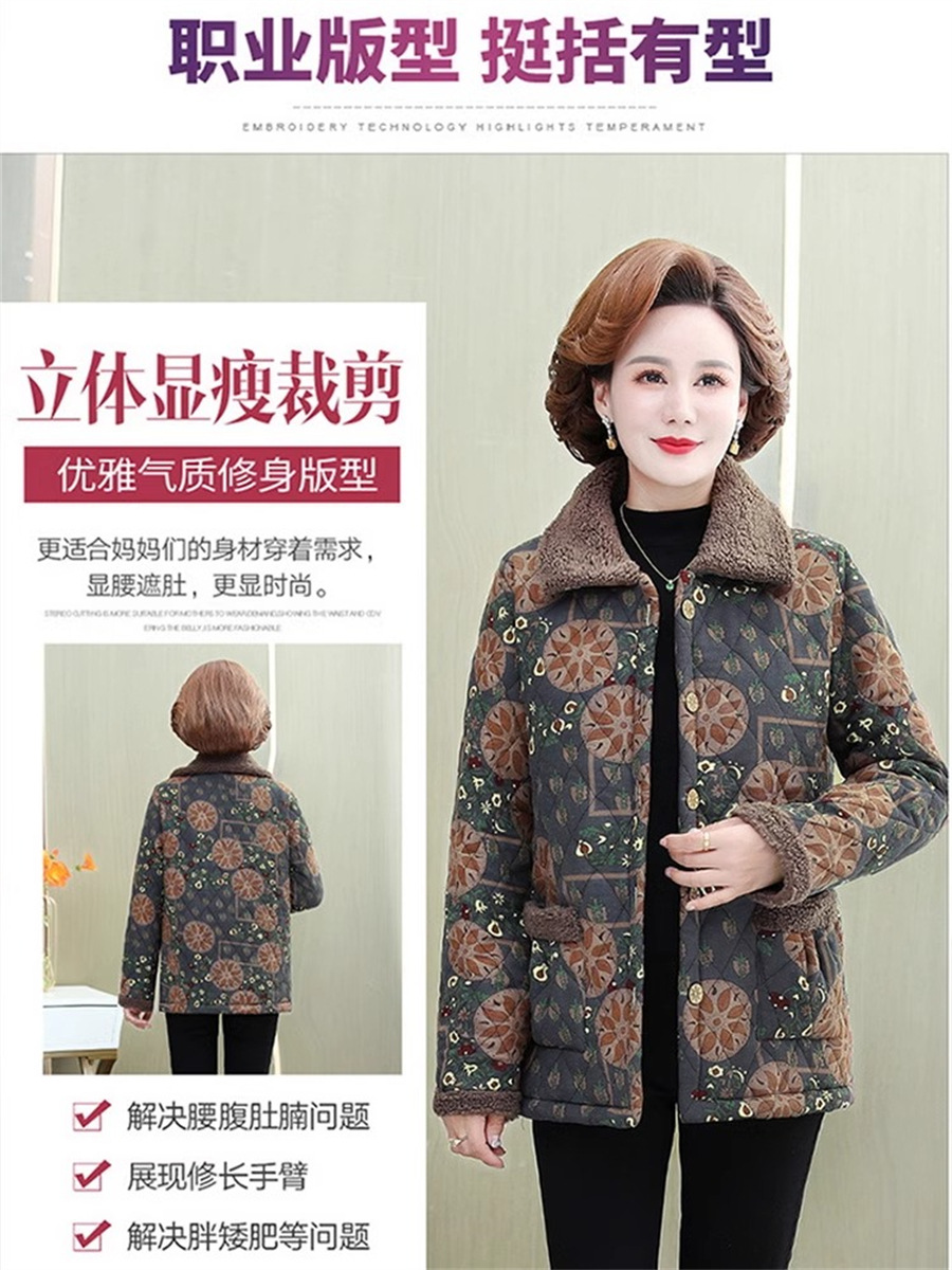 Среднее и старое женское зимнее хлопчатобумажное пальто плюс бархат утолщение 50 мама зимняя хлопчатобумажная одежда теплая короткая хлопчатобумажная куртка