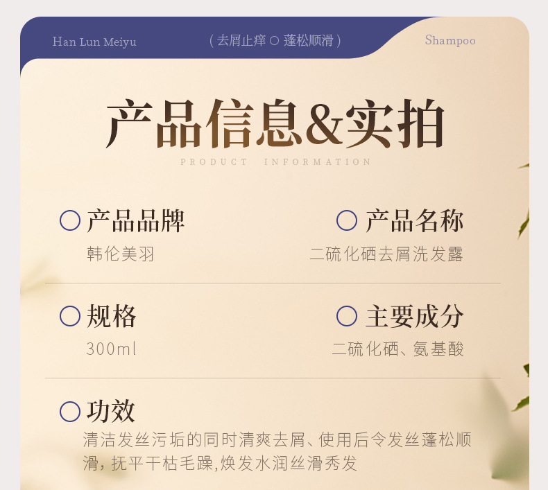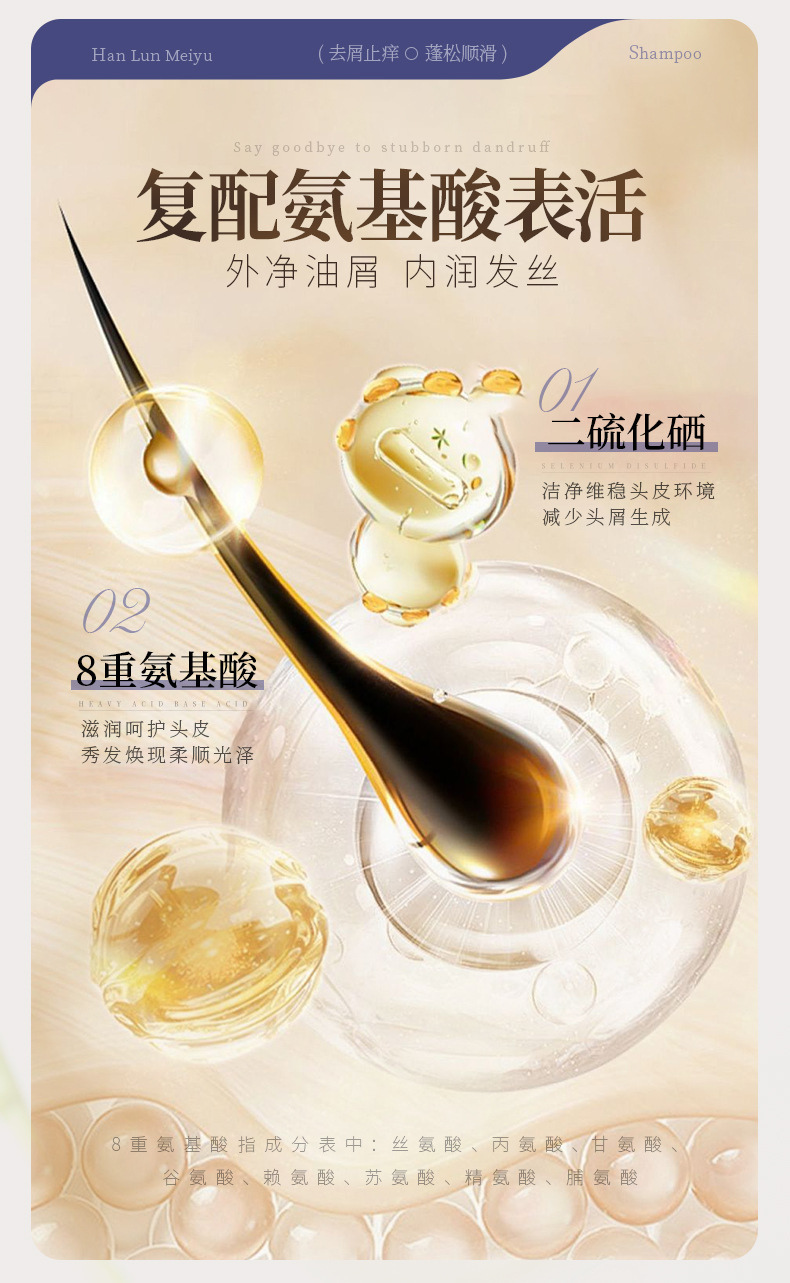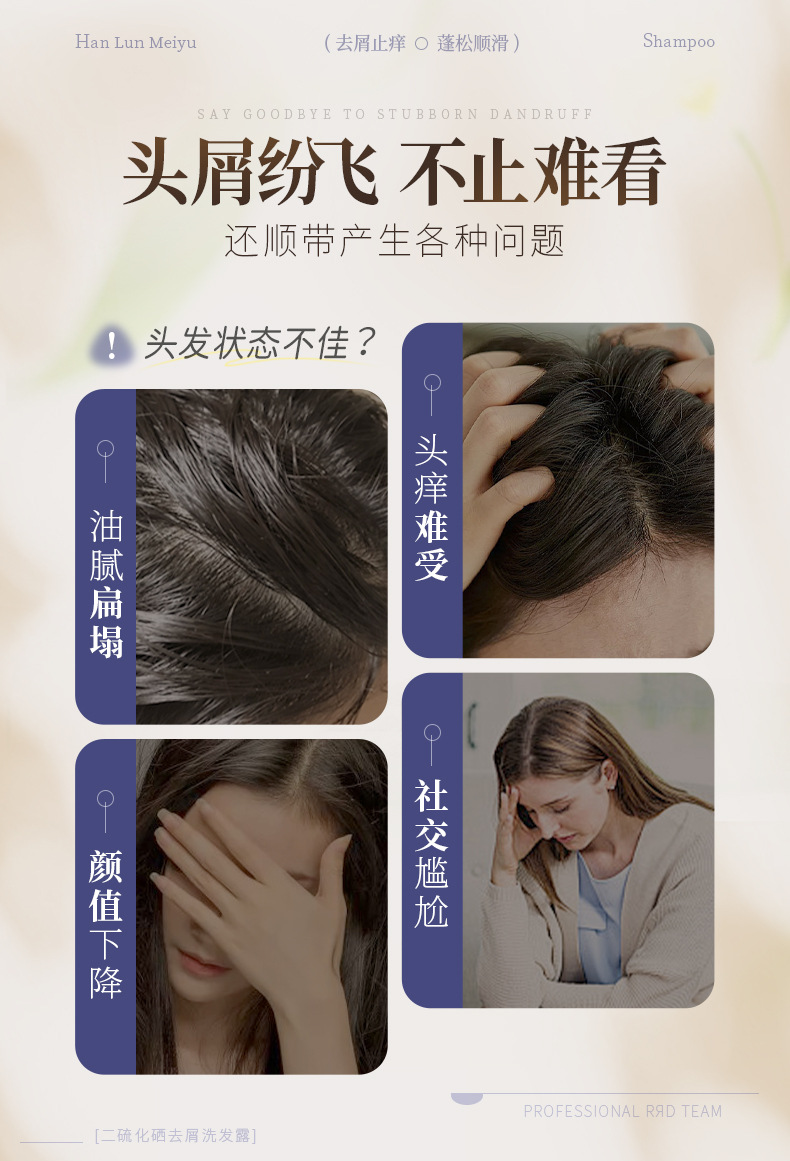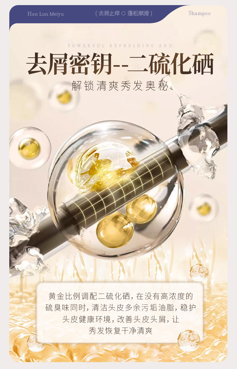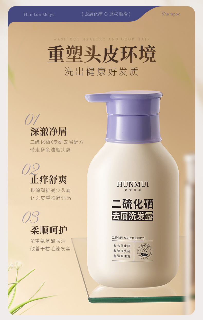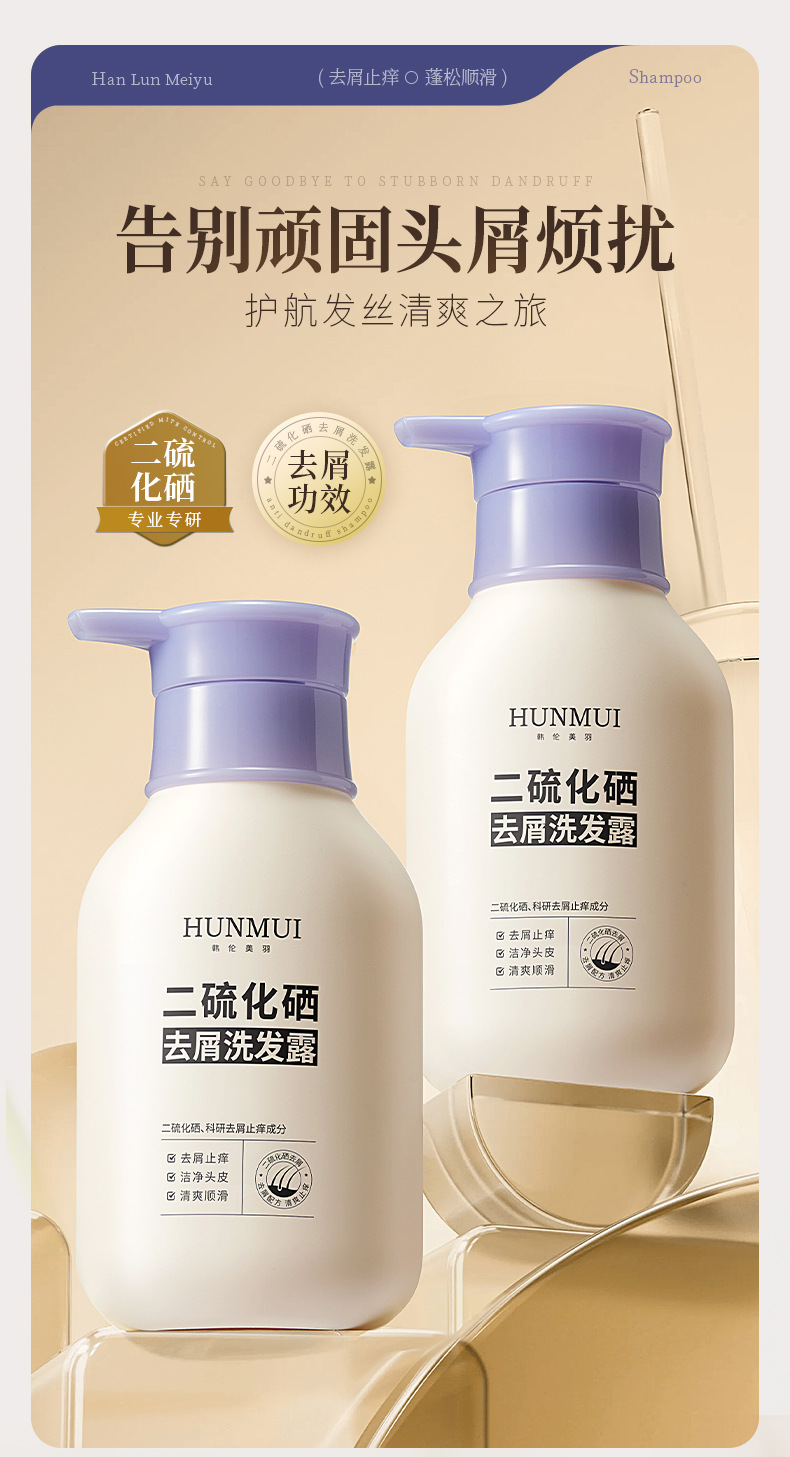 Han Lun Meiyu дисульфид селен против перхоти шампунь освежающий противозудный, пушистый корень волос, гладкий уход за волосами, очищающий шампунь