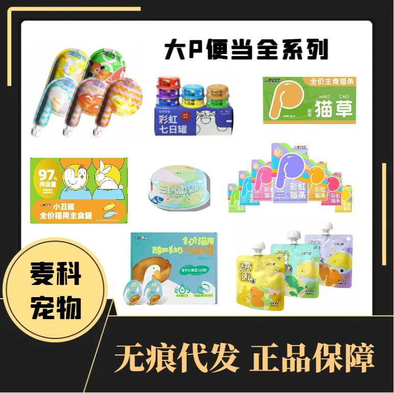 Big P Bento Staple Food Meal Pack Нежный вкус говядины 60 г; Big P Bento Staple Food Meal Pack со вкусом фуа-гра, 60 г; Big P Bento Staple Food Meal Pack со вкусом рыбьего жира, 60 г; Big P Bento Staple Food Meal Pack со вкусом рыбных икр 60 г; Big P Bento Staple Food Meal Pack со вкусом устриц 60 г; Бенто Big P с основными пищевыми полосками для кошек и вкусом устриц; Бенто Big P с основными пищевыми полосками для кошек и вкусом кошачьей травы; Бенто Big P с основными продуктами в виде полосок для кошек и вкусом рыбьего жира; Большой ланч-бокс Big P с клоуном, банка с курицей и кроликом, двойная и одинарная банка (встроенные банки на 6 порций); Большой ланч-бокс Big P с клоуном, банка для говядины и баранины, двойная и одинарная банка (интегрированная порция из 6 банок); Big P Bento Goose Milk Cat Can (12 банок в комплекте); Big P Bento Rainbow Cat Strips Курица и лосось; Big P Bento Rainbow Cat Strips Курица и тунец; Big P Bento Rainbow Cat Strips Куриное мясо краба; Big P Bento Rainbow Cat Strips Куриный белый наживка; Big P Bento Rainbow Cat Strips Куриное козье молоко; Big P Bento Rainbow Cat Strips Курица и треска; Big P Bento Rainbow Cat Strips Курица и креветки; Big P Bento Rainbow Seven-Day Can (7 банок в комплекте); Big P Bento Sanzhen Milkshake Jar 85 г (комплект из 24 баночек); Булочки с супом из мяса утки и рыбы Big P Bento 100 г; Булочки с куриной и сичуаньским перцем Big P Bento, 100 г; Булочки с супом из трески и перца Big P Bento 100 г; Печенье для кошек Big P lunch 100г